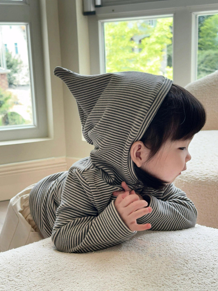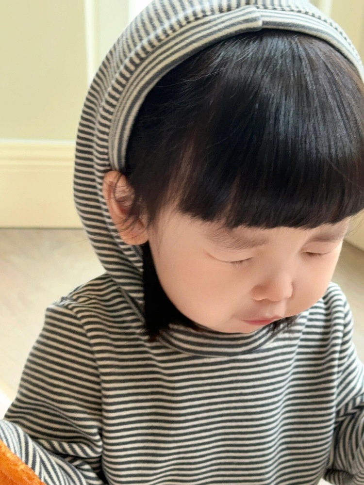 한국 아동복 어린이의 두꺼운 가을과 겨울베이스 셔츠 트렌디 클래식 스트라이프 후드 긴팔 탑