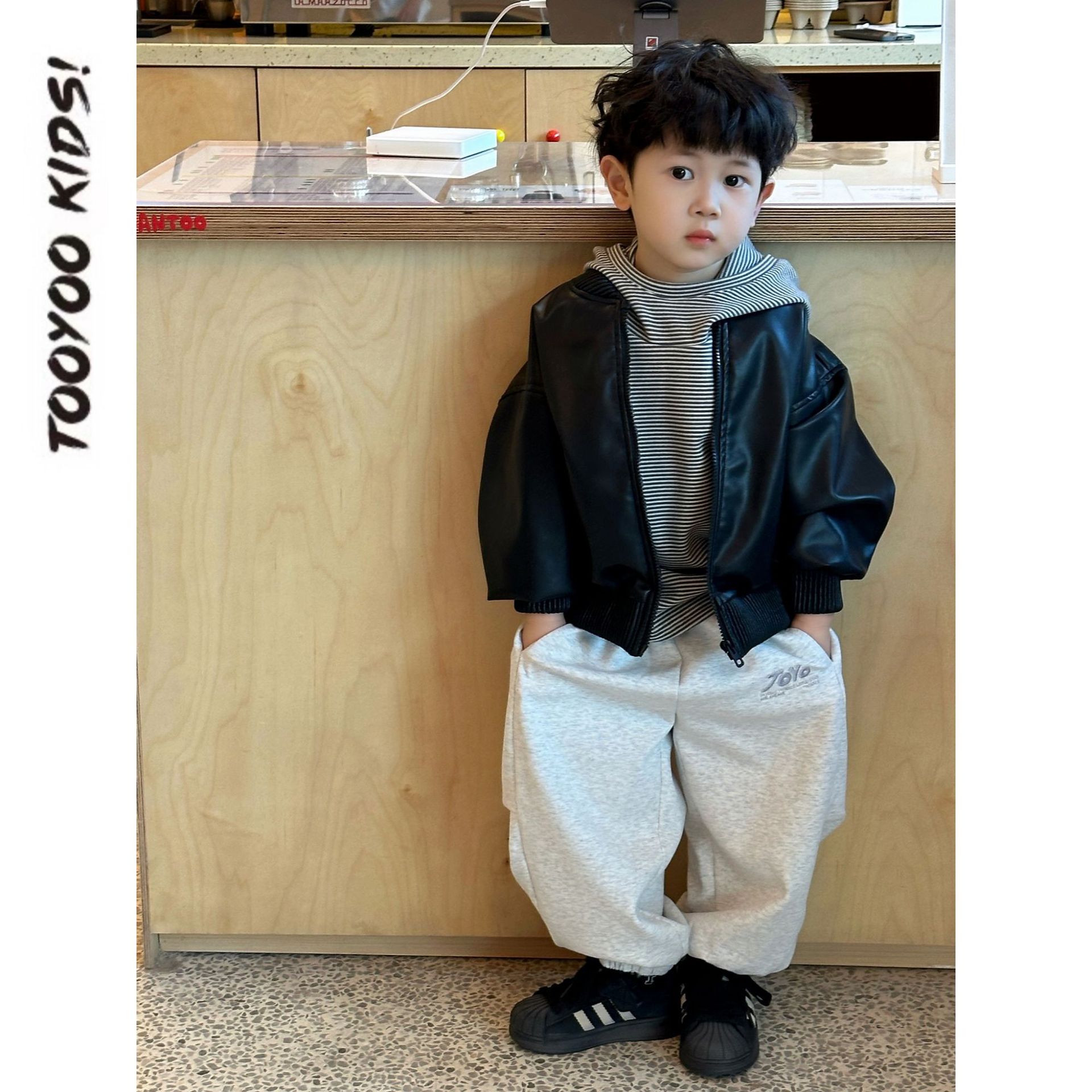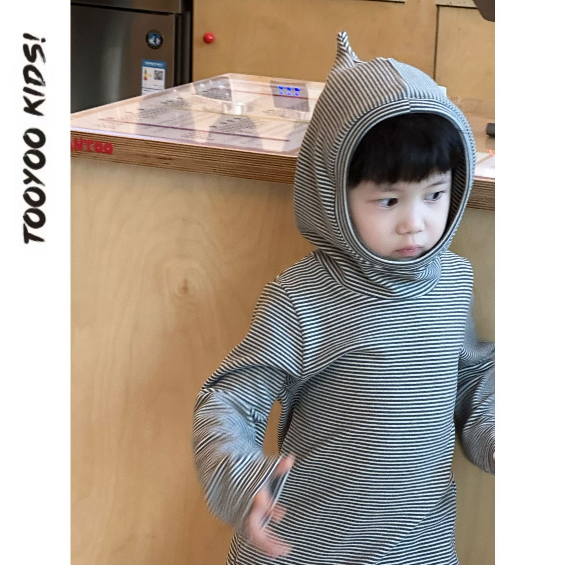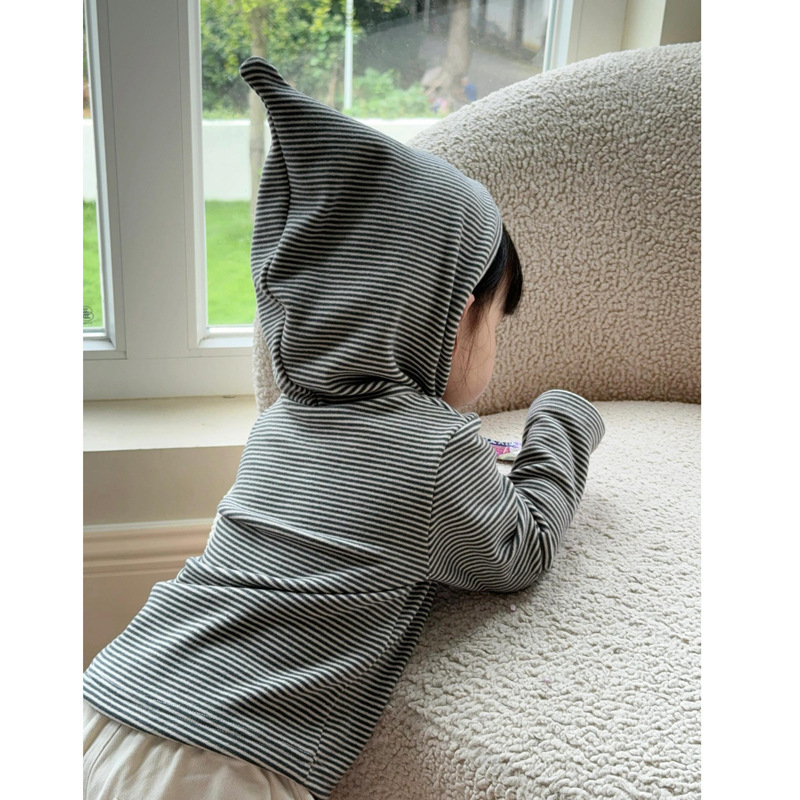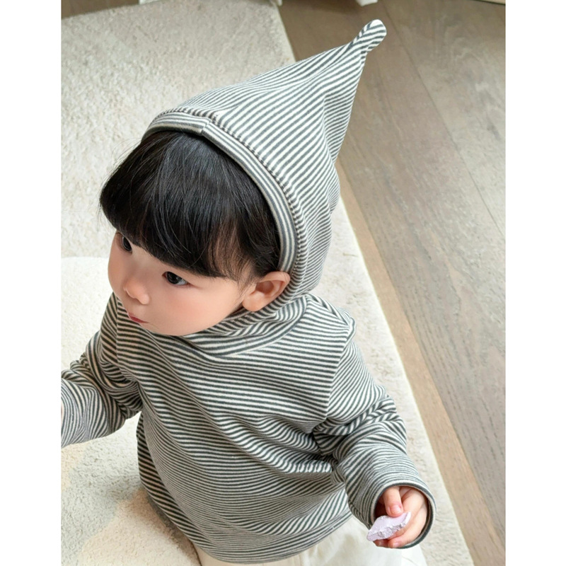 한국 아동복 어린이의 두꺼운 가을과 겨울베이스 셔츠 트렌디 클래식 스트라이프 후드 긴팔 탑스토어 가기