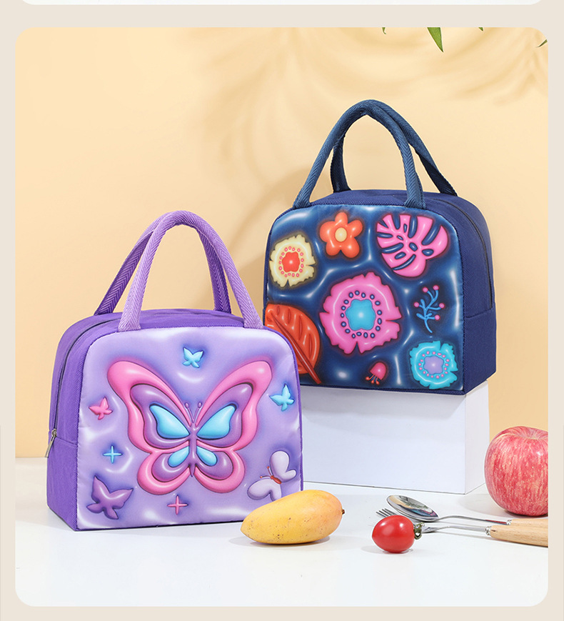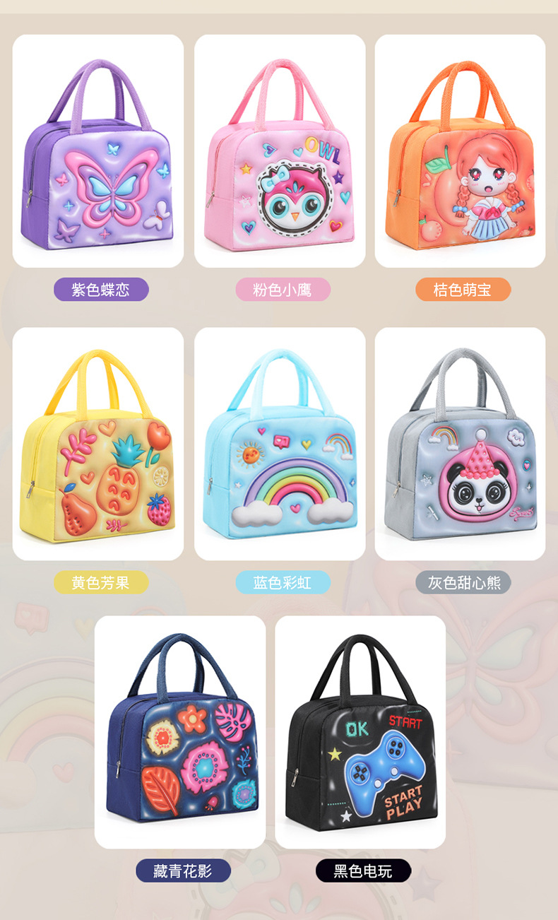 새로운 도파민 만화 도시락 가방 3 차원 패턴 귀여운 점심 가방 단열 가방 작업 학교 도시락 보관