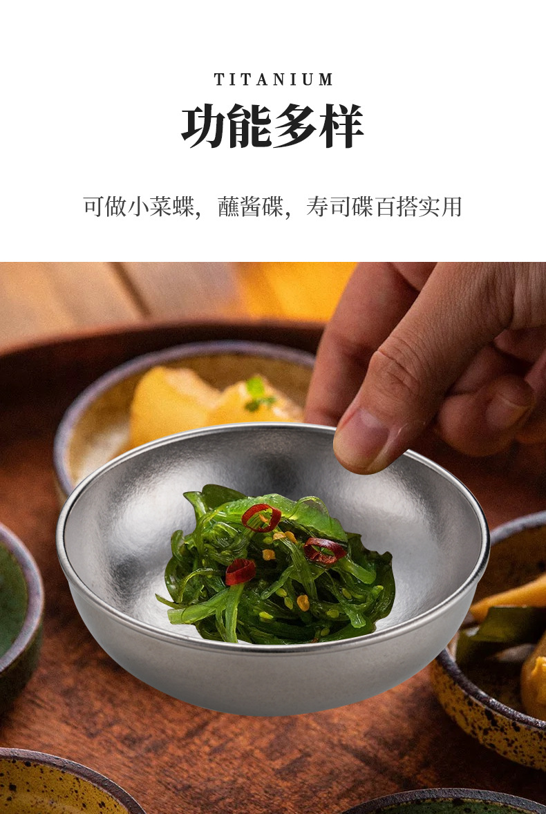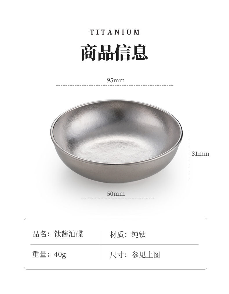 순수한 티타늄 식초 접시 간장 접시 가정용 초밥 접시 뜨거운 냄비 조미료 분류 스낵 접시 야외 미니 작은 접시