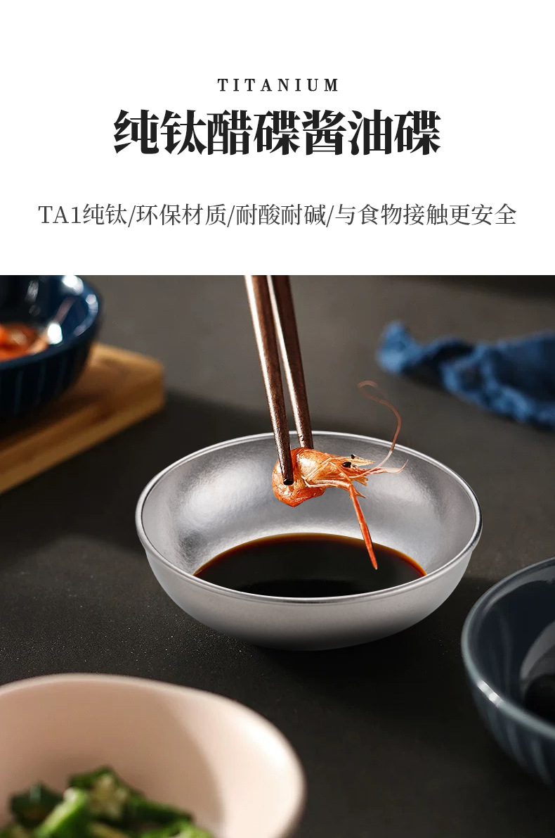 순수한 티타늄 식초 접시 간장 접시 가정용 초밥 접시 뜨거운 냄비 조미료 분류 스낵 접시 야외 미니 작은 접시스토어 가기