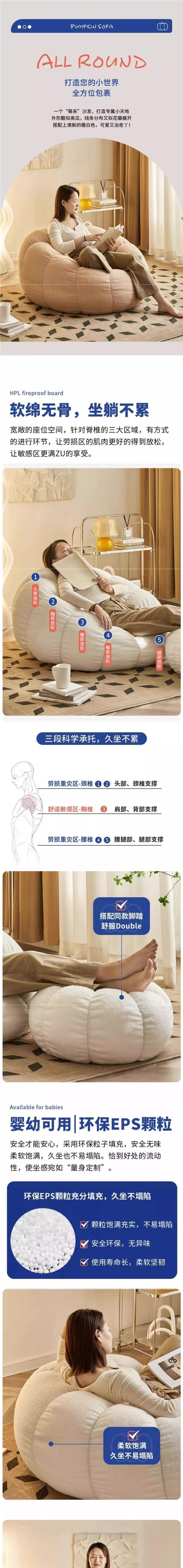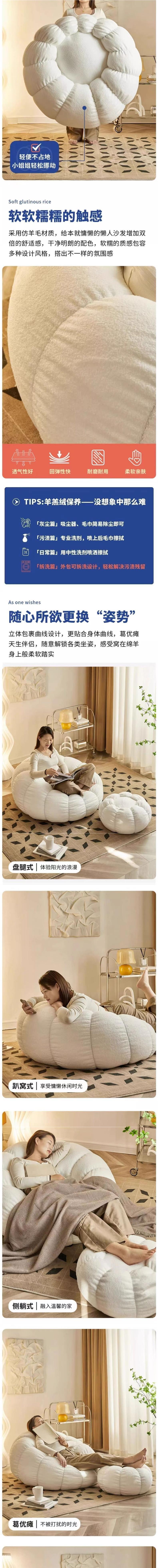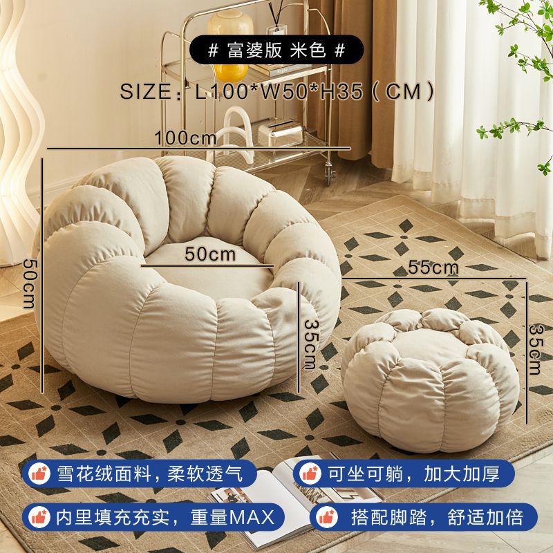 호박 크림 북유럽 게으른 소파 빈 가방 침실 인터넷 인기있는 공주 스타일 임대 하우스 바닥 소파 작은 아파트스토어 가기