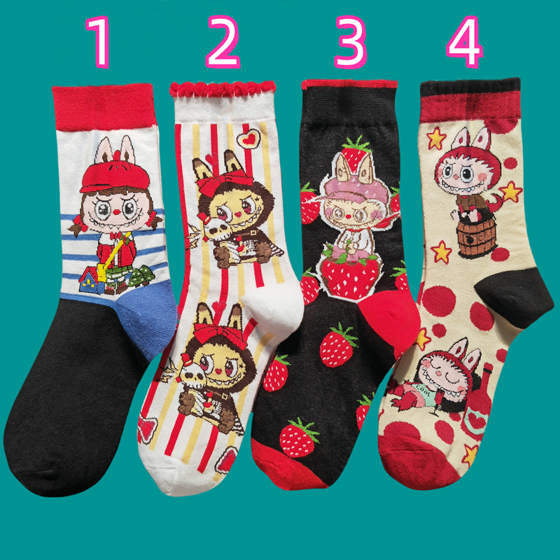 애니메이션 만화 양말 여성의 가을과 겨울 새로운 빗 코튼 미드 튜브 여성용 양말 유행 브랜드 귀여운 패턴 틈새 스타킹