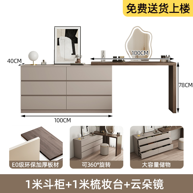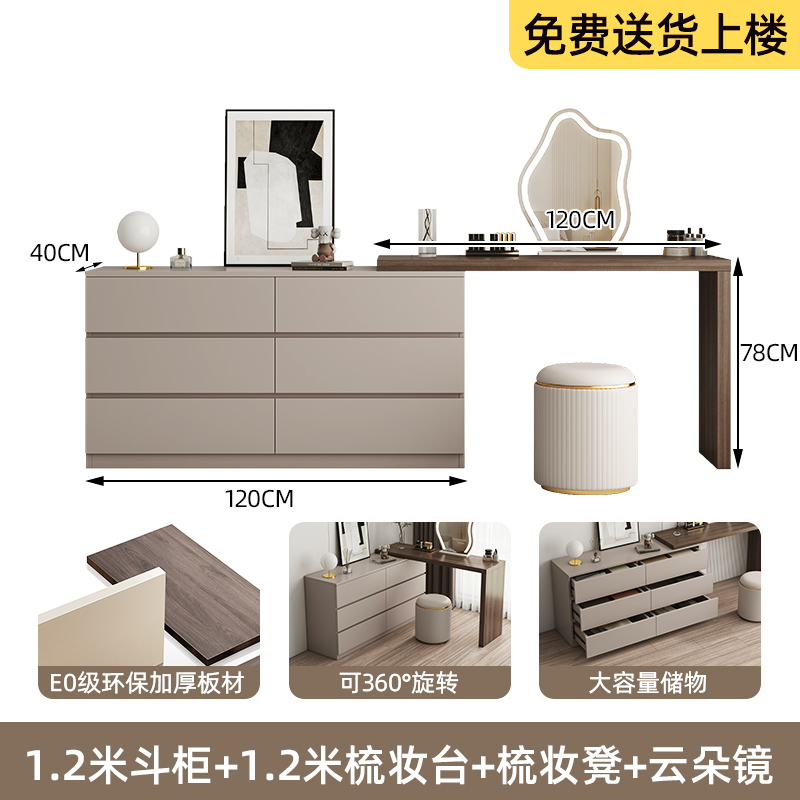 • 카키색 서랍장 1.2m + 화장대 1.2m + 구름거울 [공장 직매]