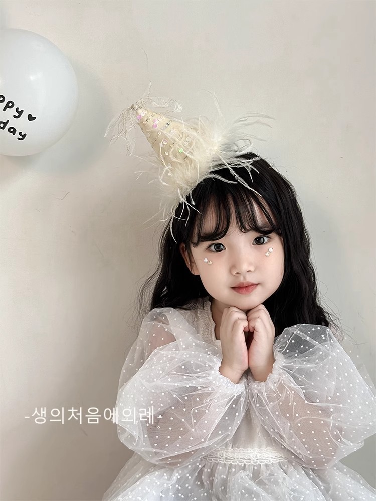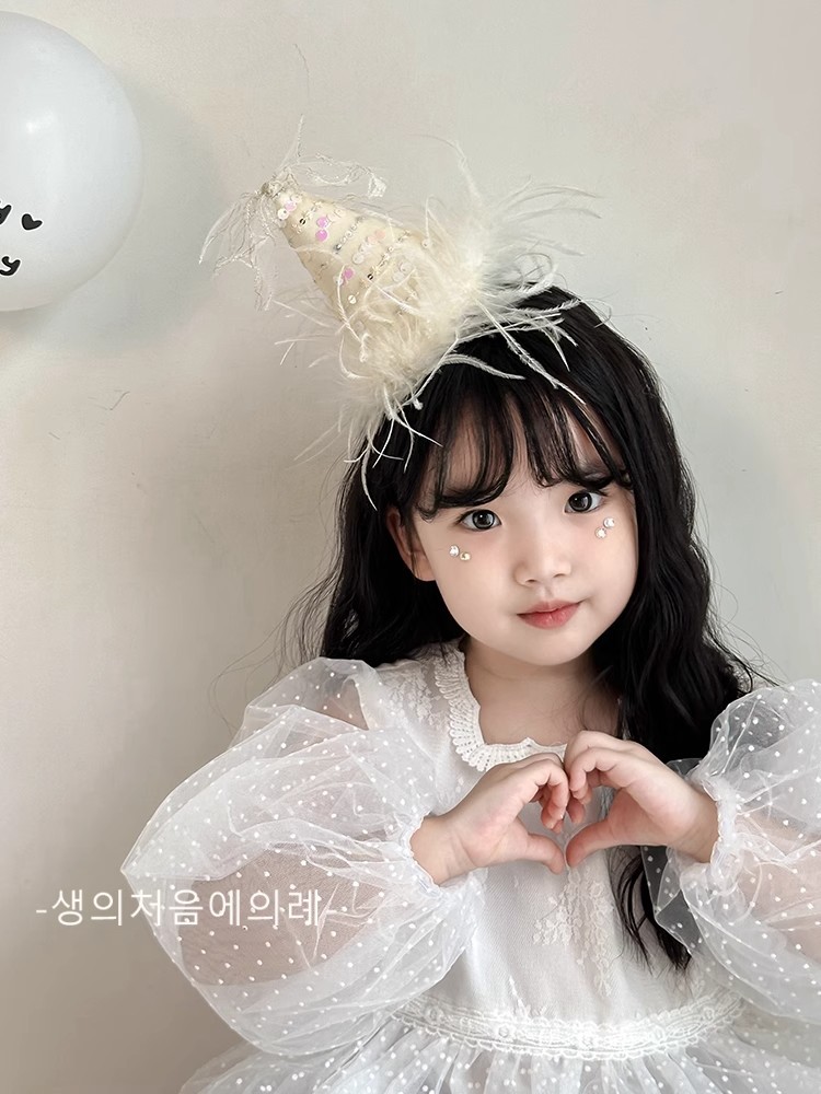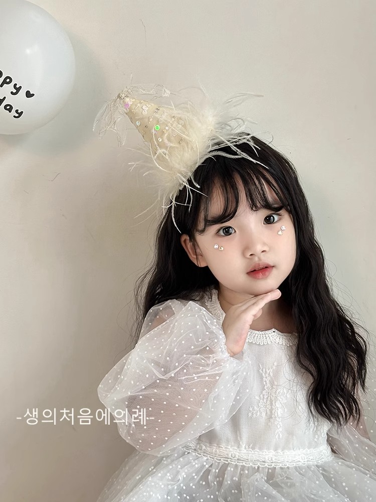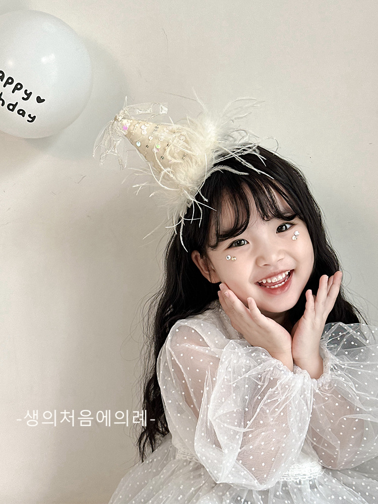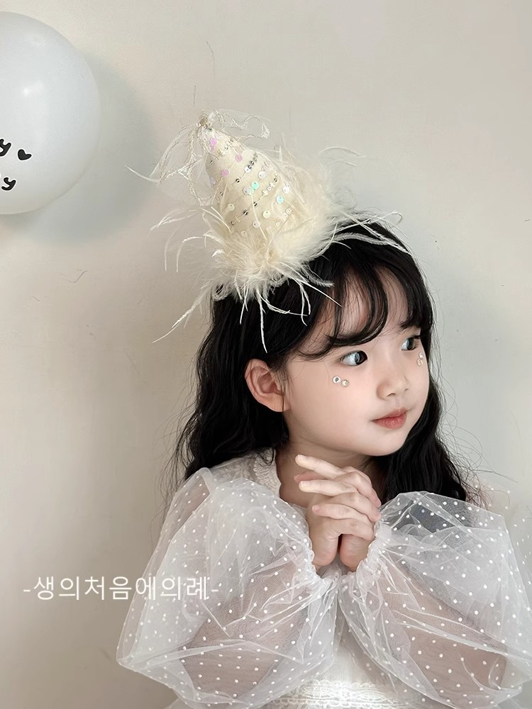 • 스팽글 깃털 생일 모자 머리핀