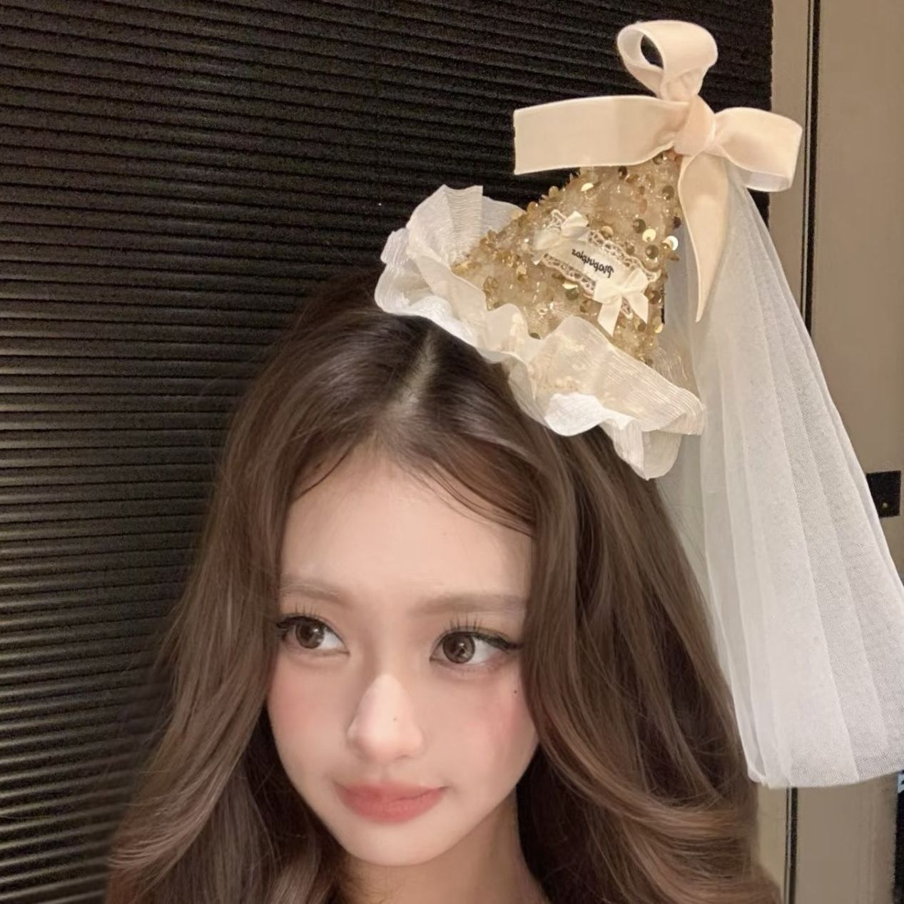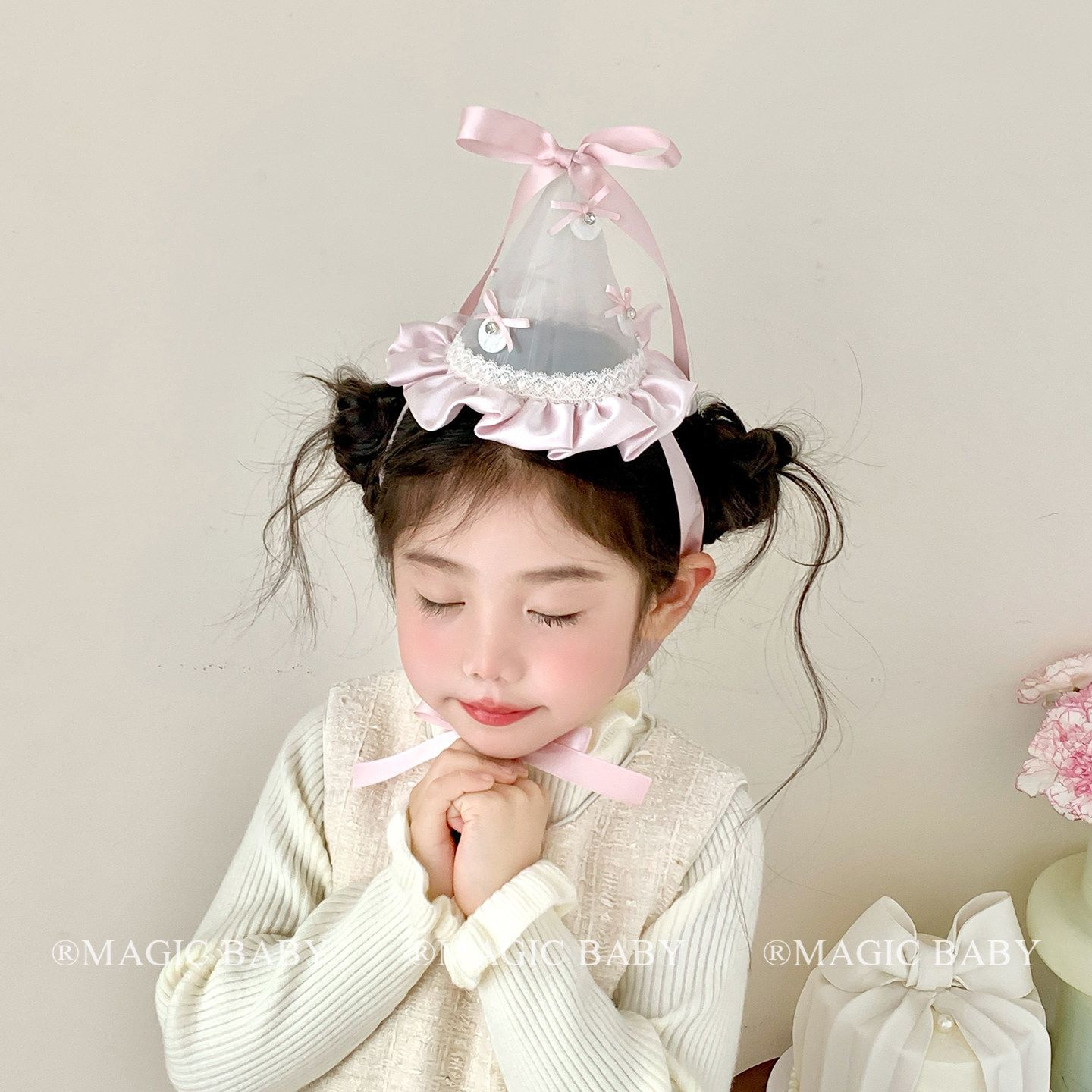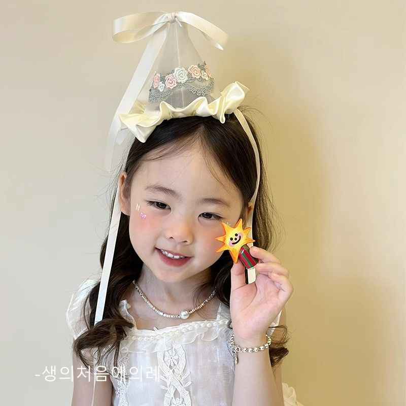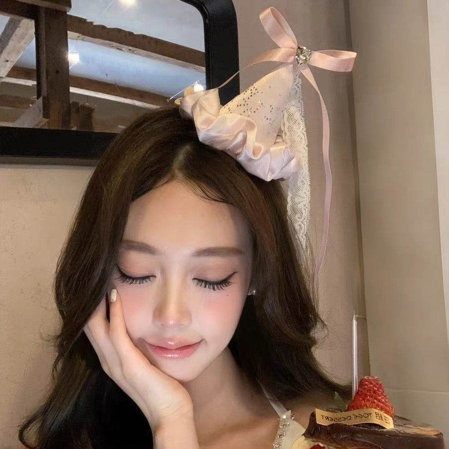 • 샴페인 쌀 리본 생일 모자 머리핀