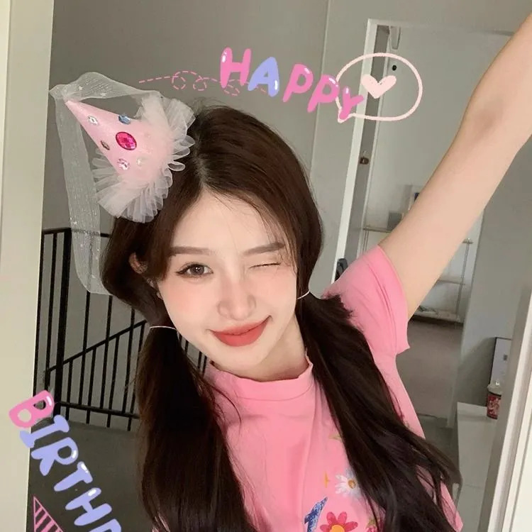 • 메쉬 생일 모자 머리핀