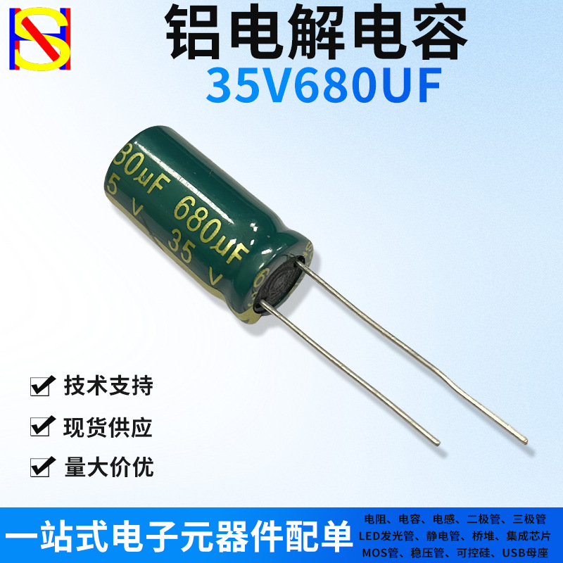 단일 35V680UF 10X20mm 직접 플러그인 알루미늄 전해 커패시터 고주파 원 스톱 전자 부품스토어 가기