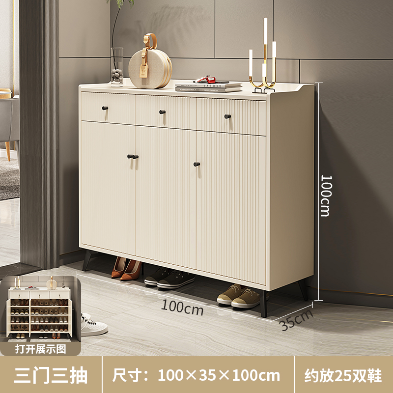 프랑스 크림 스타일 울트라 얇은 신발 캐비닛 가정용 도어 엔트리 라이트 럭셔리 가정용 대용량 스토리지 티핑 버킷 입구 캐비닛 통합