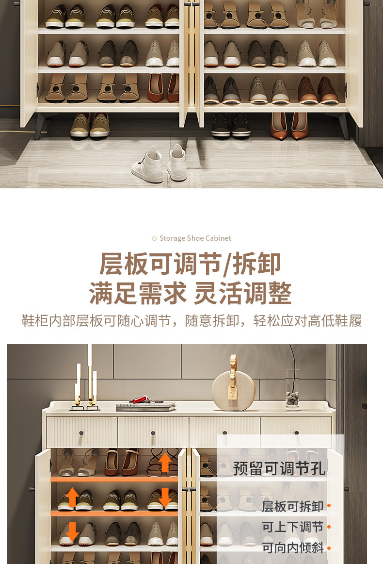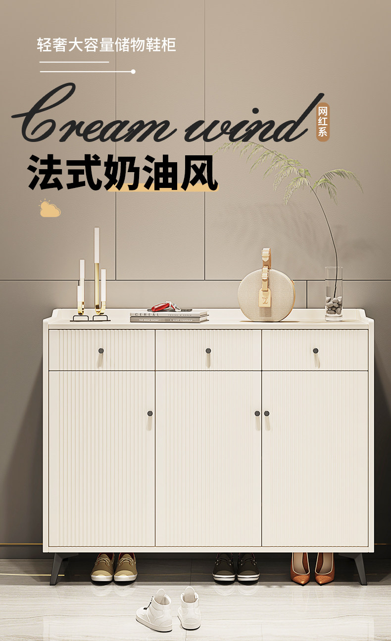 프랑스 크림 스타일 울트라 얇은 신발 캐비닛 가정용 도어 엔트리 라이트 럭셔리 가정용 대용량 스토리지 티핑 버킷 입구 캐비닛 통합스토어 가기