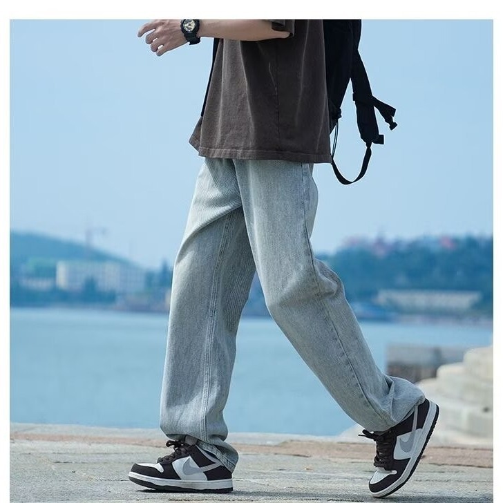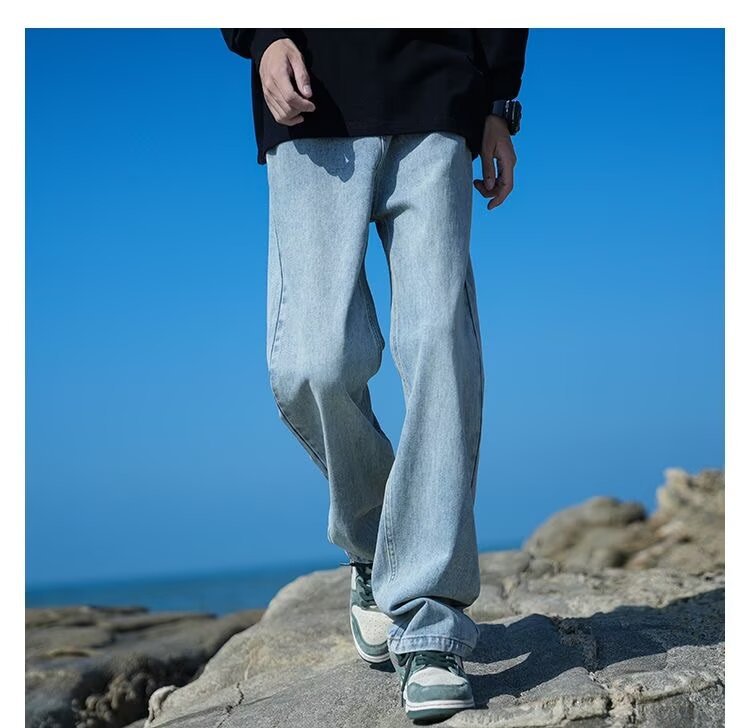 아메리칸 스타일 하이 스트리트 청바지 남성 봄과 가을 새로운 패션 브랜드 레트로 올매치 루즈 캐주얼 스트레이트 레그 와이드 레그 롱 팬츠