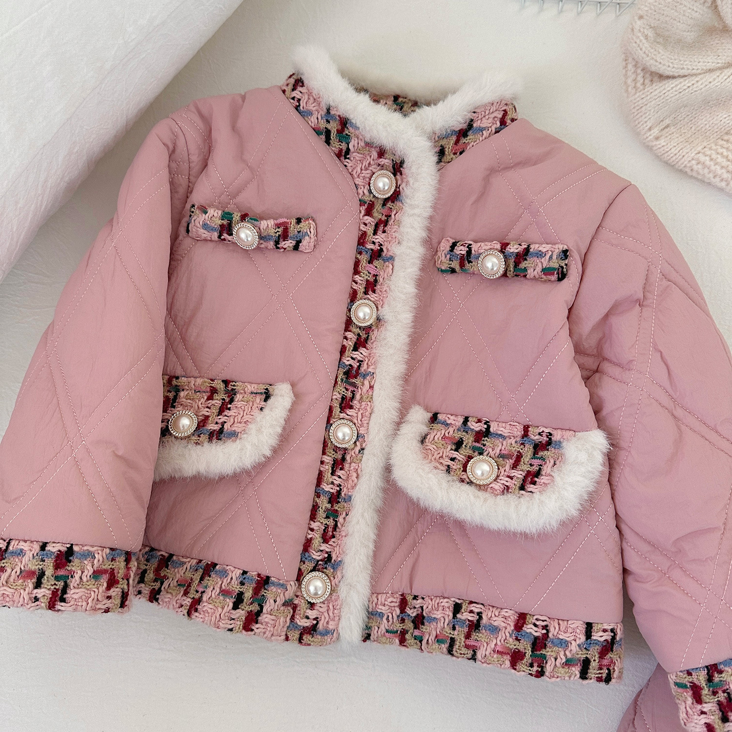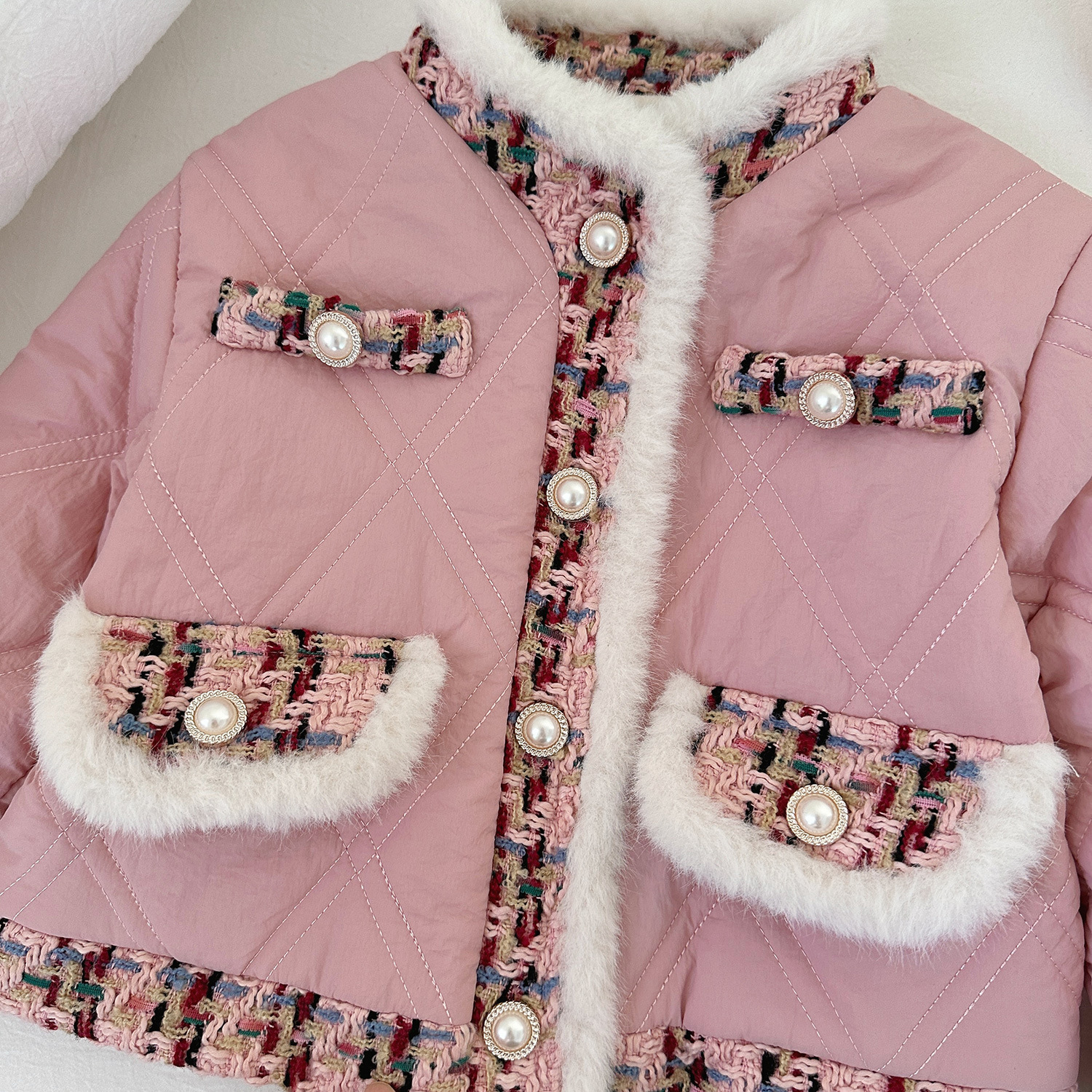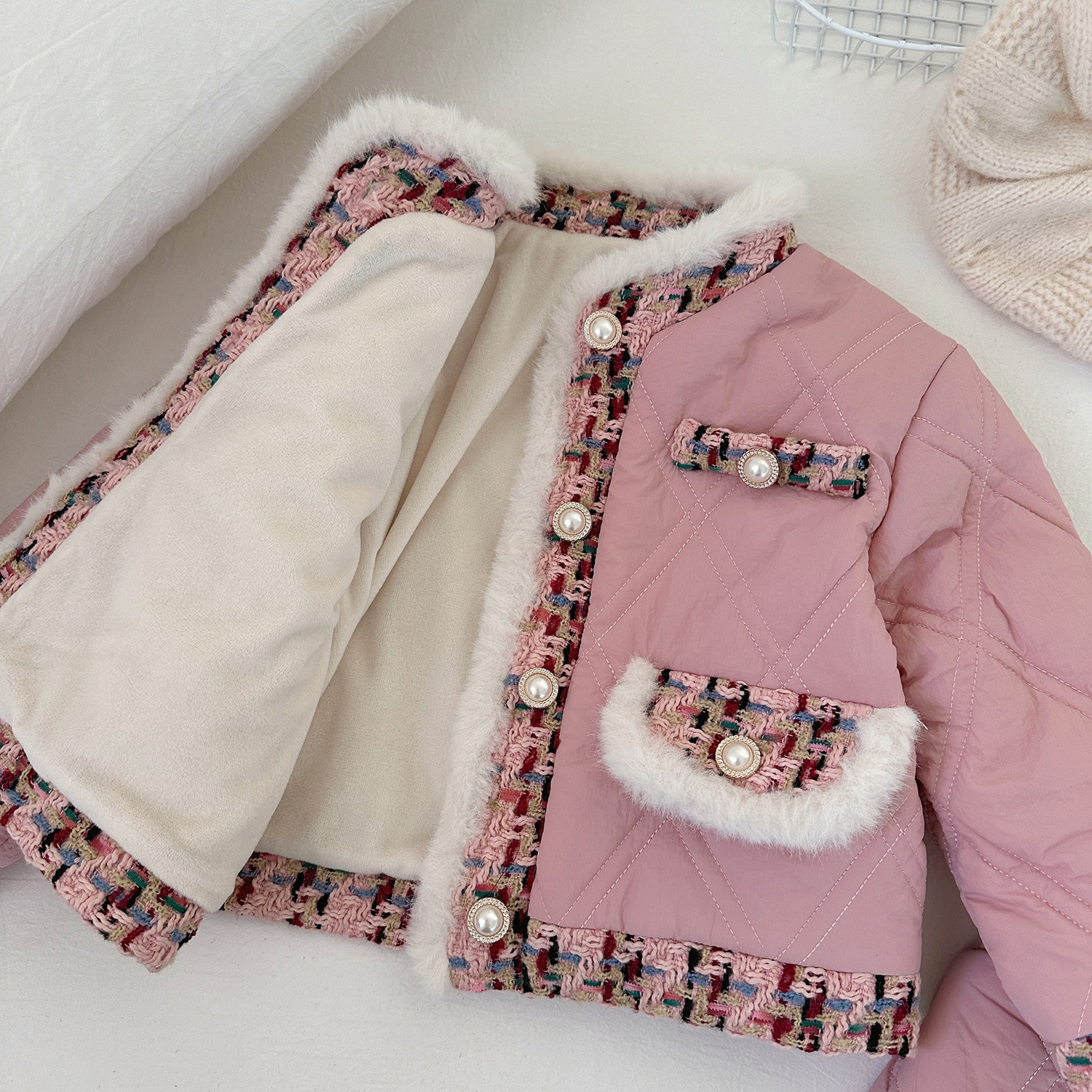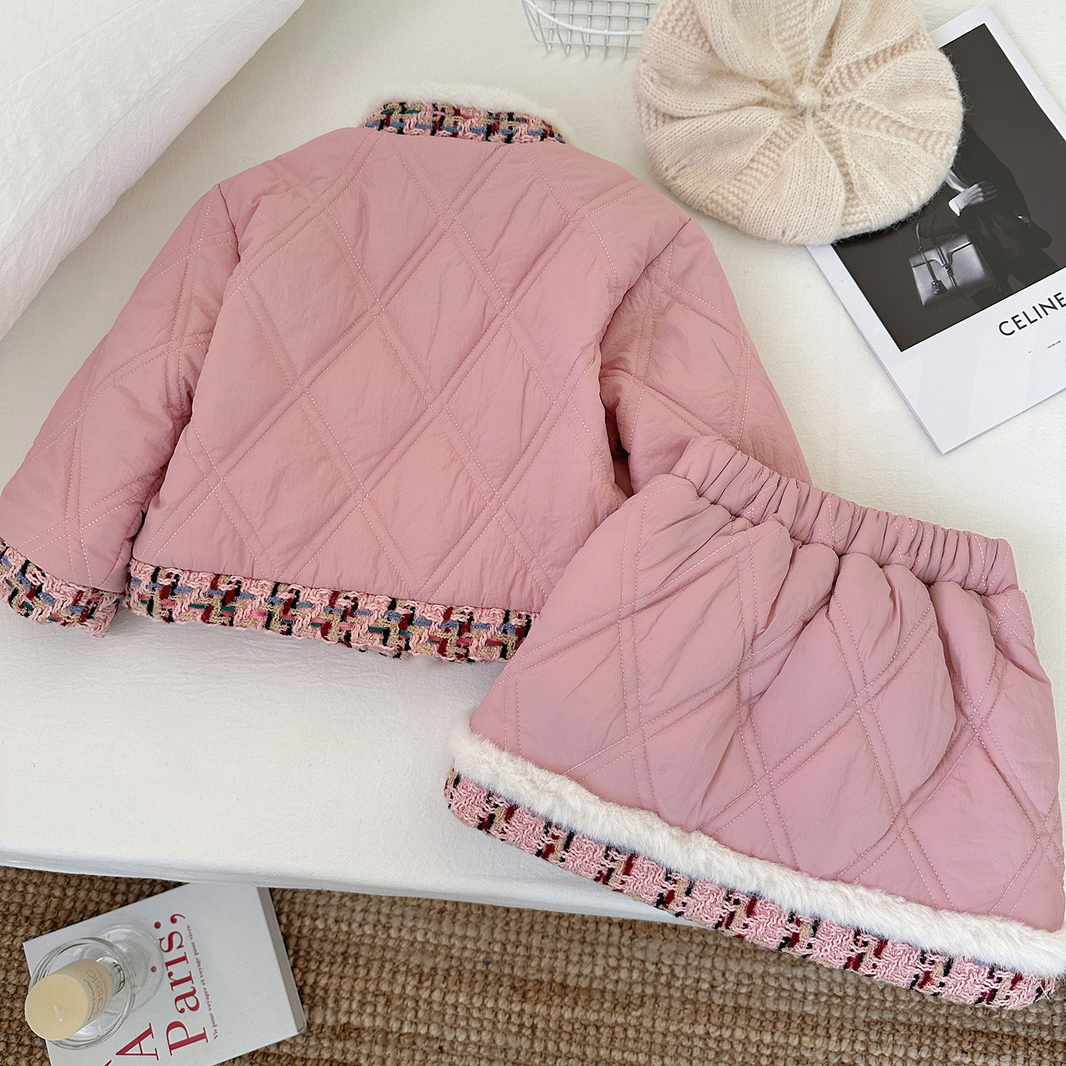소녀 세트 2024 겨울 새 기모 소녀 코트 스커트 바느질 칼라 웨스턴 스타일 두꺼운 세트