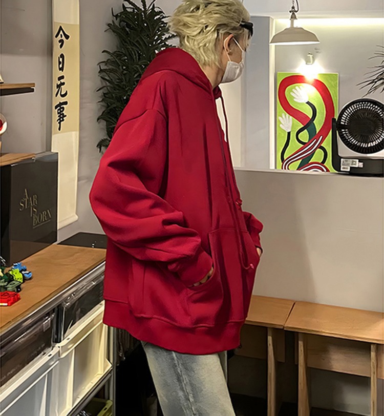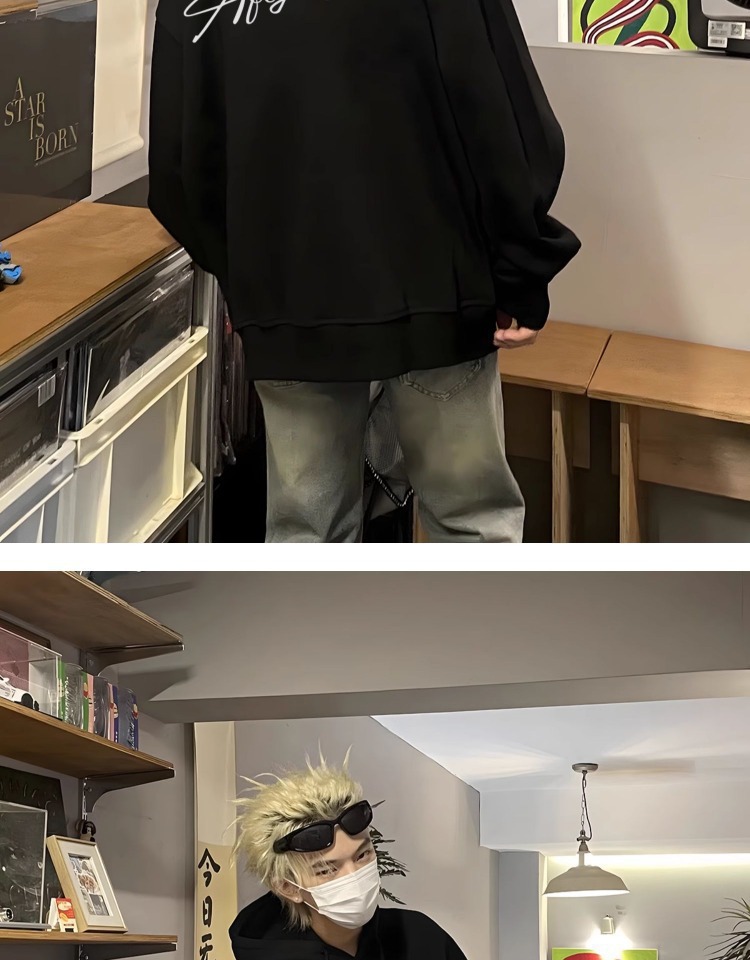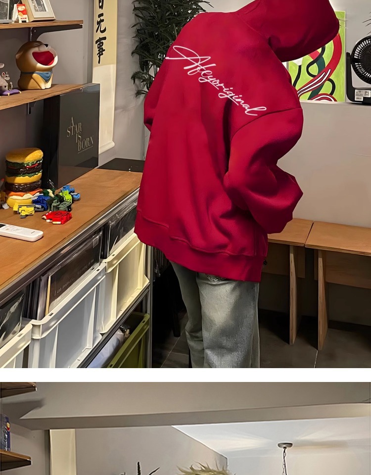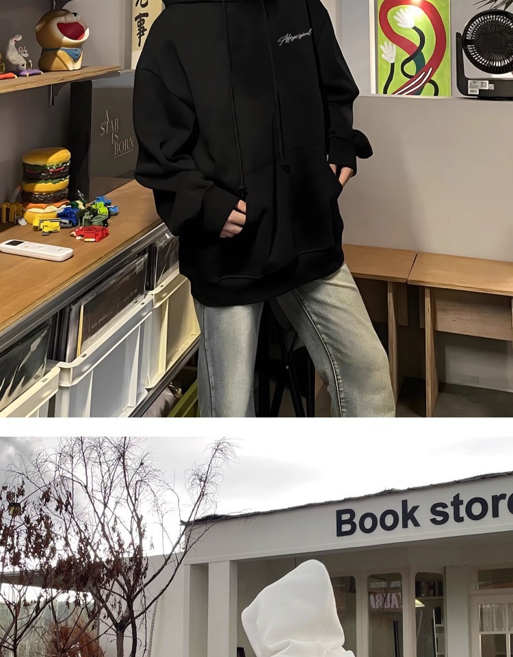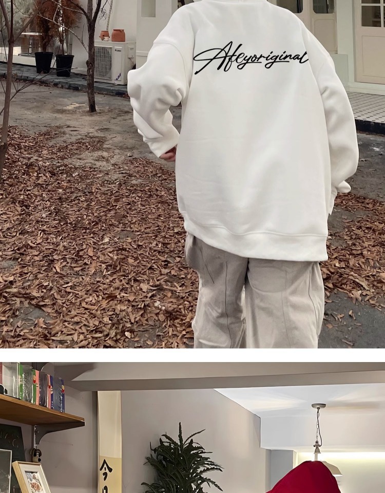 검은 색 편지 인쇄 무거운 스웨터 남성용 아메리칸 스타일 하이 스트리트 ootd 가을 및 겨울 코트 오버 사이즈 후드스토어 가기