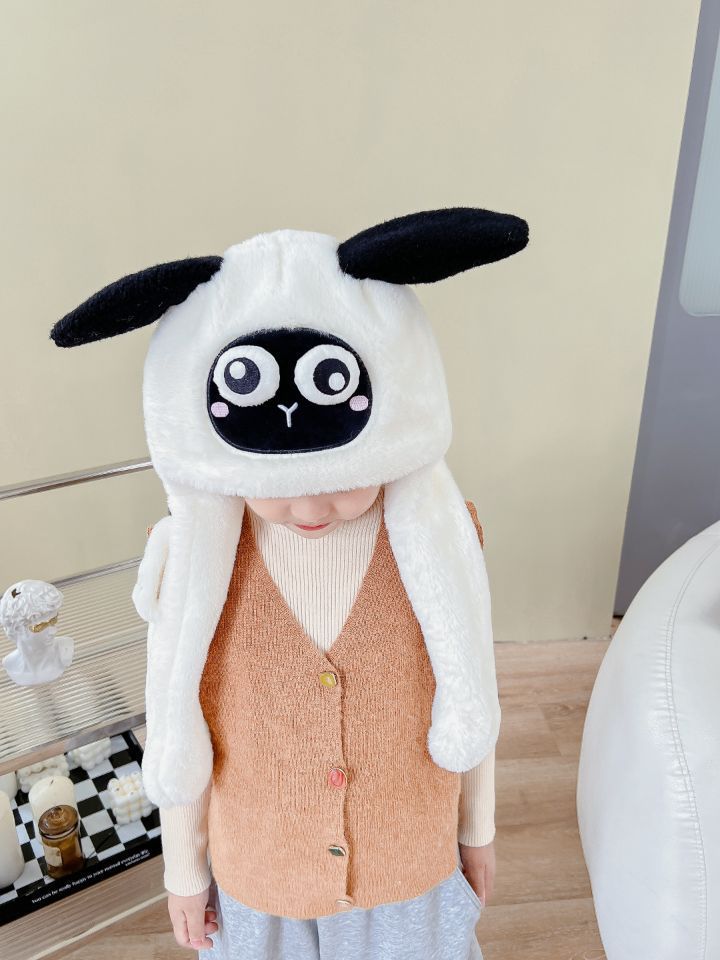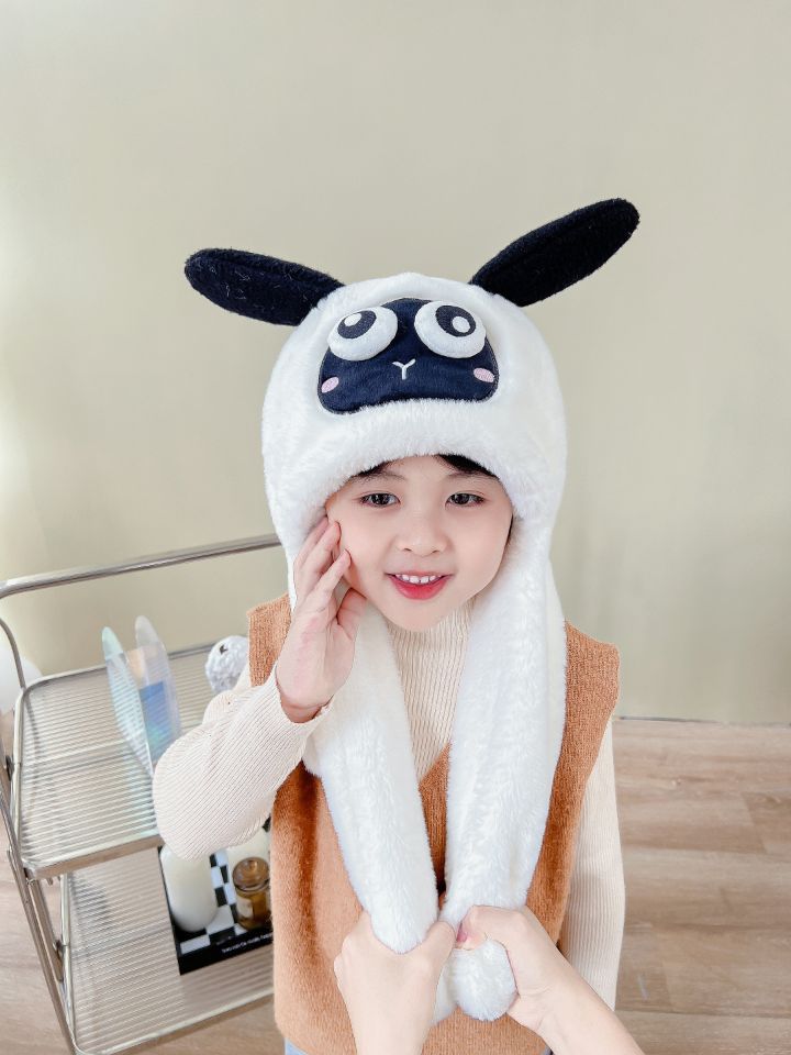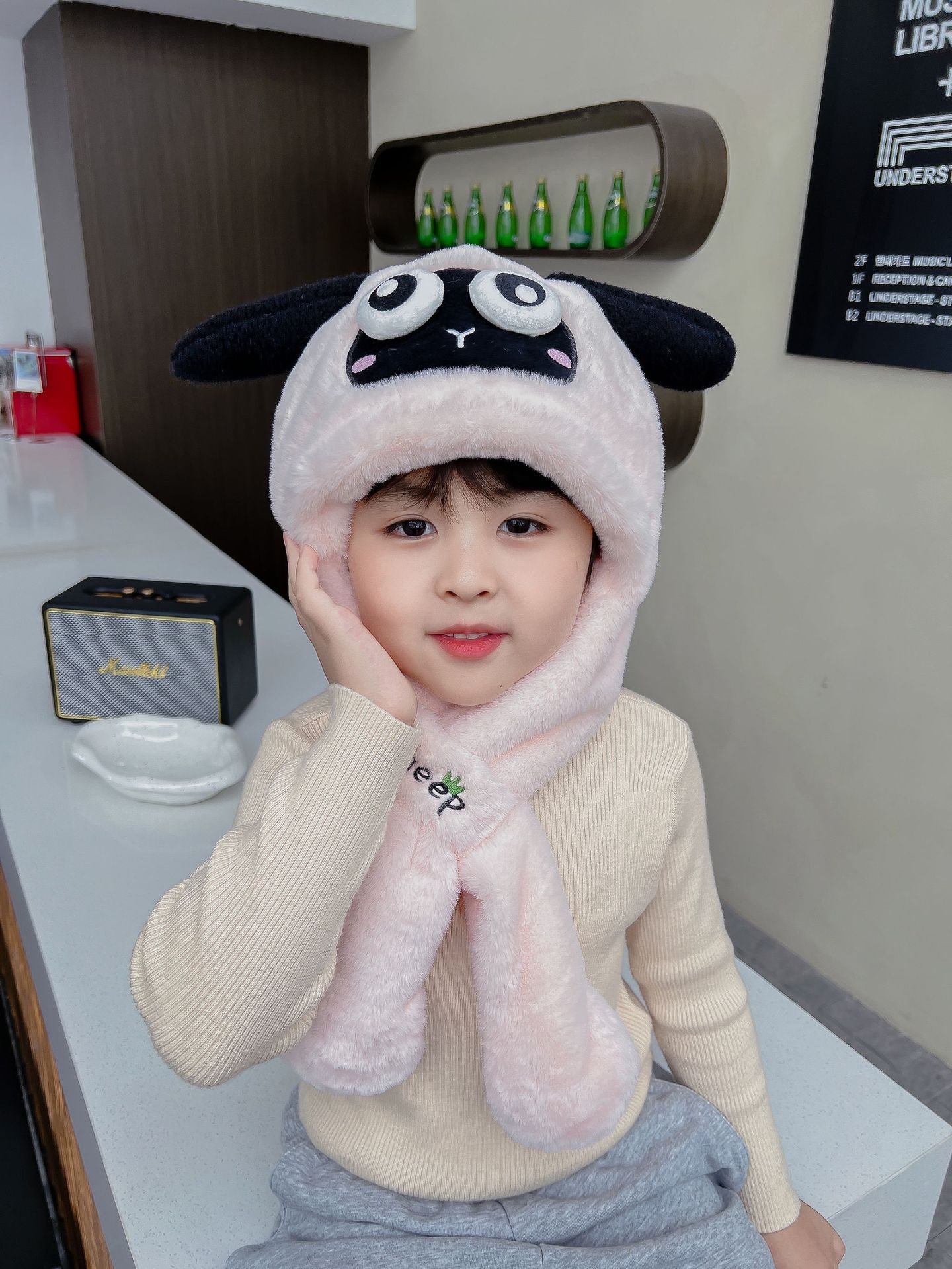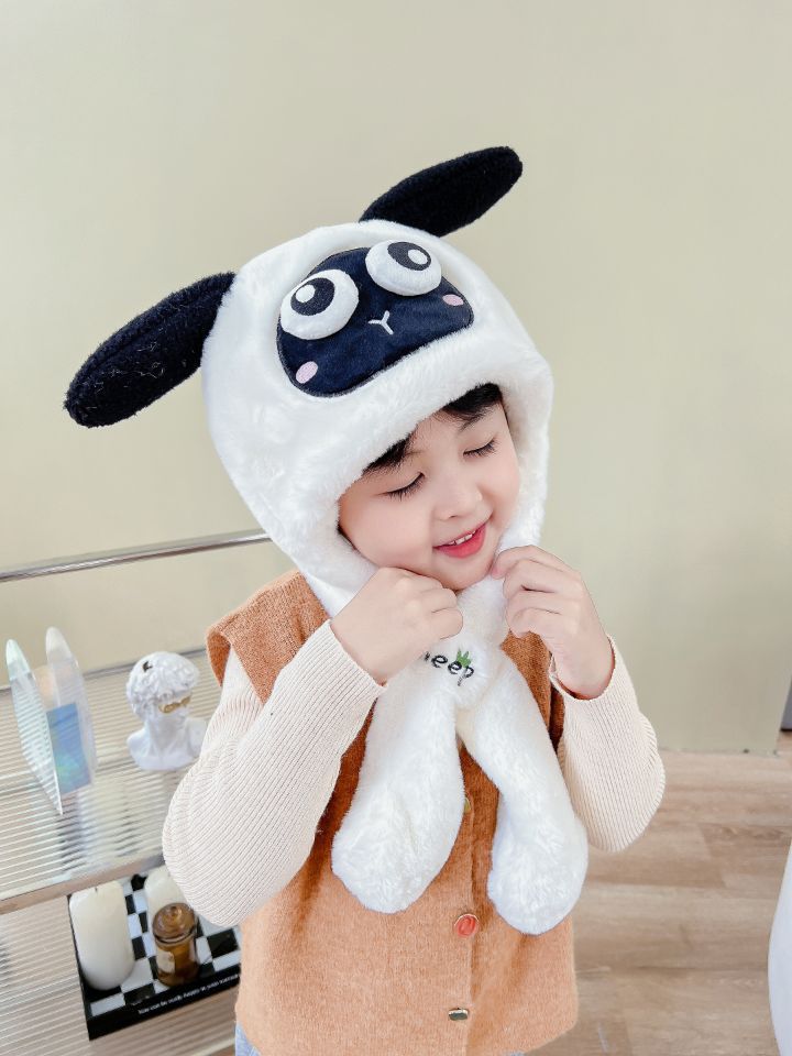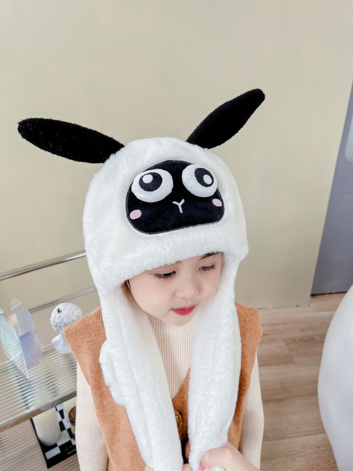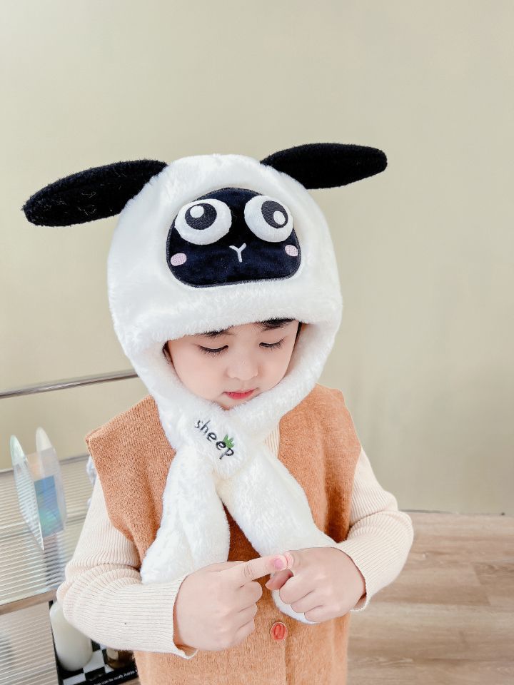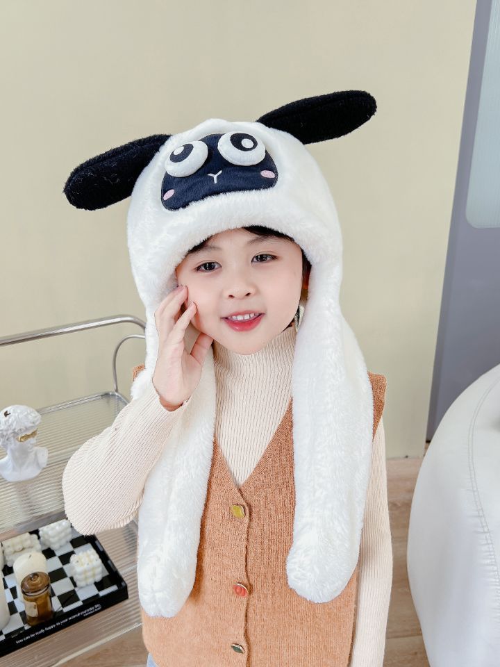 어린이 만화 팬더 푹신한 모자가 귀를 따뜻하게 두껍게 움직이는 여성 귀 보호 캡 스카프 스카프 올인원 모자