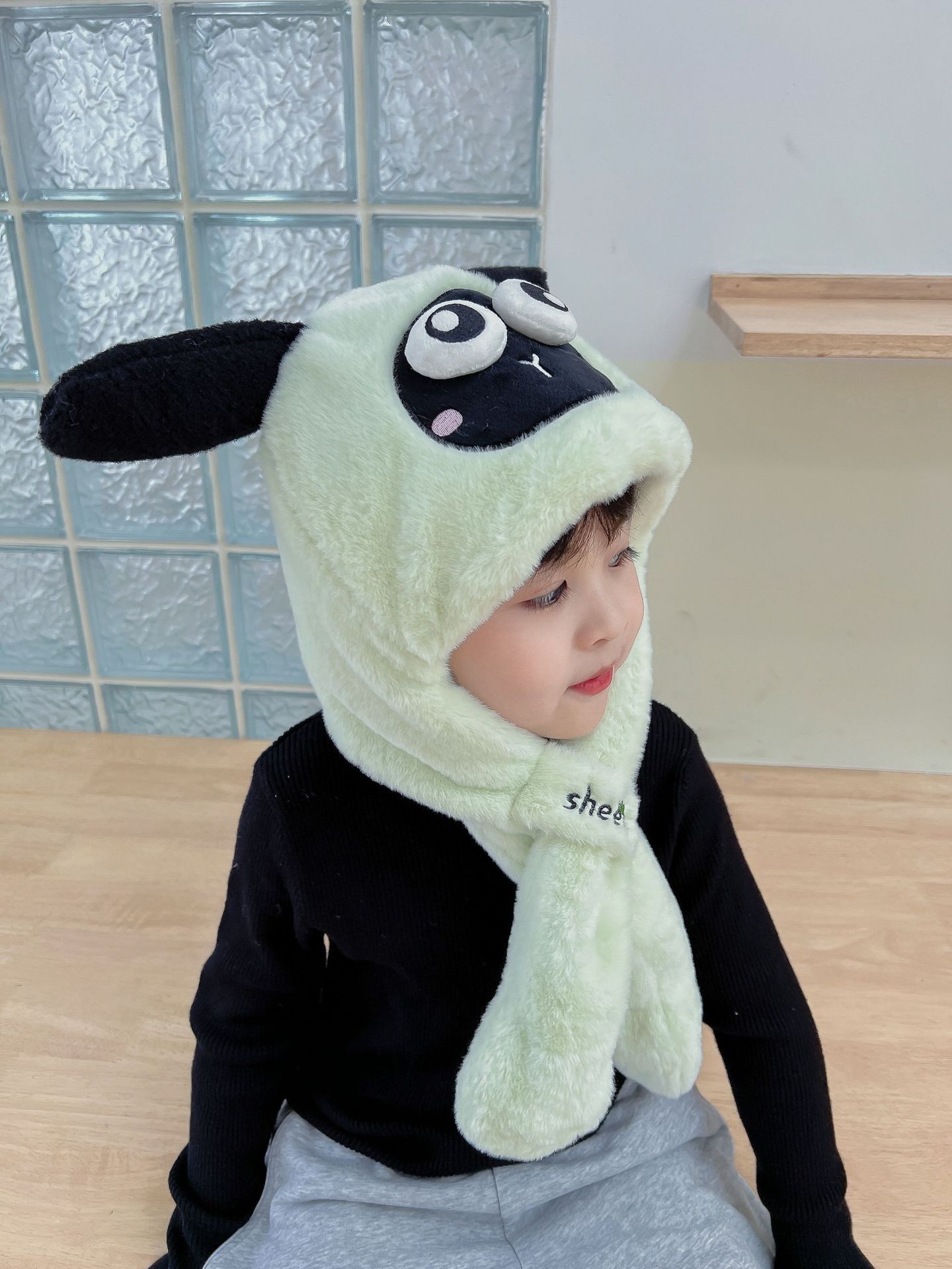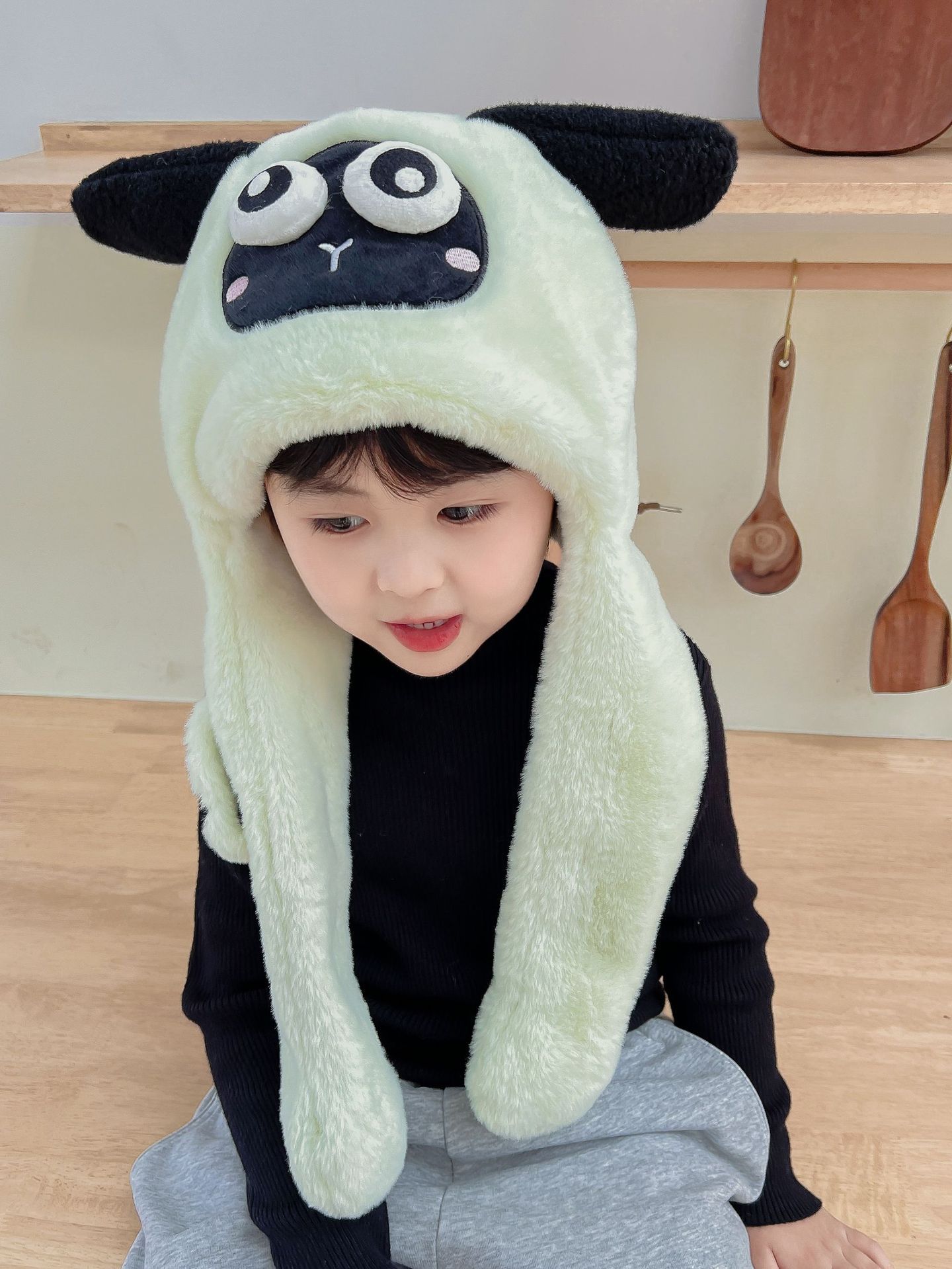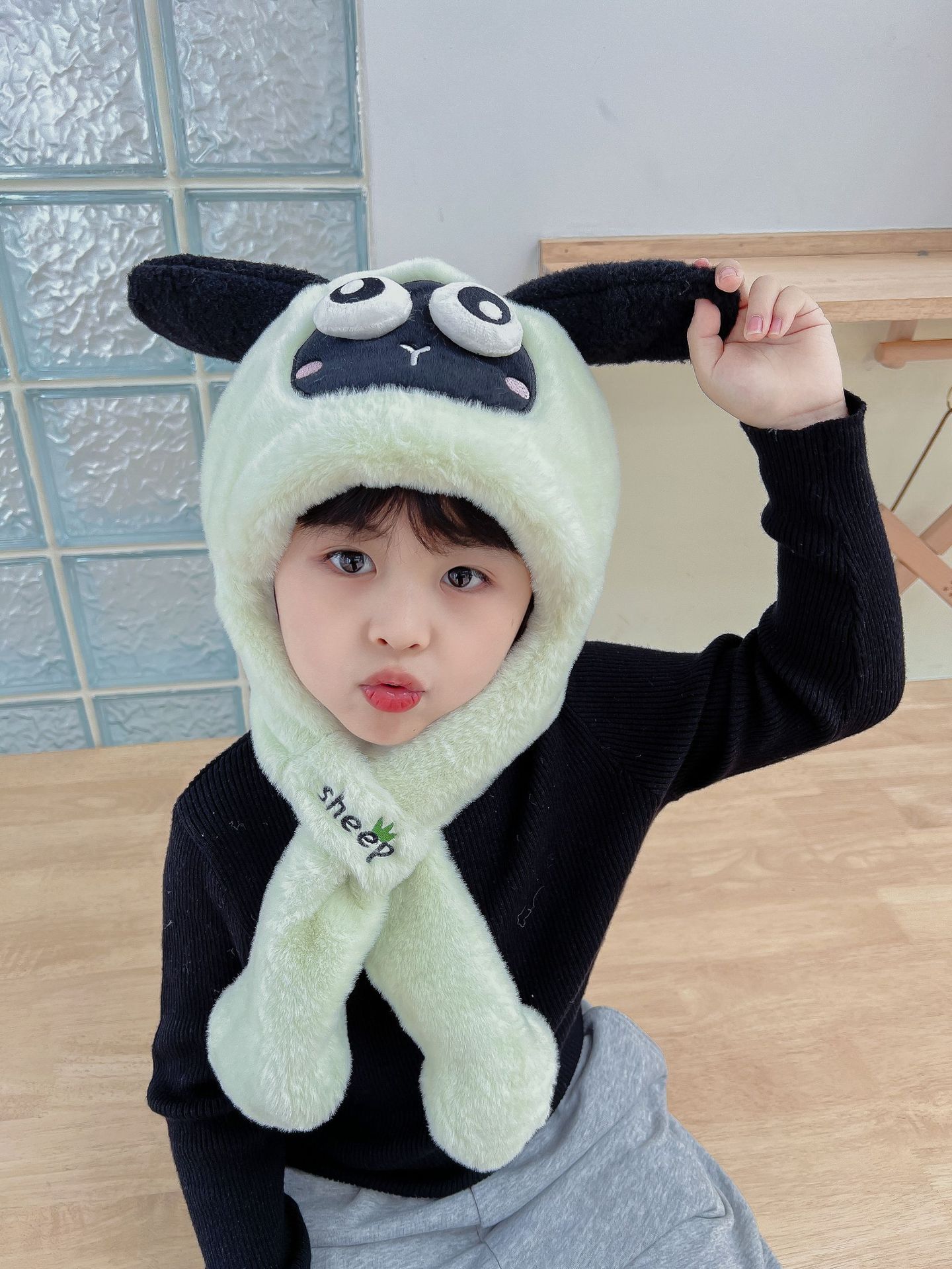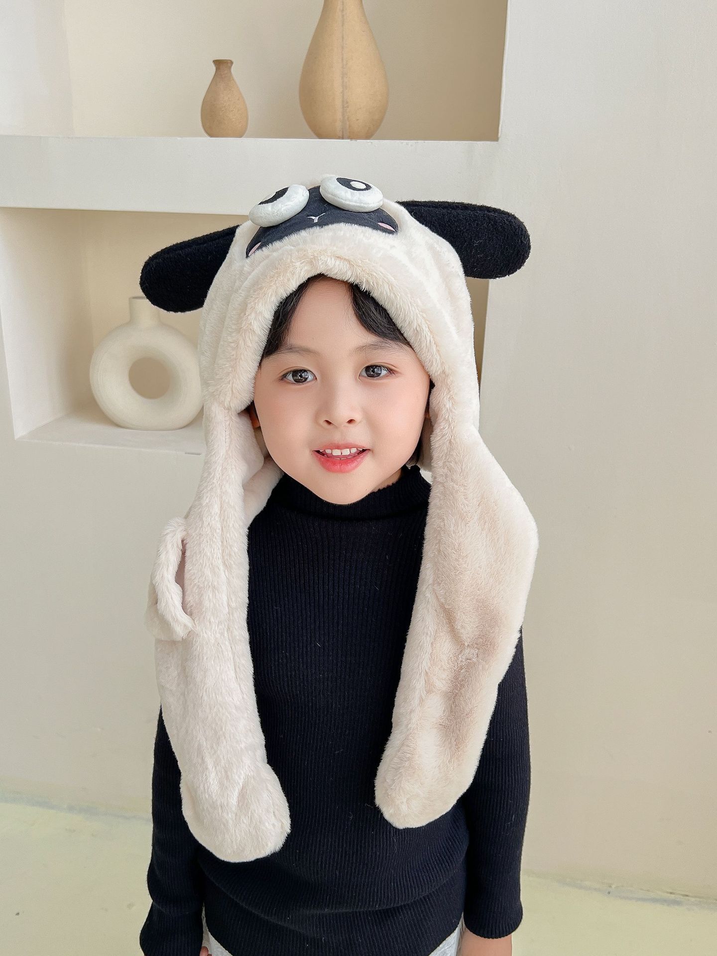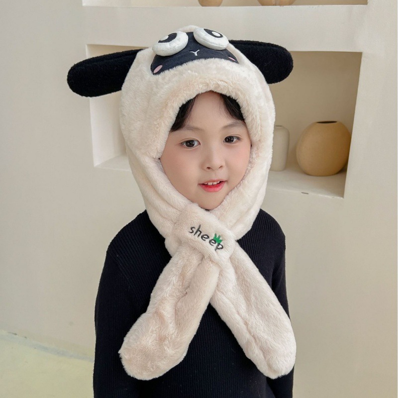 어린이 만화 팬더 푹신한 모자가 귀를 따뜻하게 두껍게 움직이는 여성 귀 보호 캡 스카프 스카프 올인원 모자