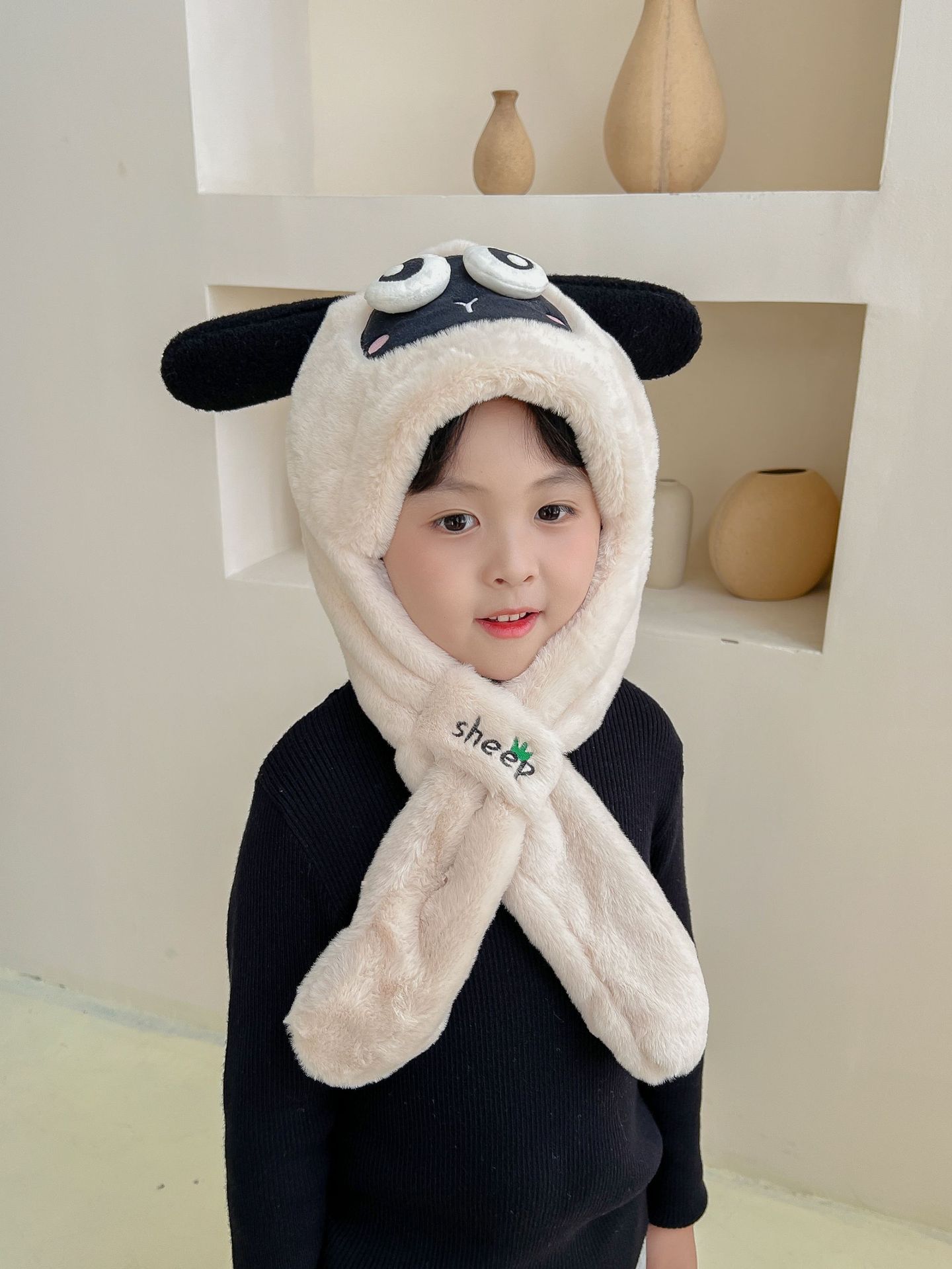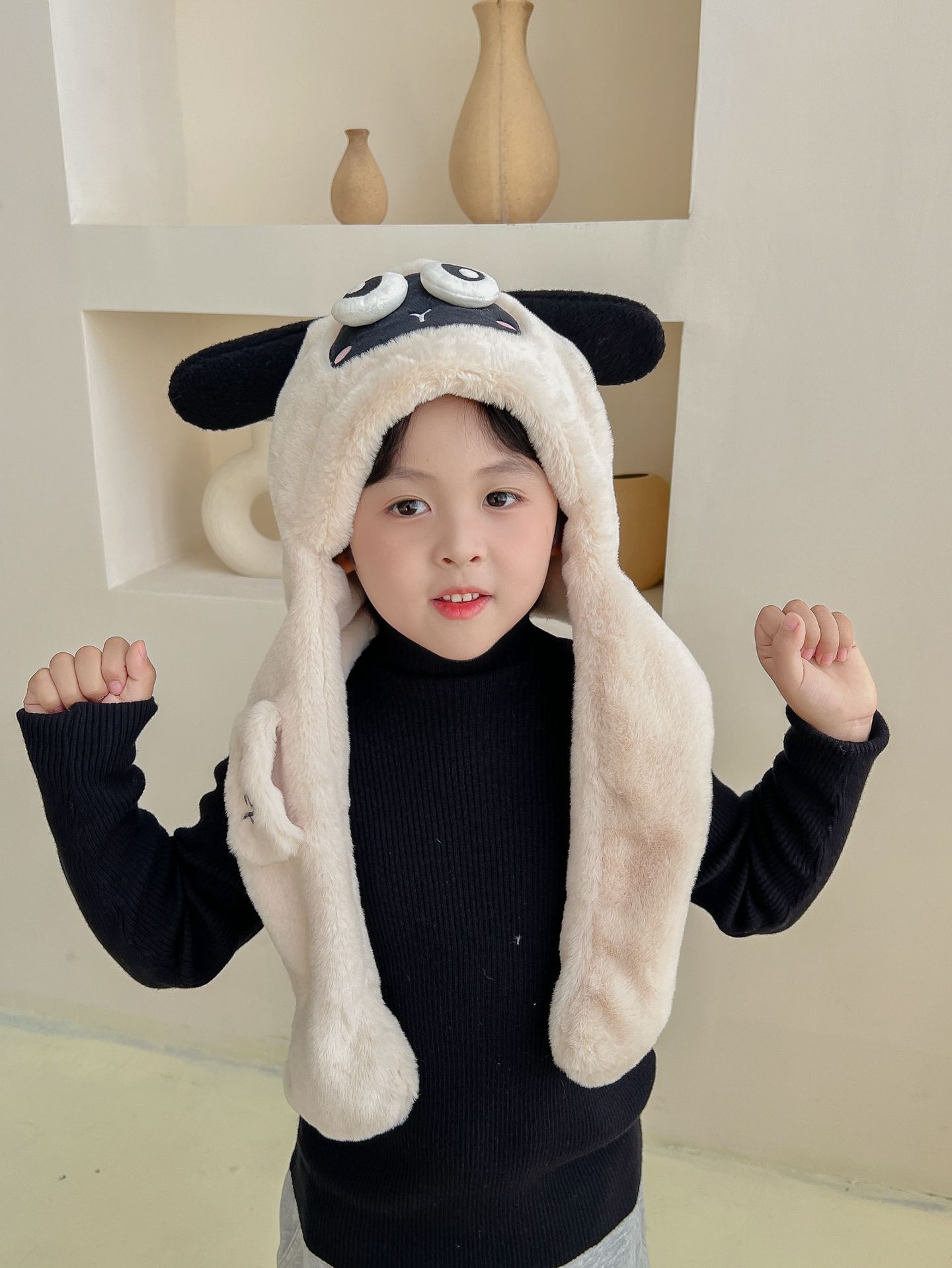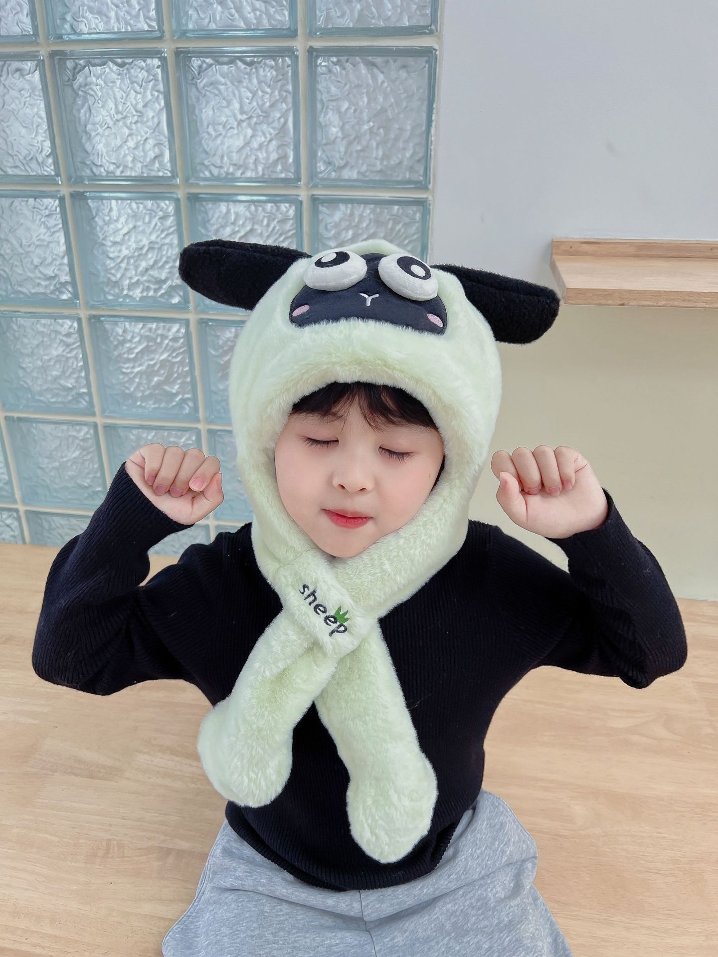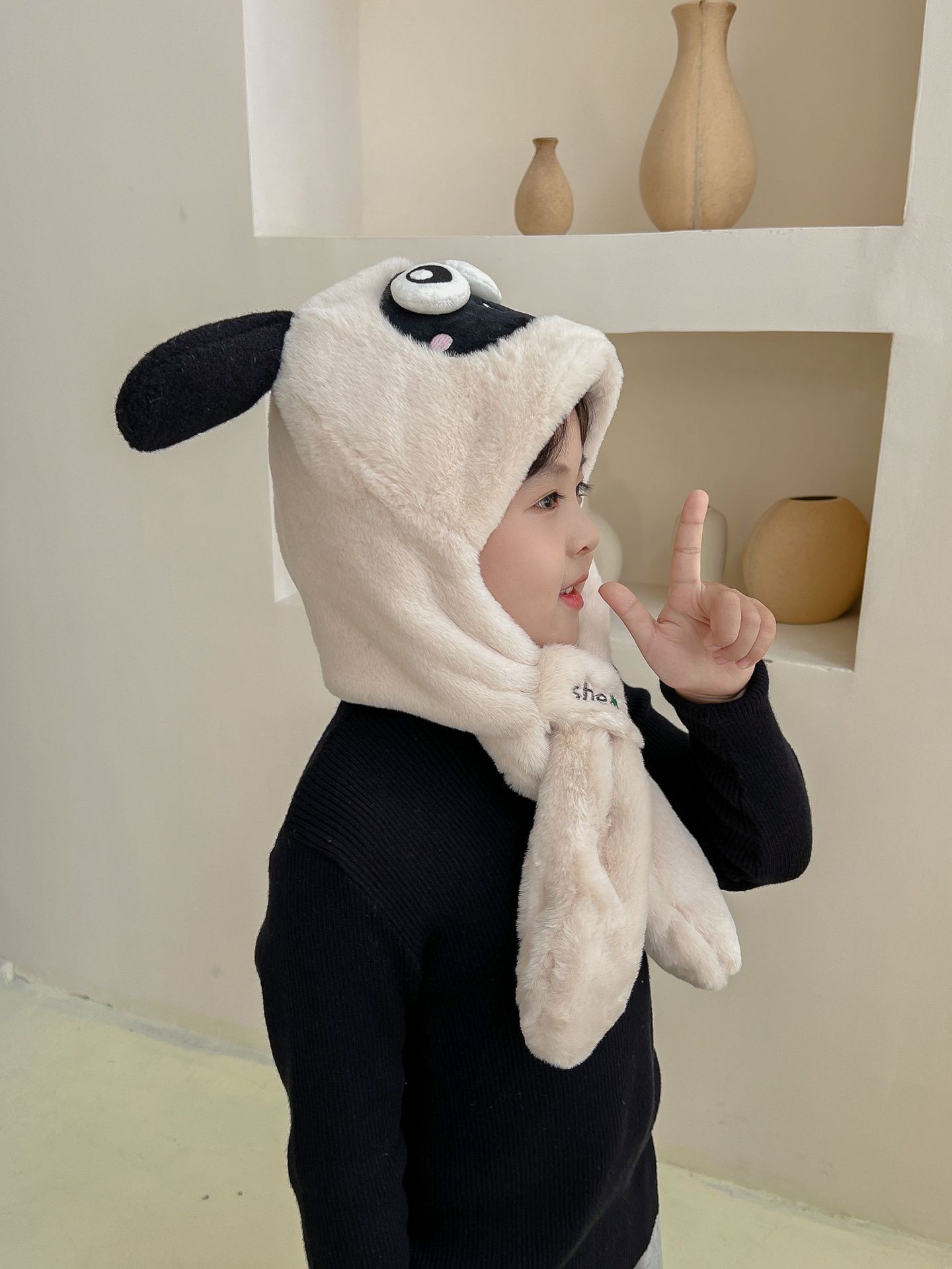 어린이 만화 팬더 푹신한 모자가 귀를 따뜻하게 두껍게 움직이는 여성 귀 보호 캡 스카프 스카프 올인원 모자