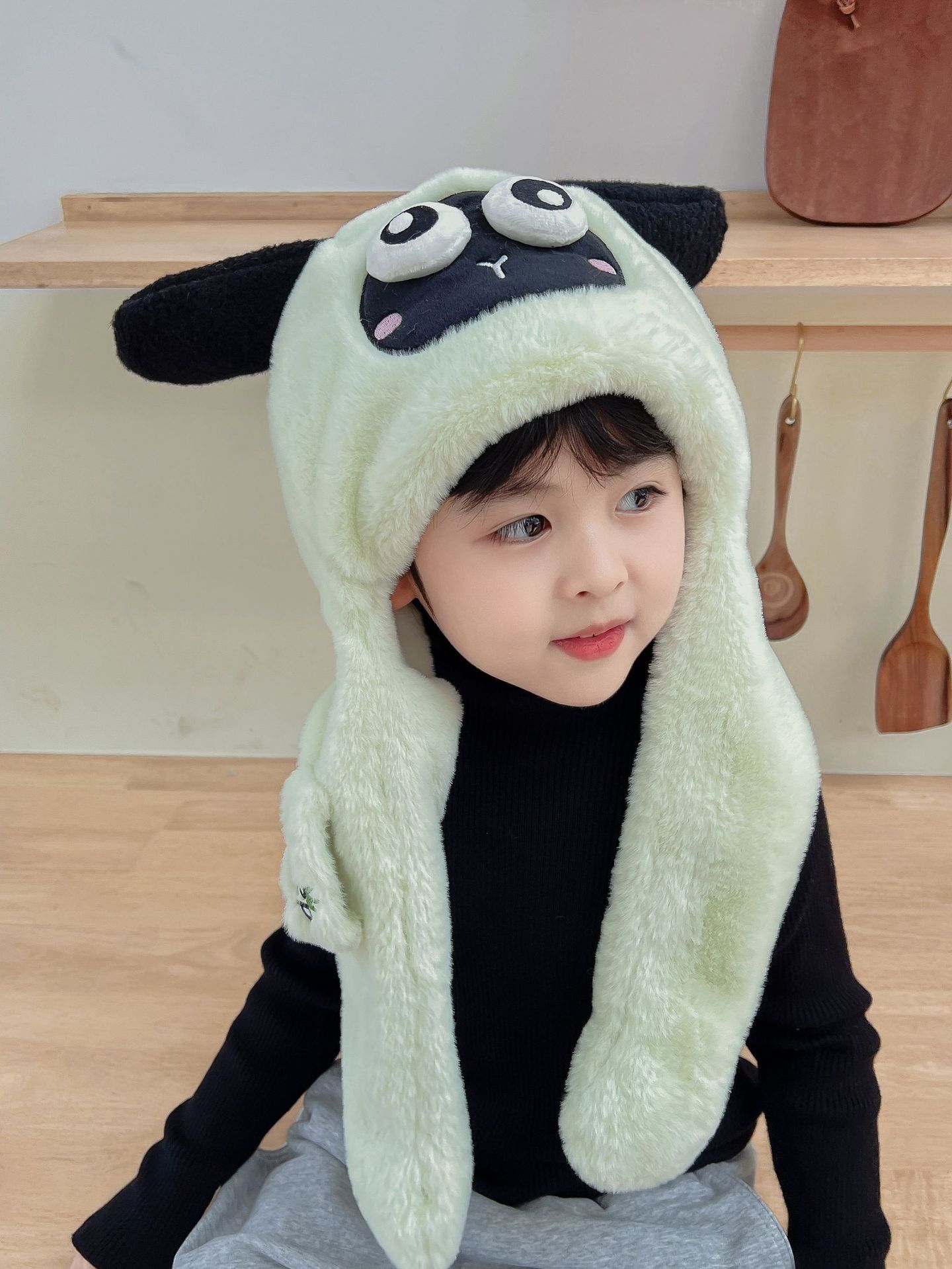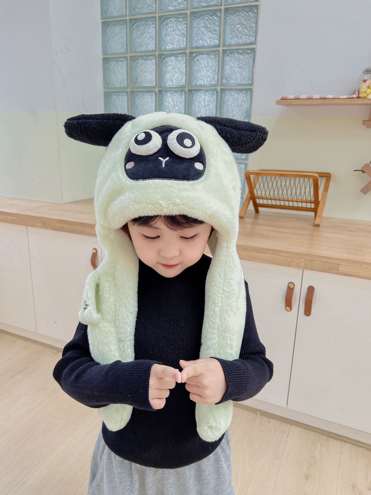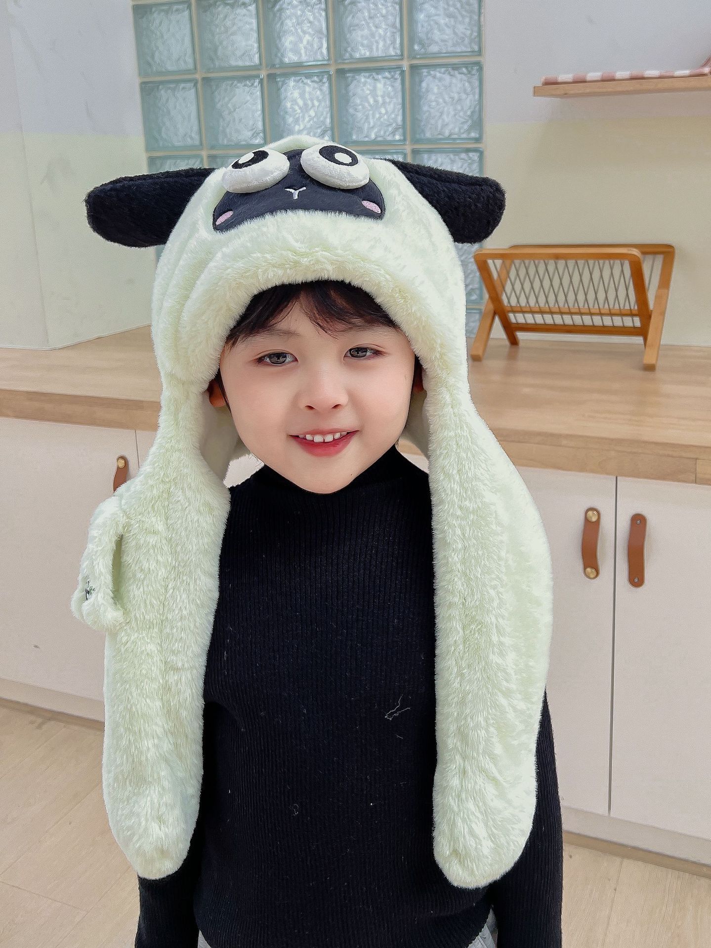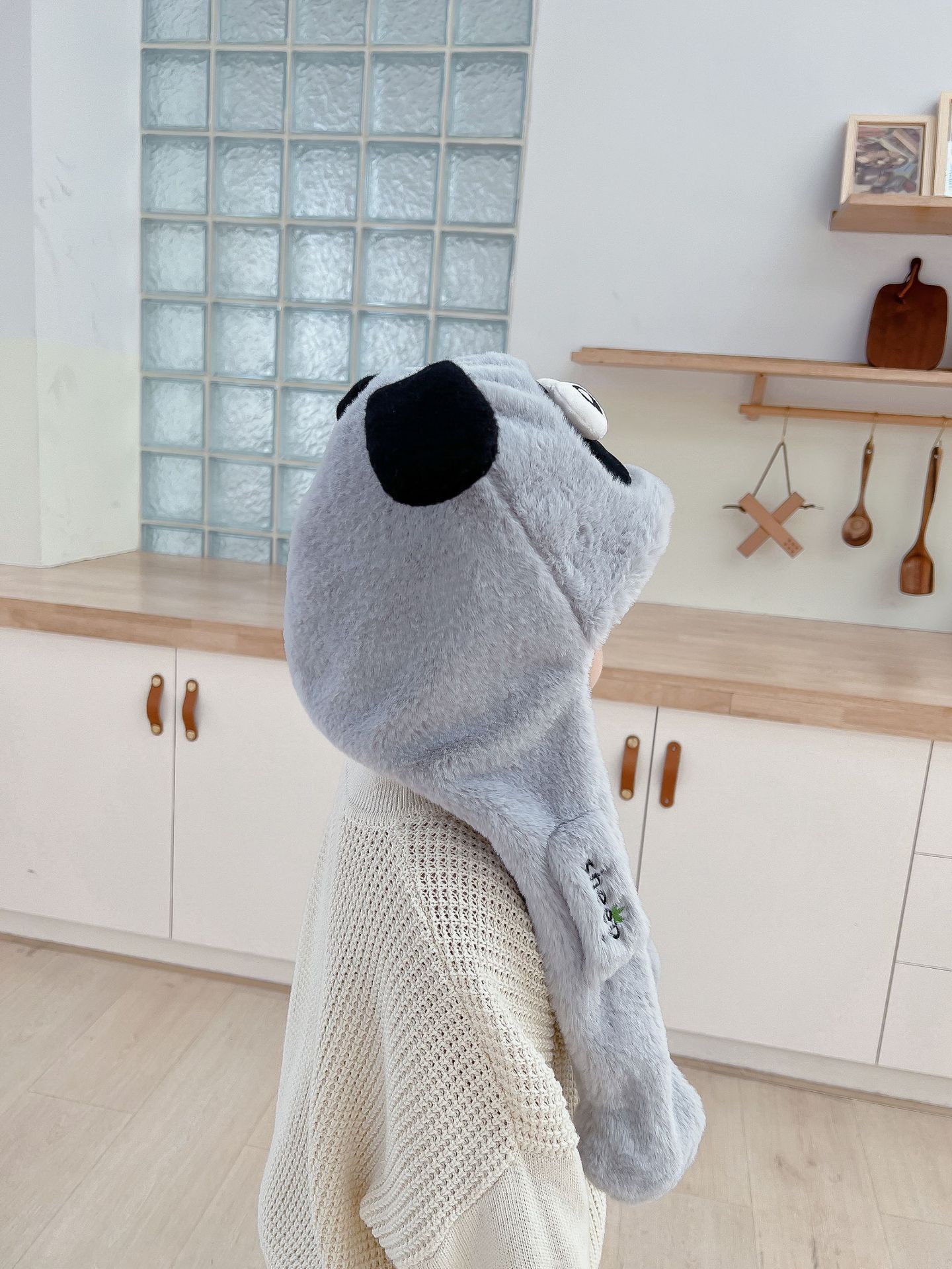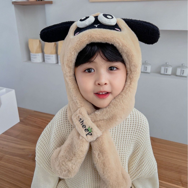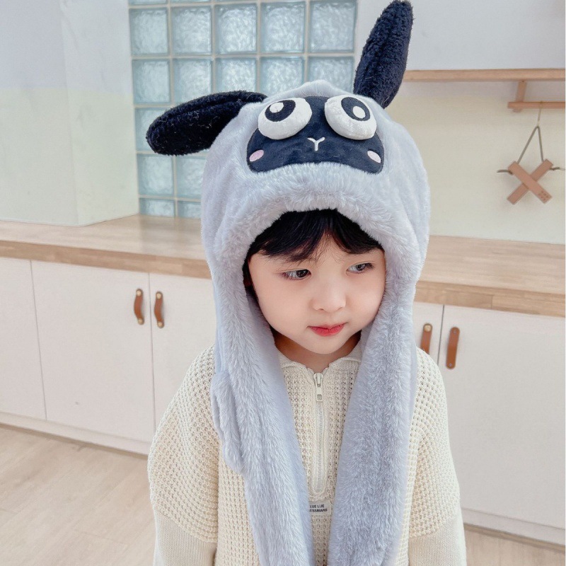 어린이 만화 팬더 푹신한 모자가 귀를 따뜻하게 두껍게 움직이는 여성 귀 보호 캡 스카프 스카프 올인원 모자스토어 가기