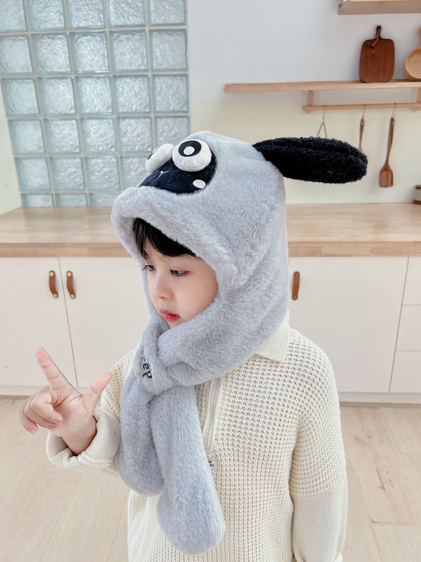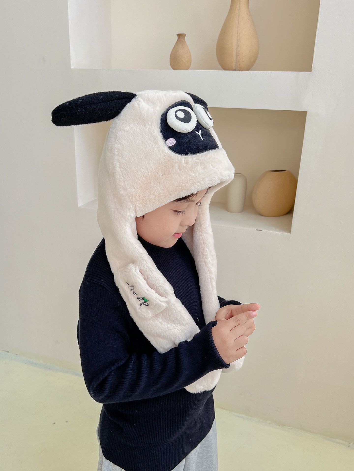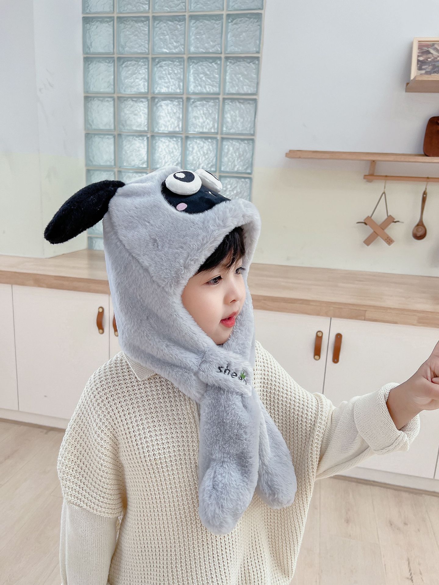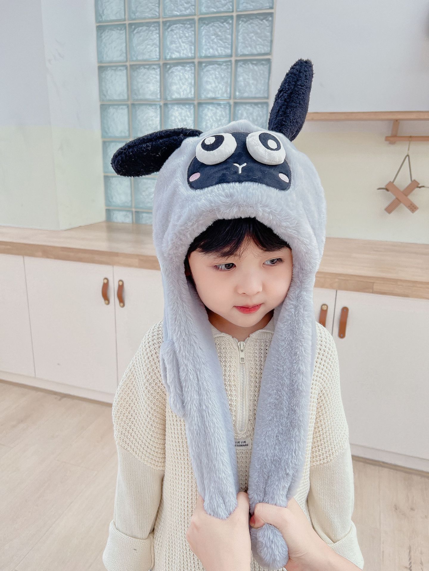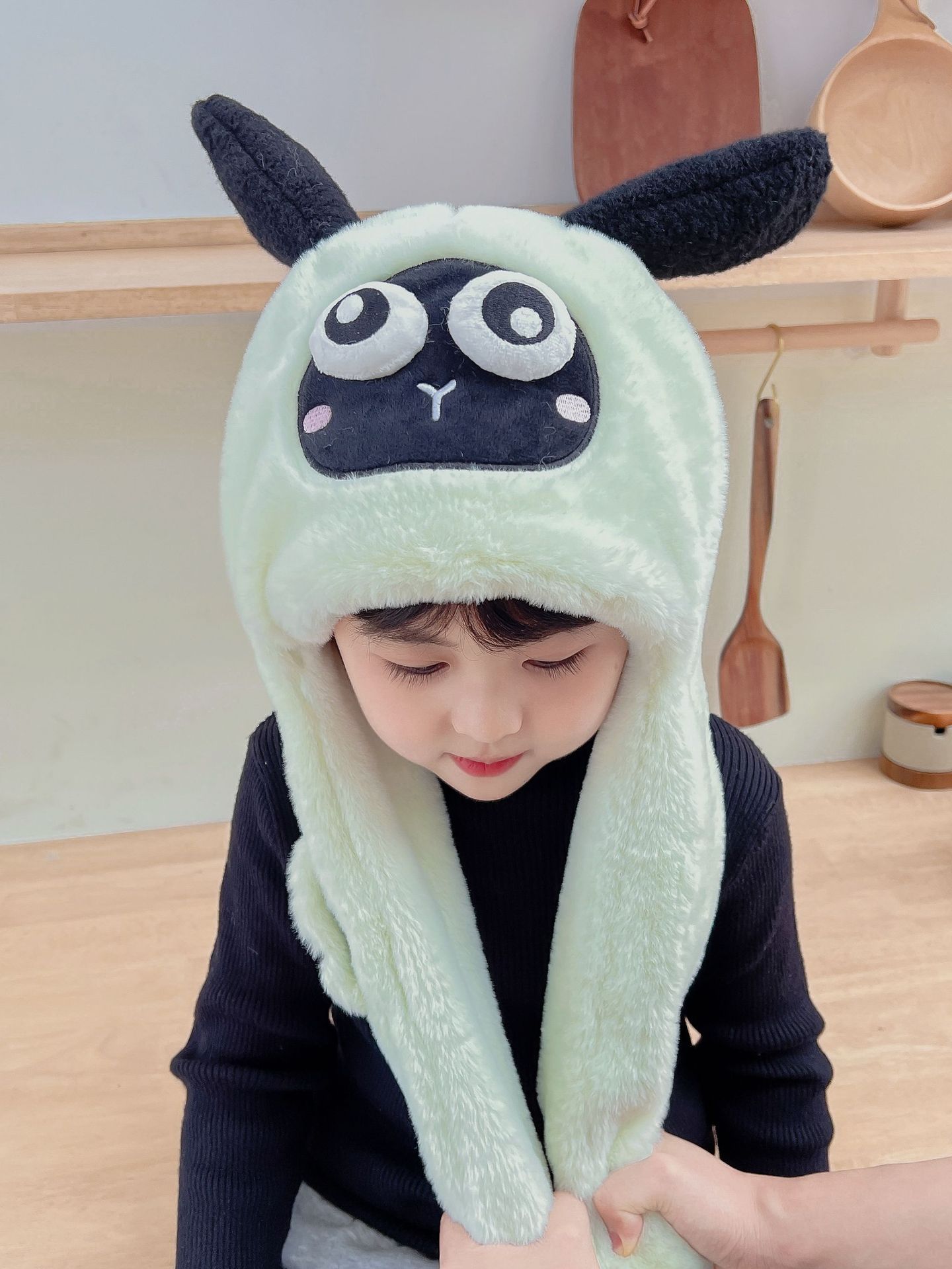 어린이 만화 팬더 푹신한 모자가 귀를 따뜻하게 두껍게 움직이는 여성 귀 보호 캡 스카프 스카프 올인원 모자스토어 가기