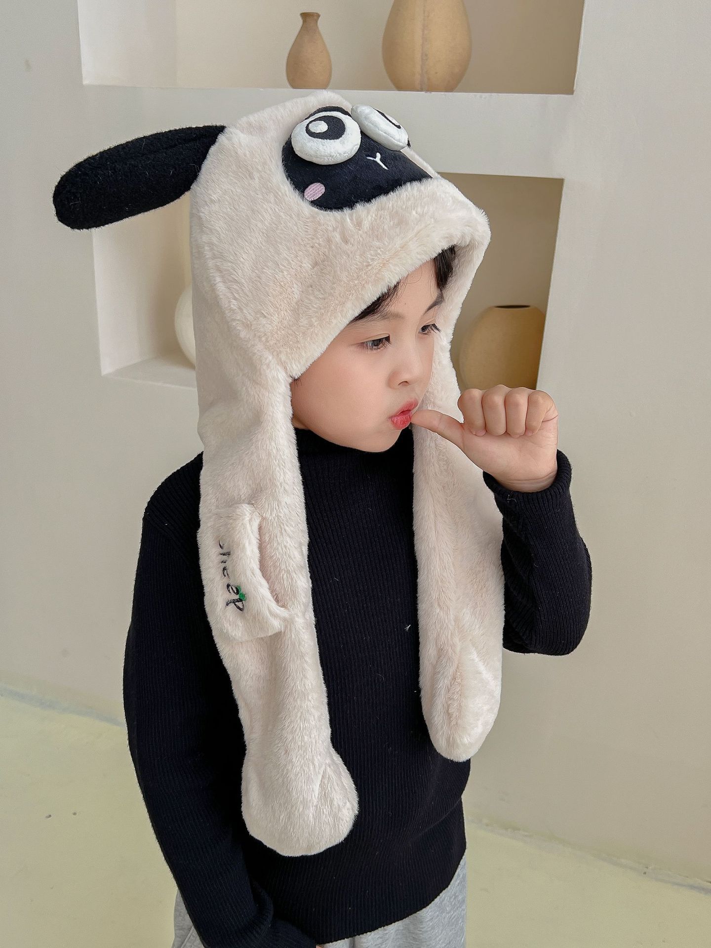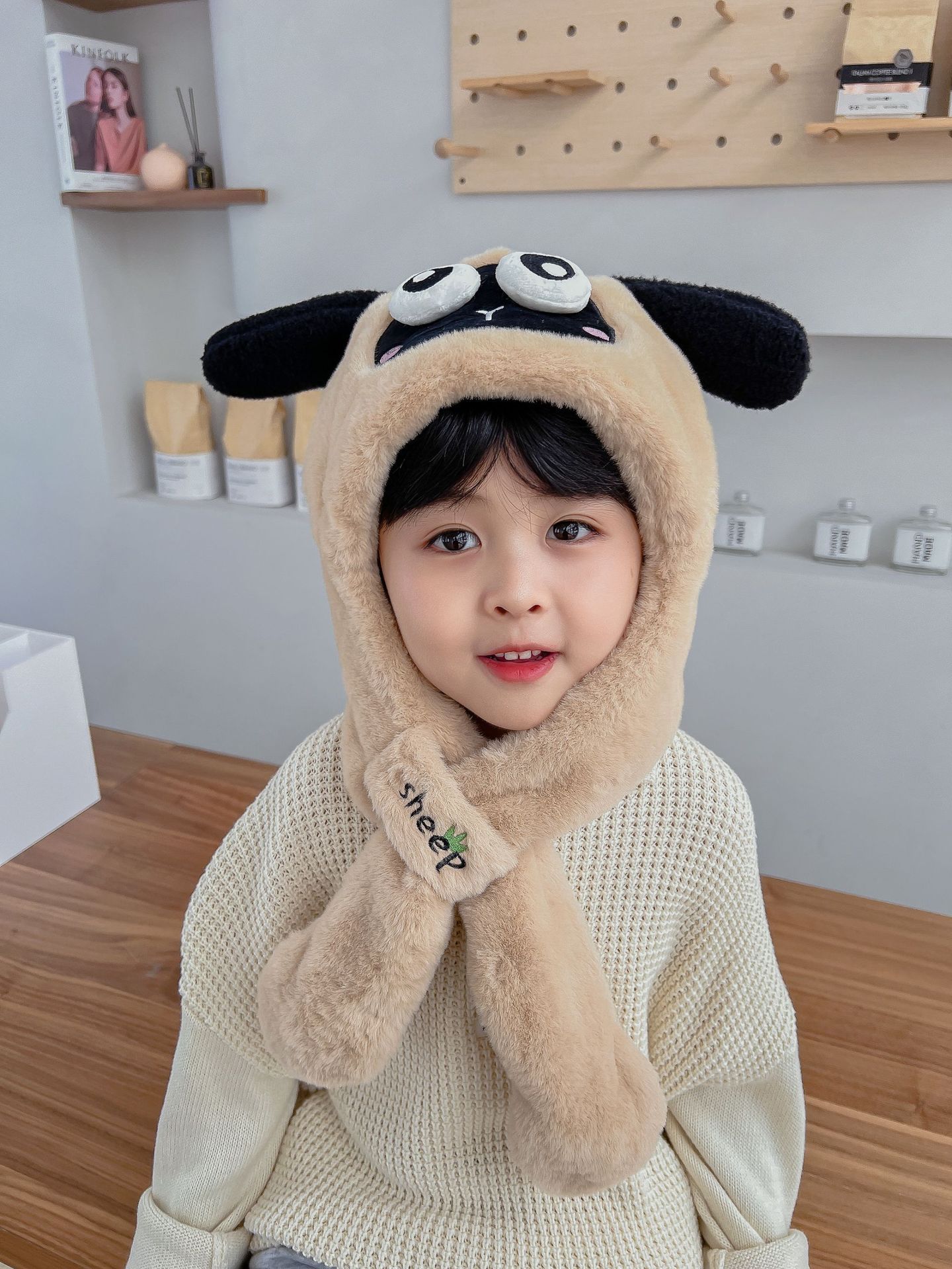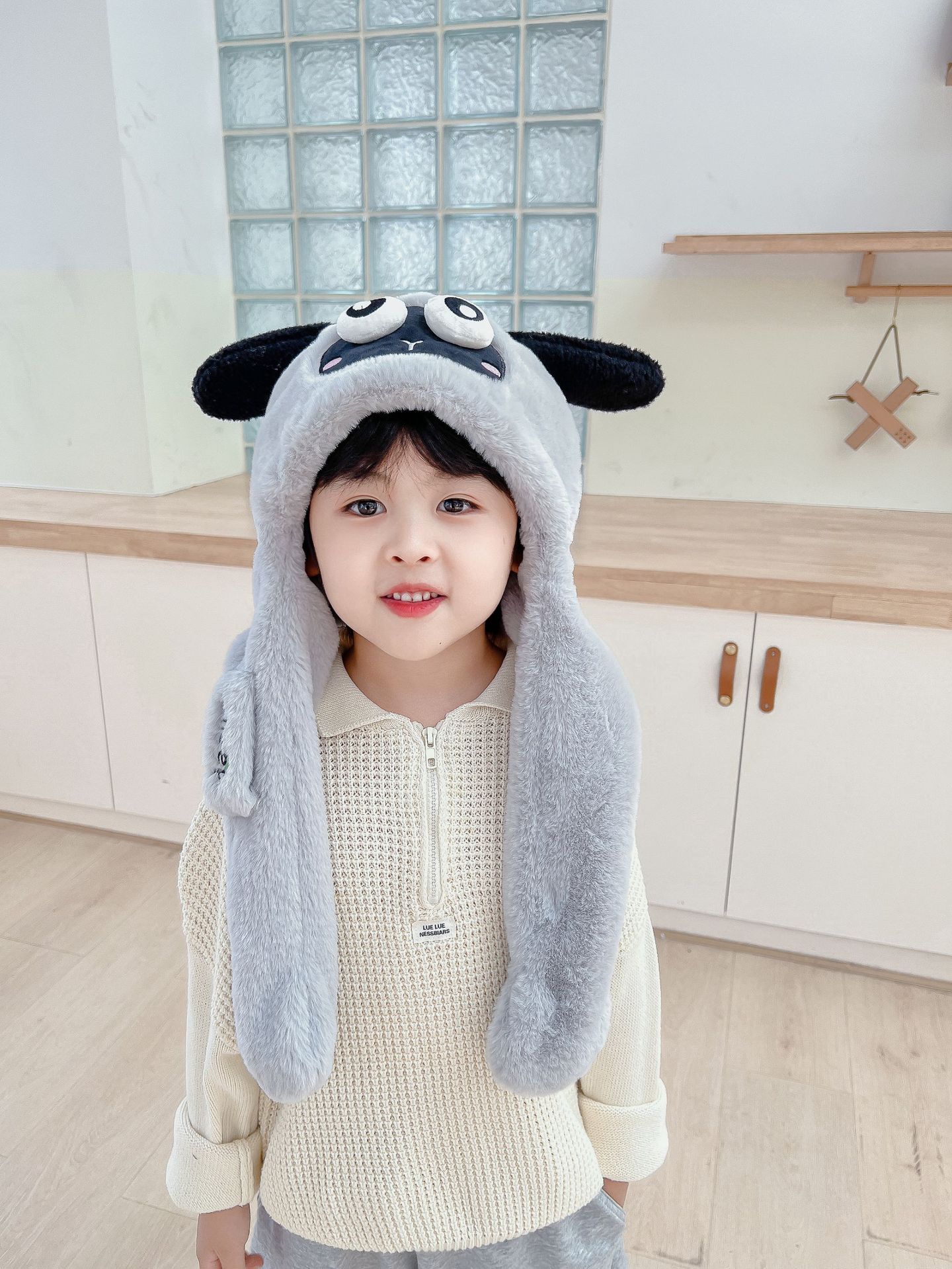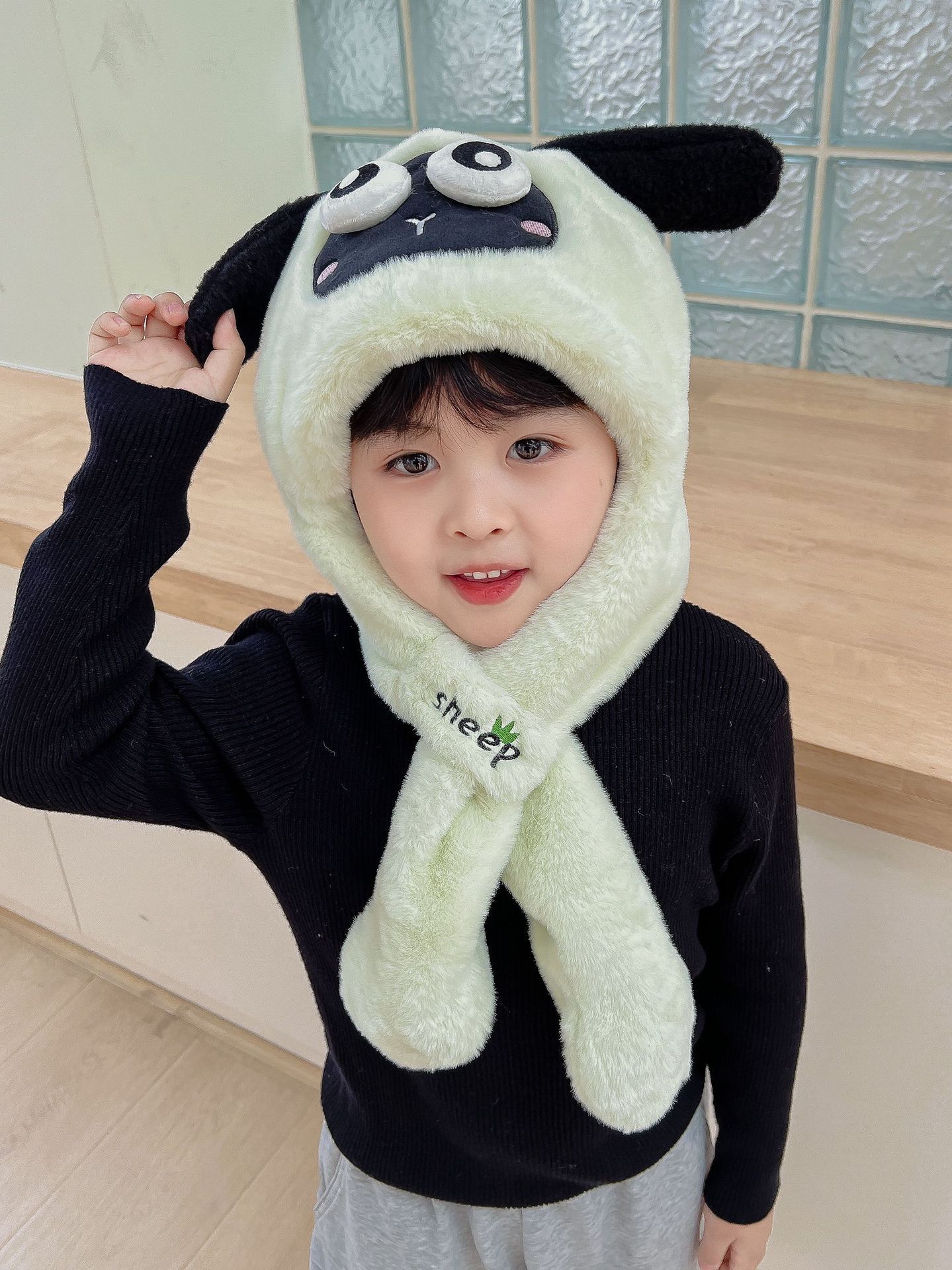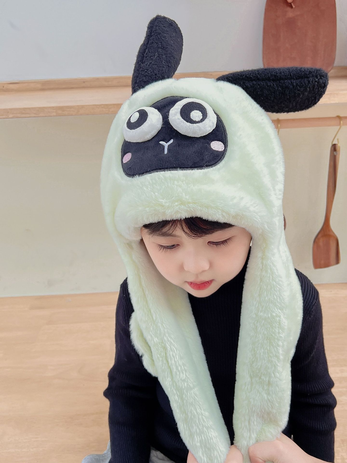 어린이 만화 팬더 푹신한 모자가 귀를 따뜻하게 두껍게 움직이는 여성 귀 보호 캡 스카프 스카프 올인원 모자스토어 가기