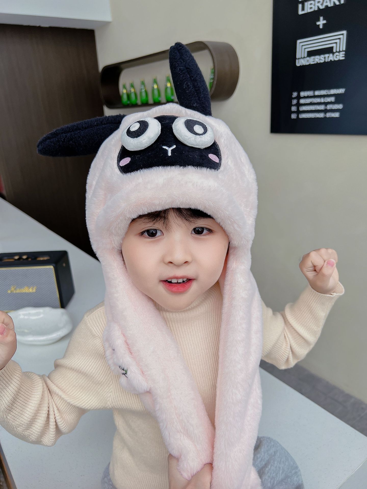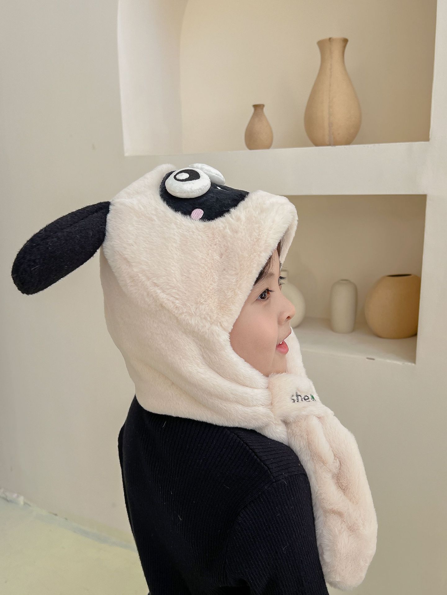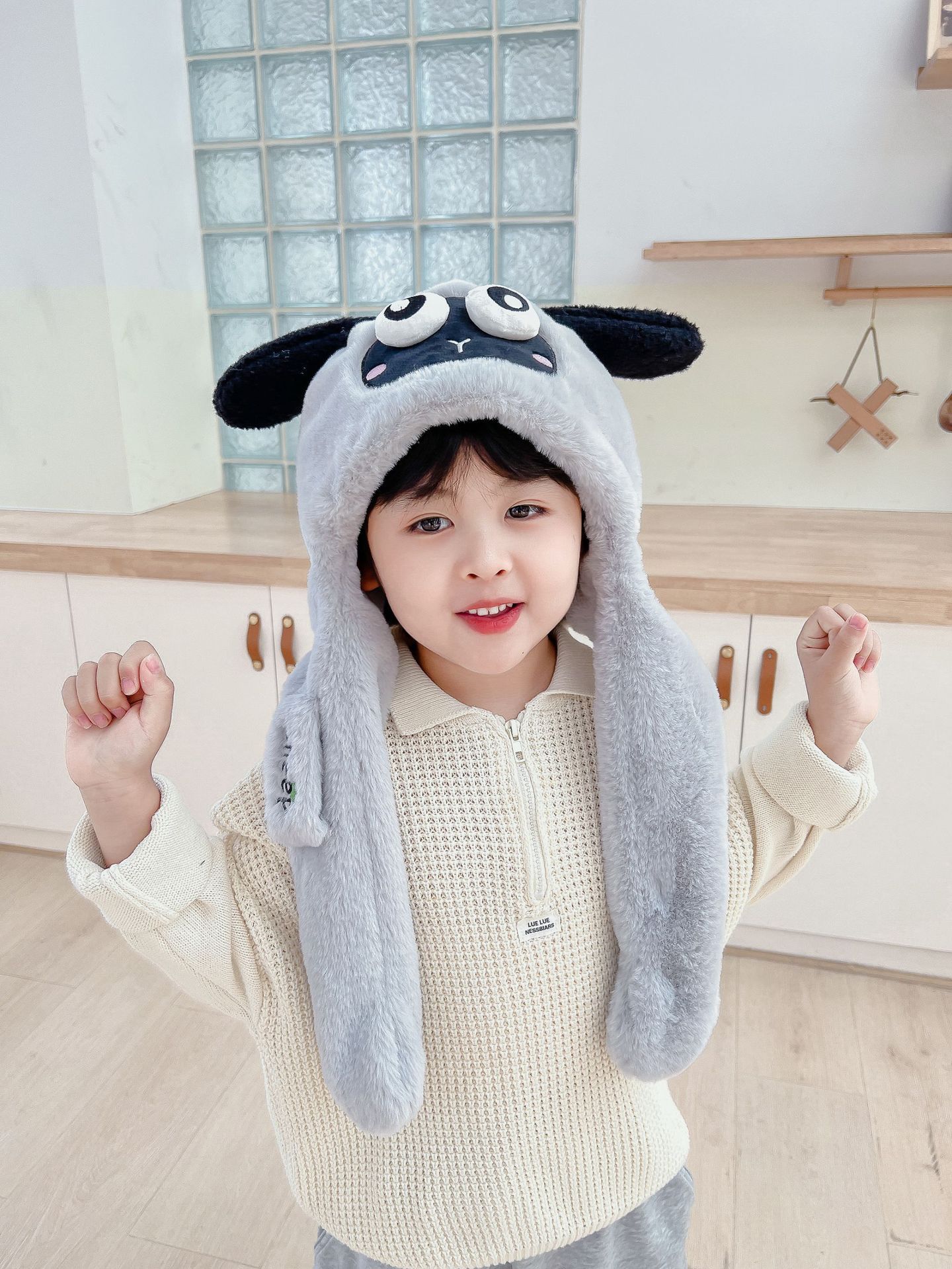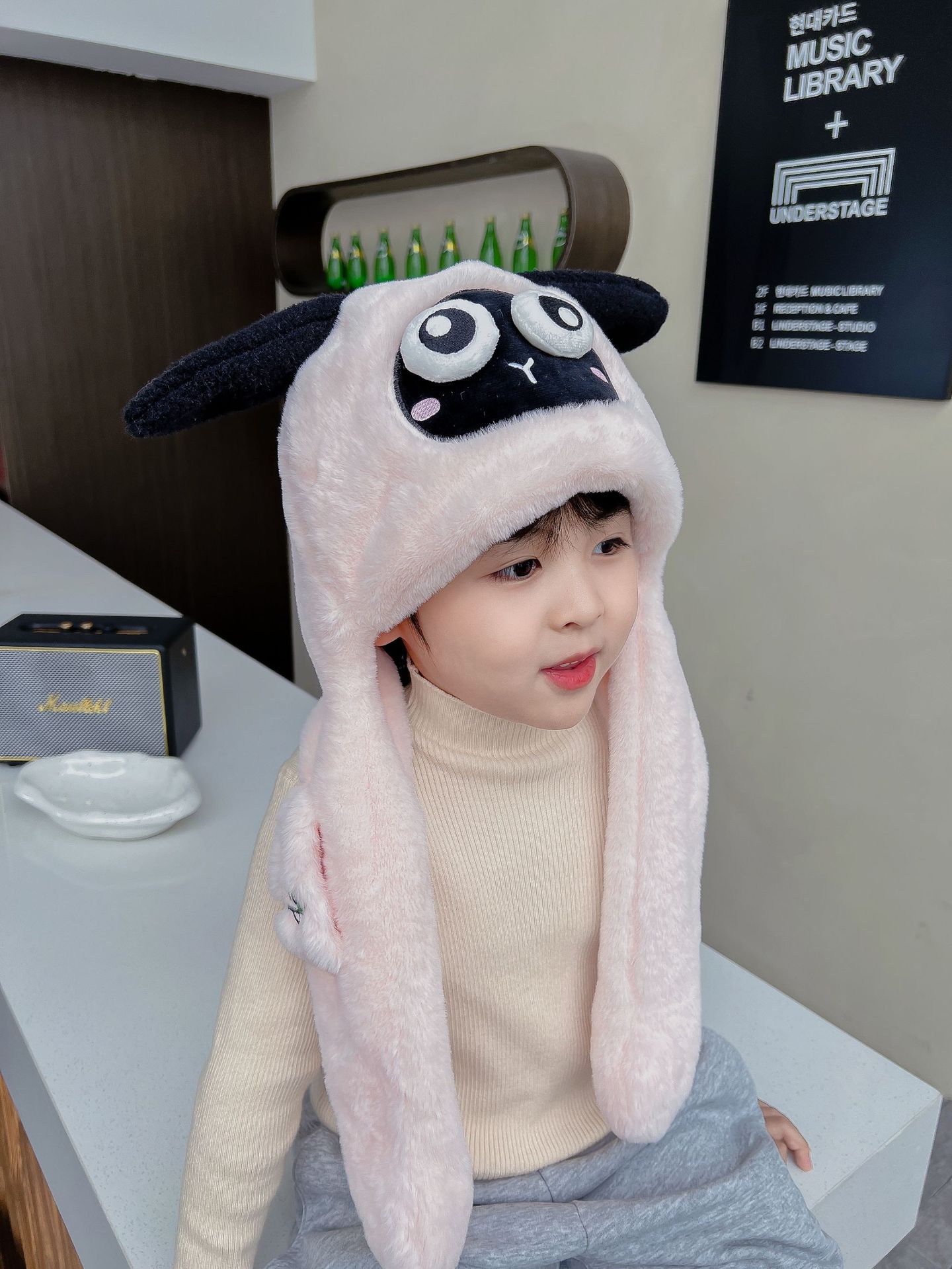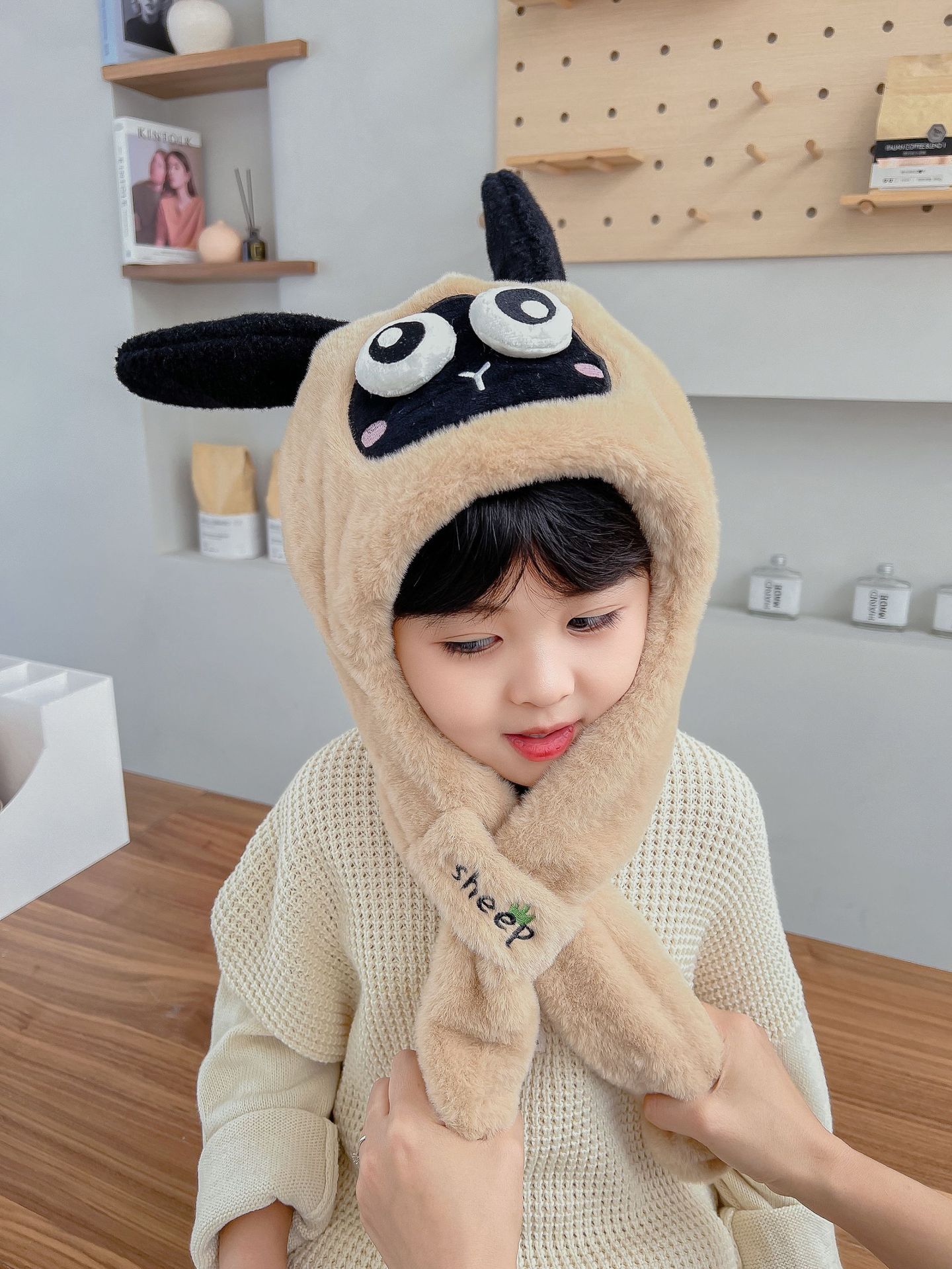 어린이 만화 팬더 푹신한 모자가 귀를 따뜻하게 두껍게 움직이는 여성 귀 보호 캡 스카프 스카프 올인원 모자스토어 가기