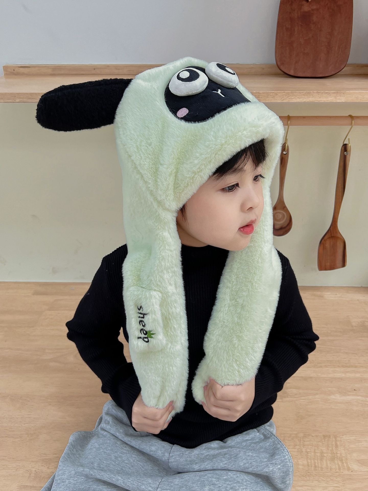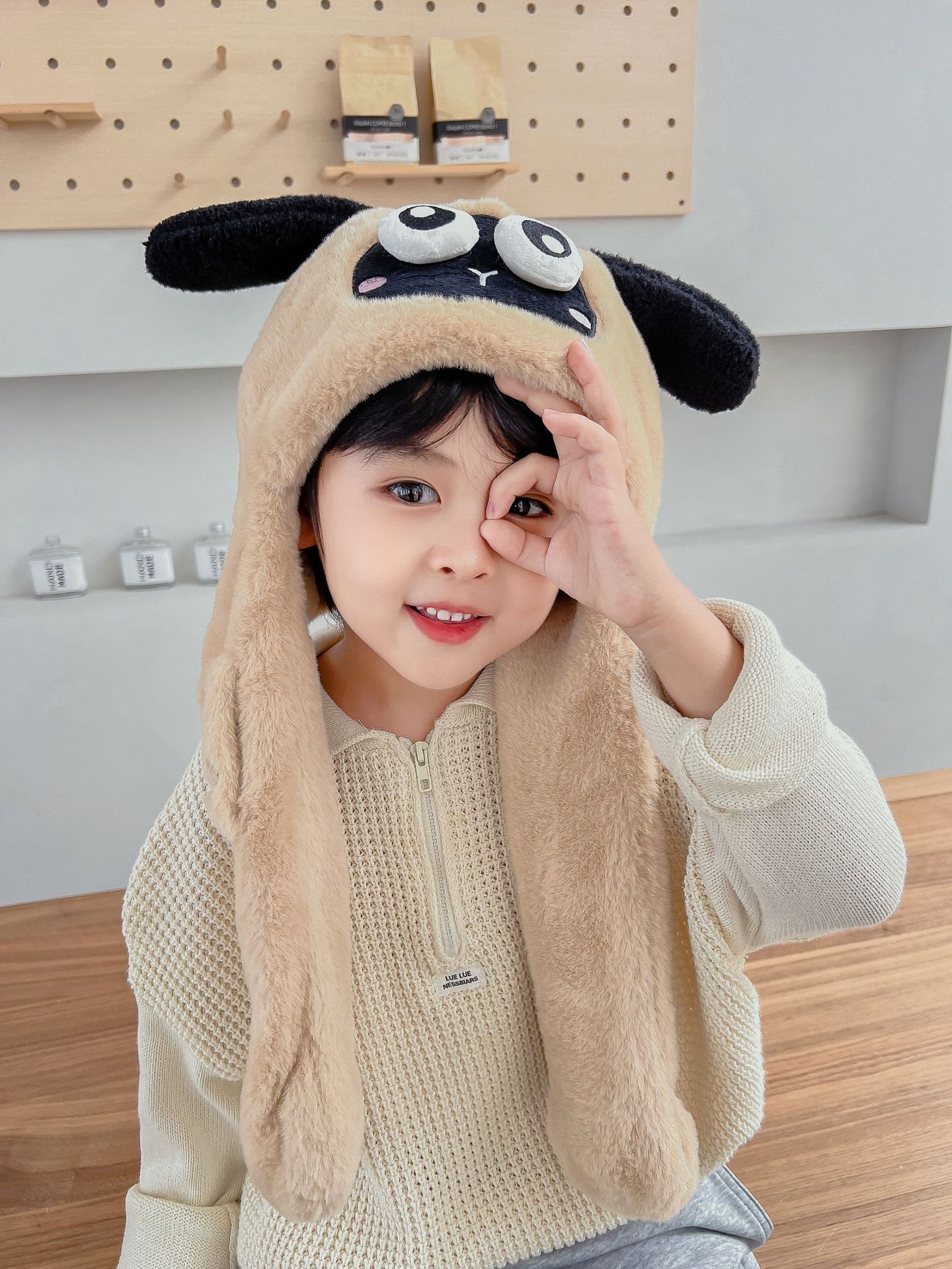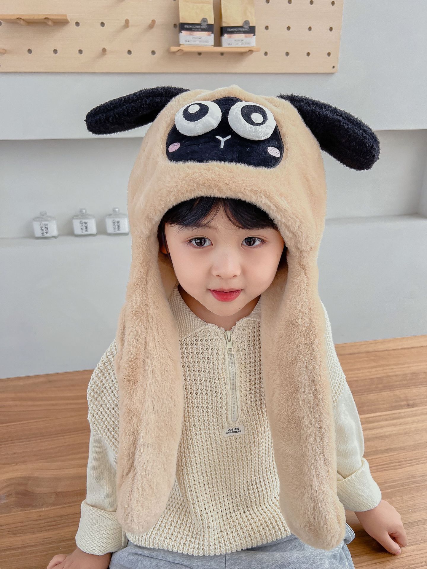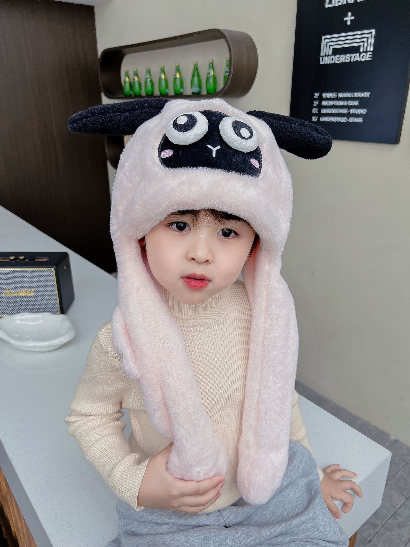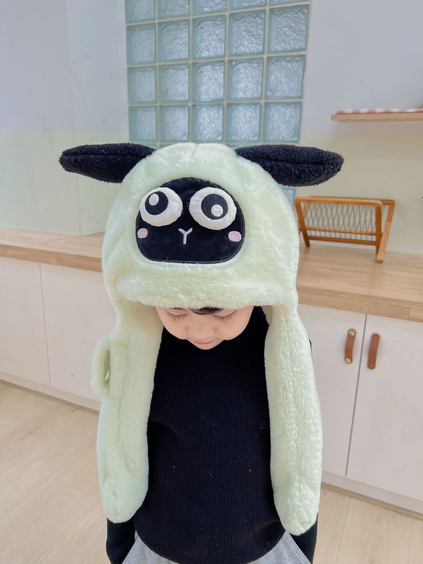 어린이 만화 팬더 푹신한 모자가 귀를 따뜻하게 두껍게 움직이는 여성 귀 보호 캡 스카프 스카프 올인원 모자스토어 가기