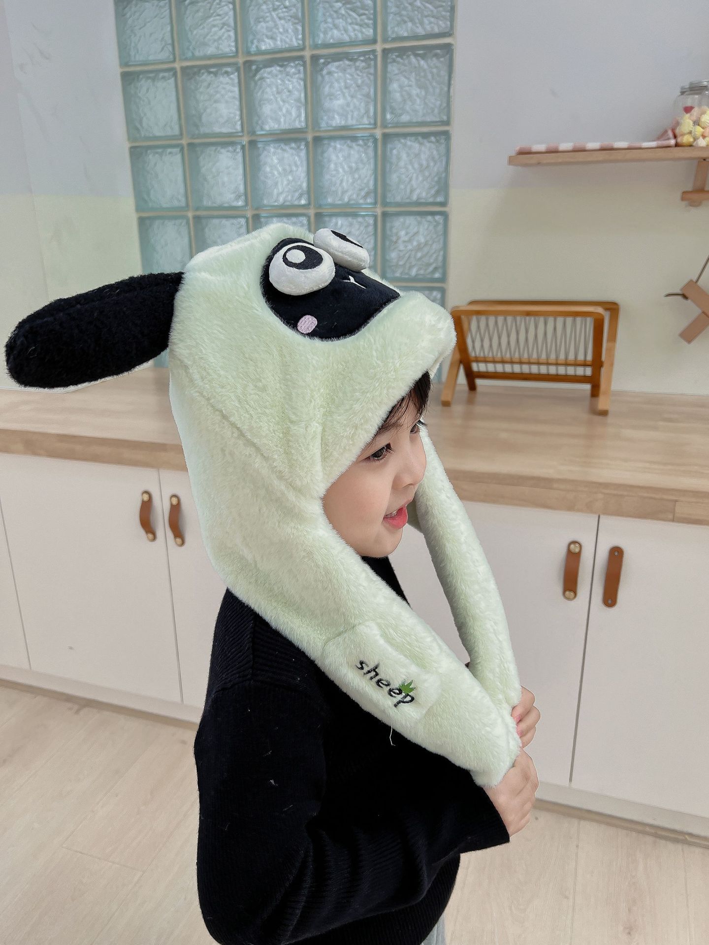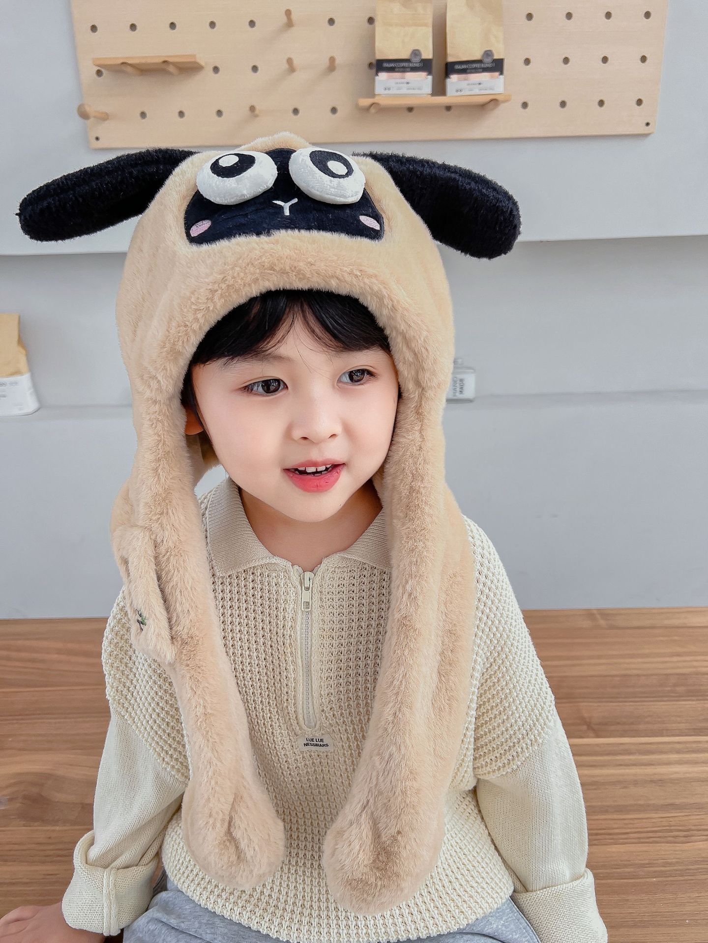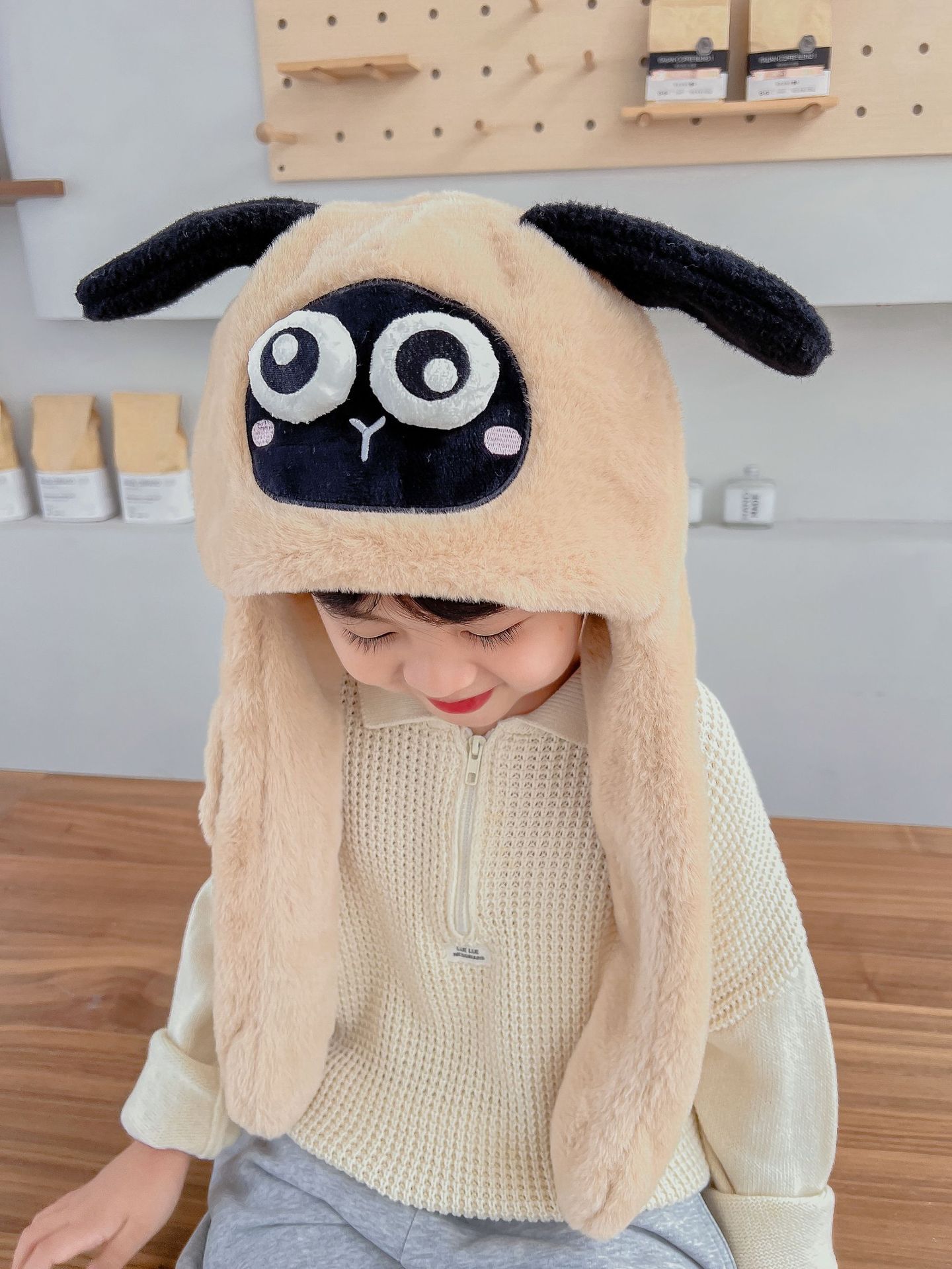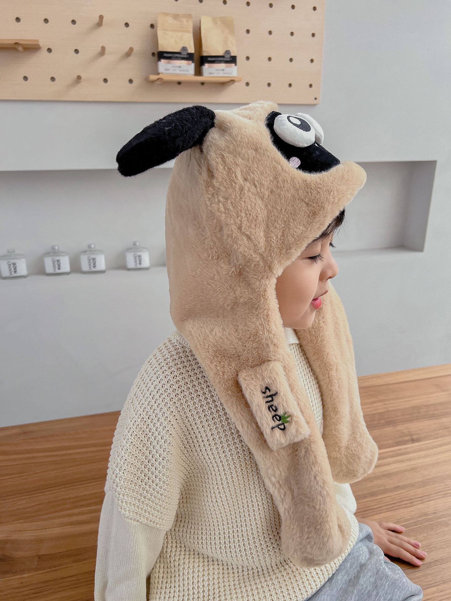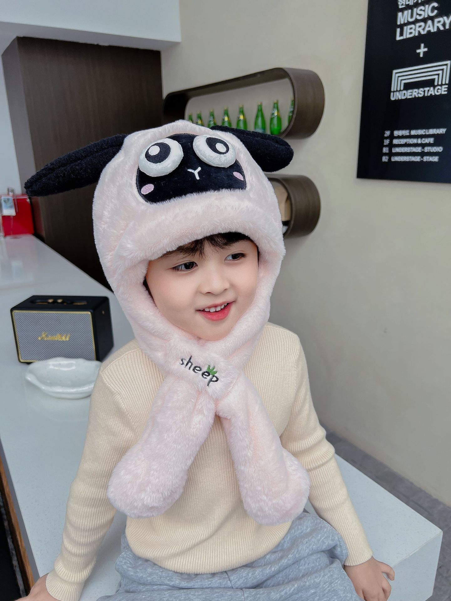 어린이 만화 팬더 푹신한 모자가 귀를 따뜻하게 두껍게 움직이는 여성 귀 보호 캡 스카프 스카프 올인원 모자스토어 가기