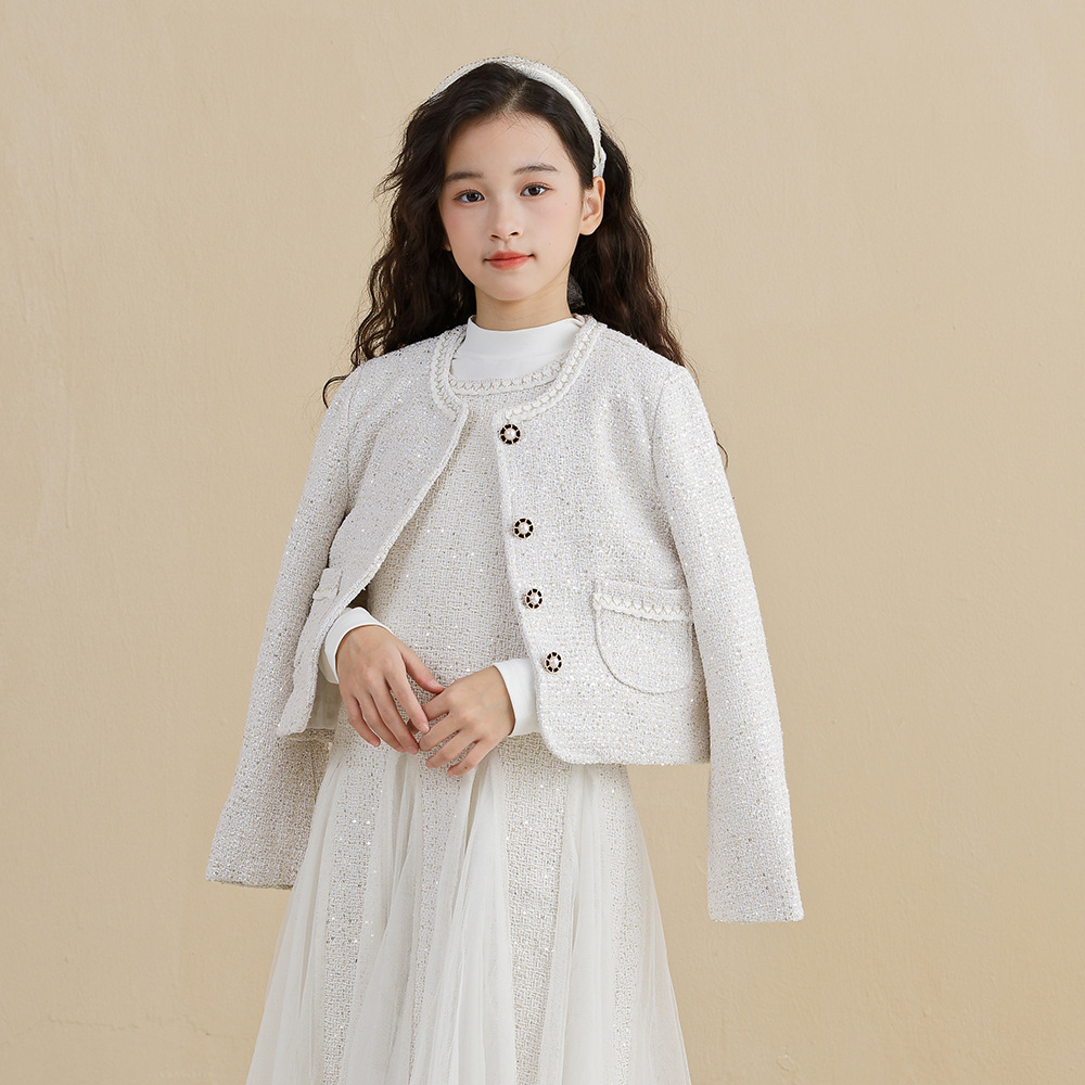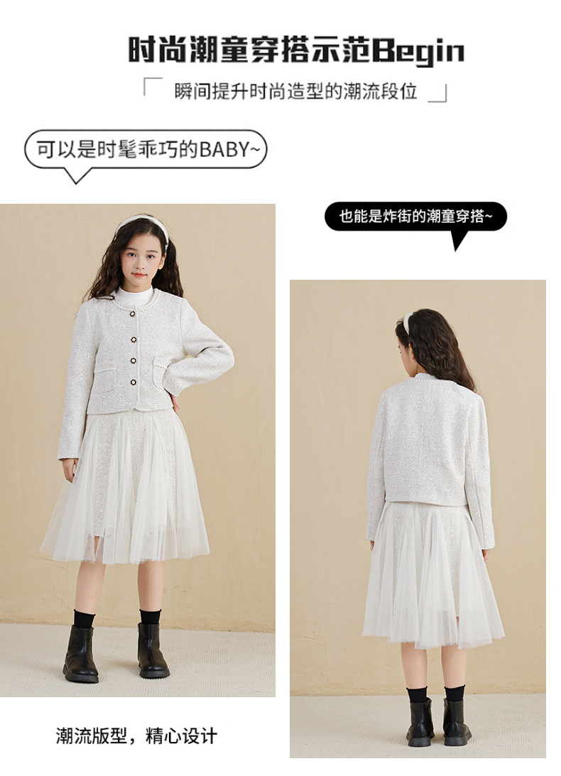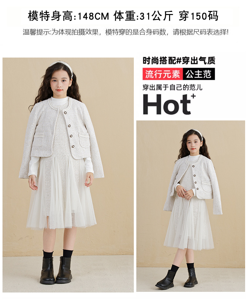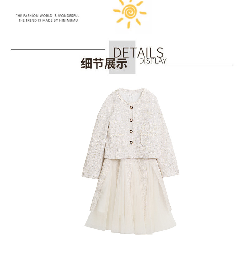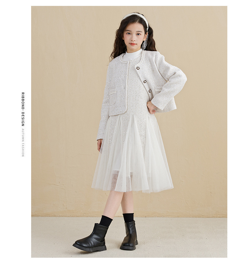 작은 샤넬 스타일 메쉬 카미솔 원피스 새로운 중국 스타일 우아한 작은 소녀 작은 샤넬 스타일 코트 원피스 세트스토어 가기
