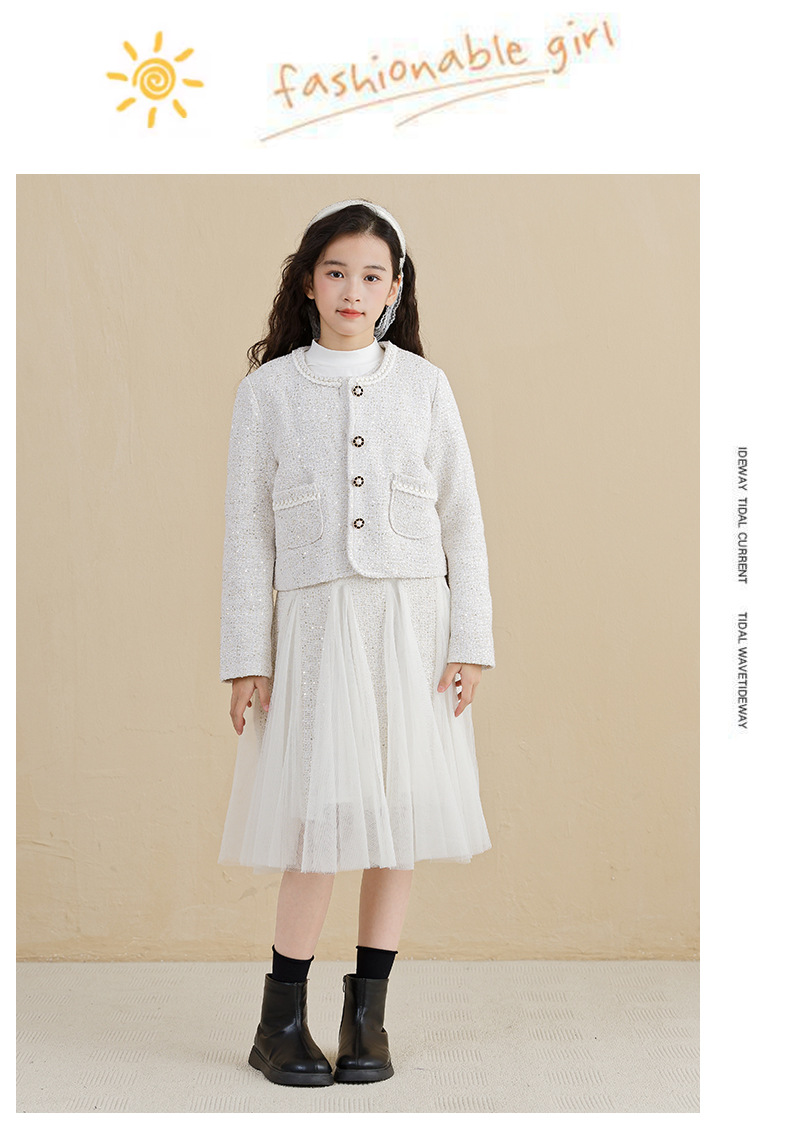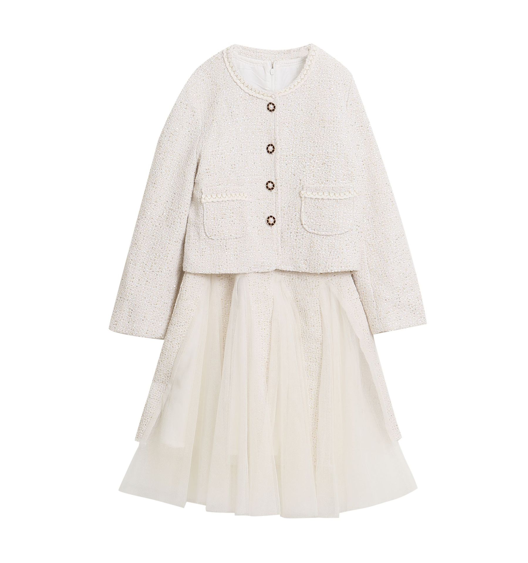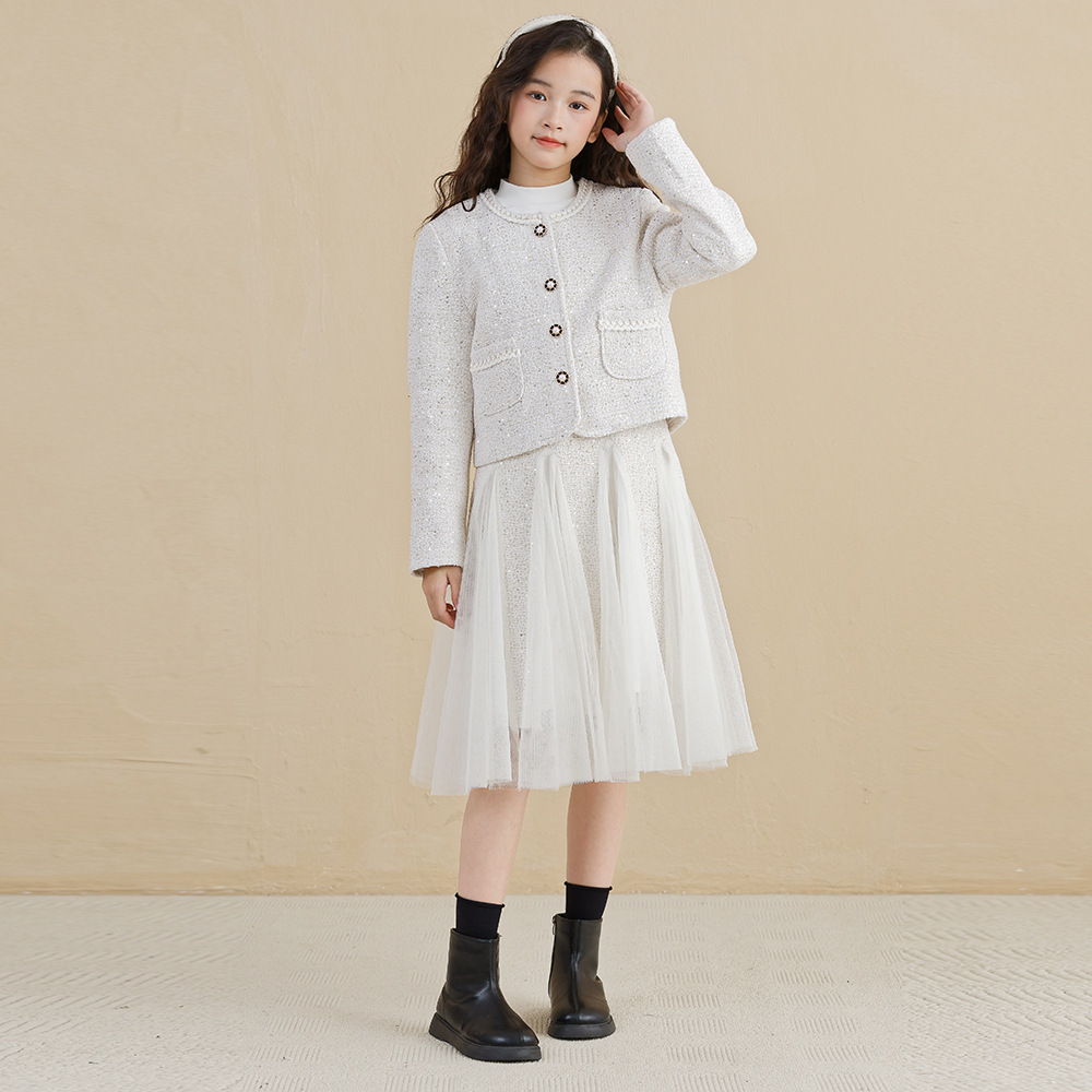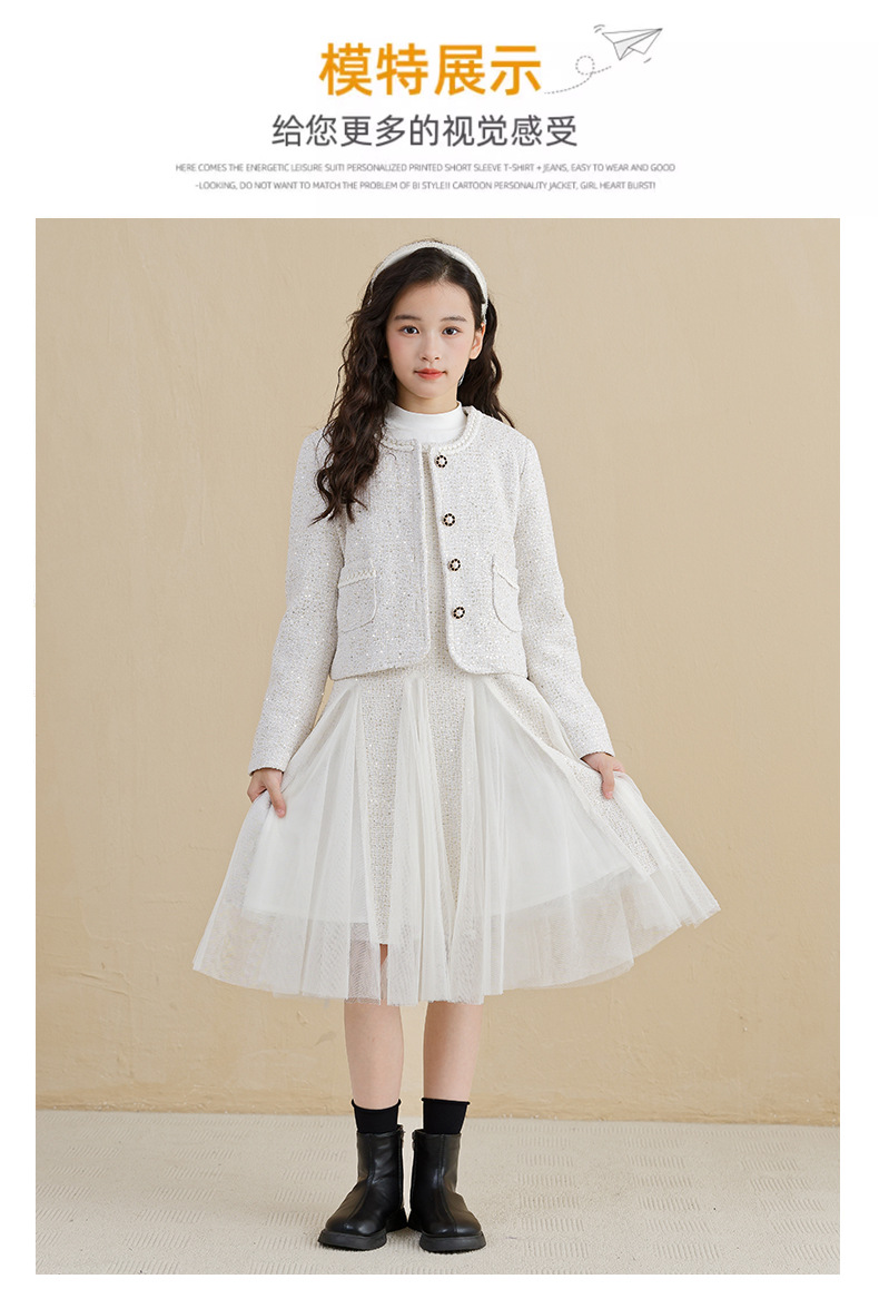 작은 샤넬 스타일 메쉬 카미솔 원피스 새로운 중국 스타일 우아한 작은 소녀 작은 샤넬 스타일 코트 원피스 세트스토어 가기