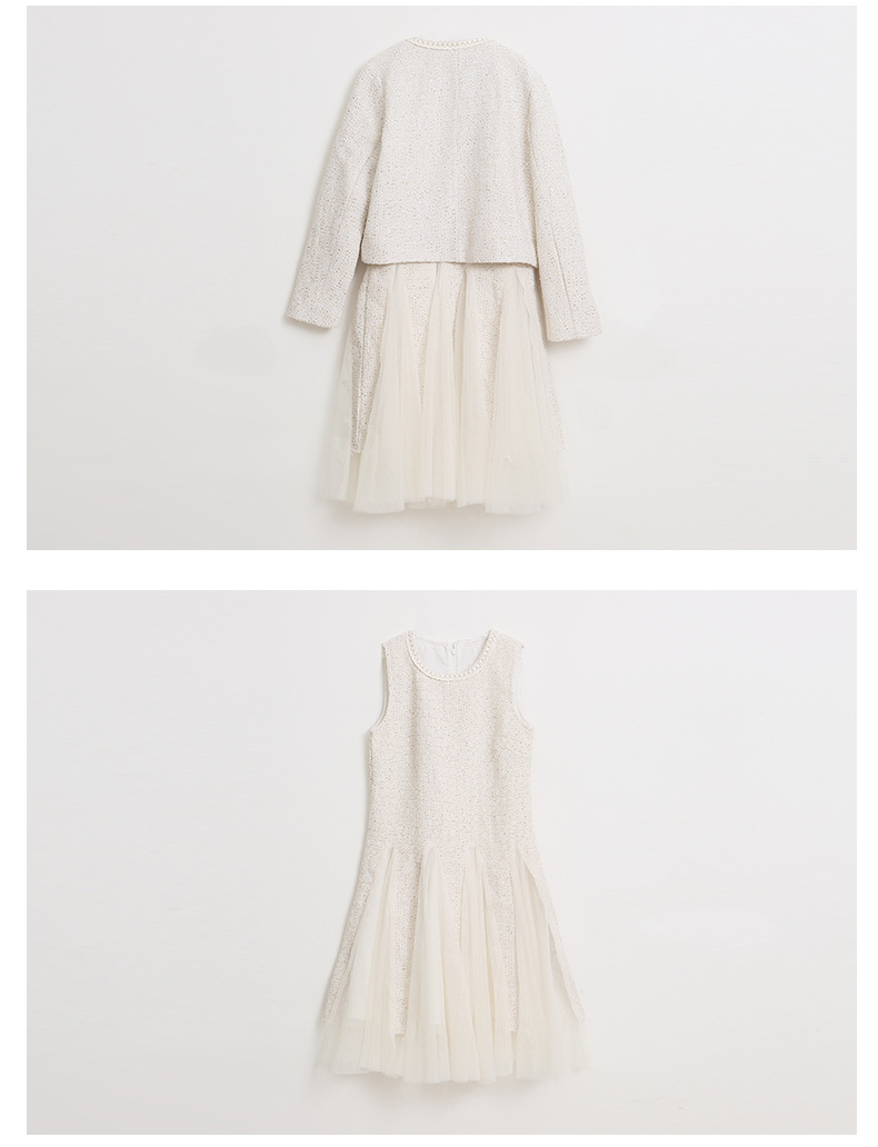 작은 샤넬 스타일 메쉬 카미솔 원피스 새로운 중국 스타일 우아한 작은 소녀 작은 샤넬 스타일 코트 원피스 세트
