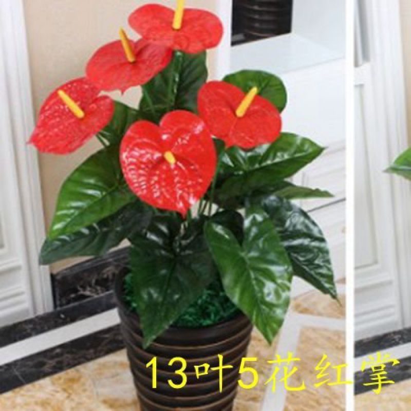 • ❣❥꽃 5개, 잎 13개, 안스리움 + 풀이 있는 화분 세트❥❣