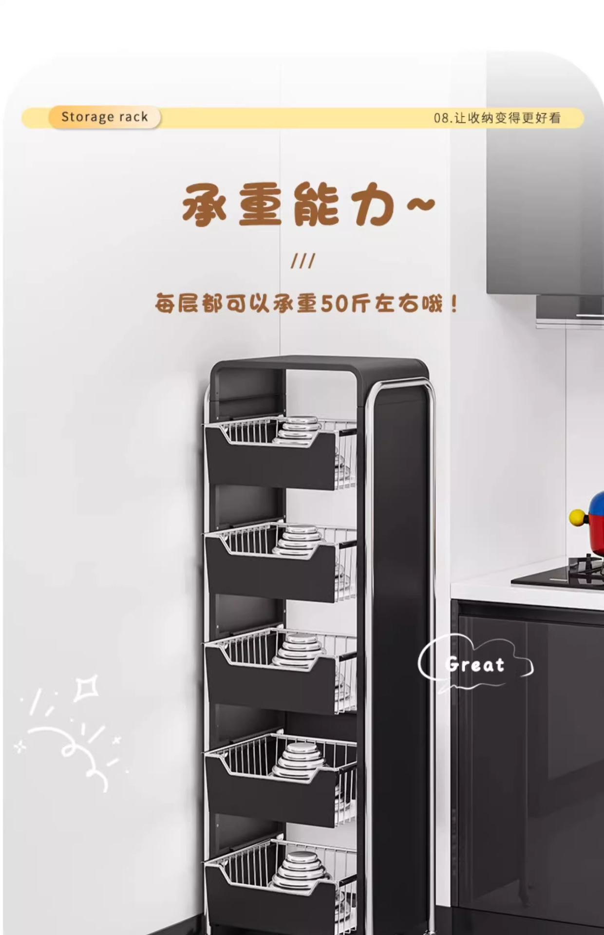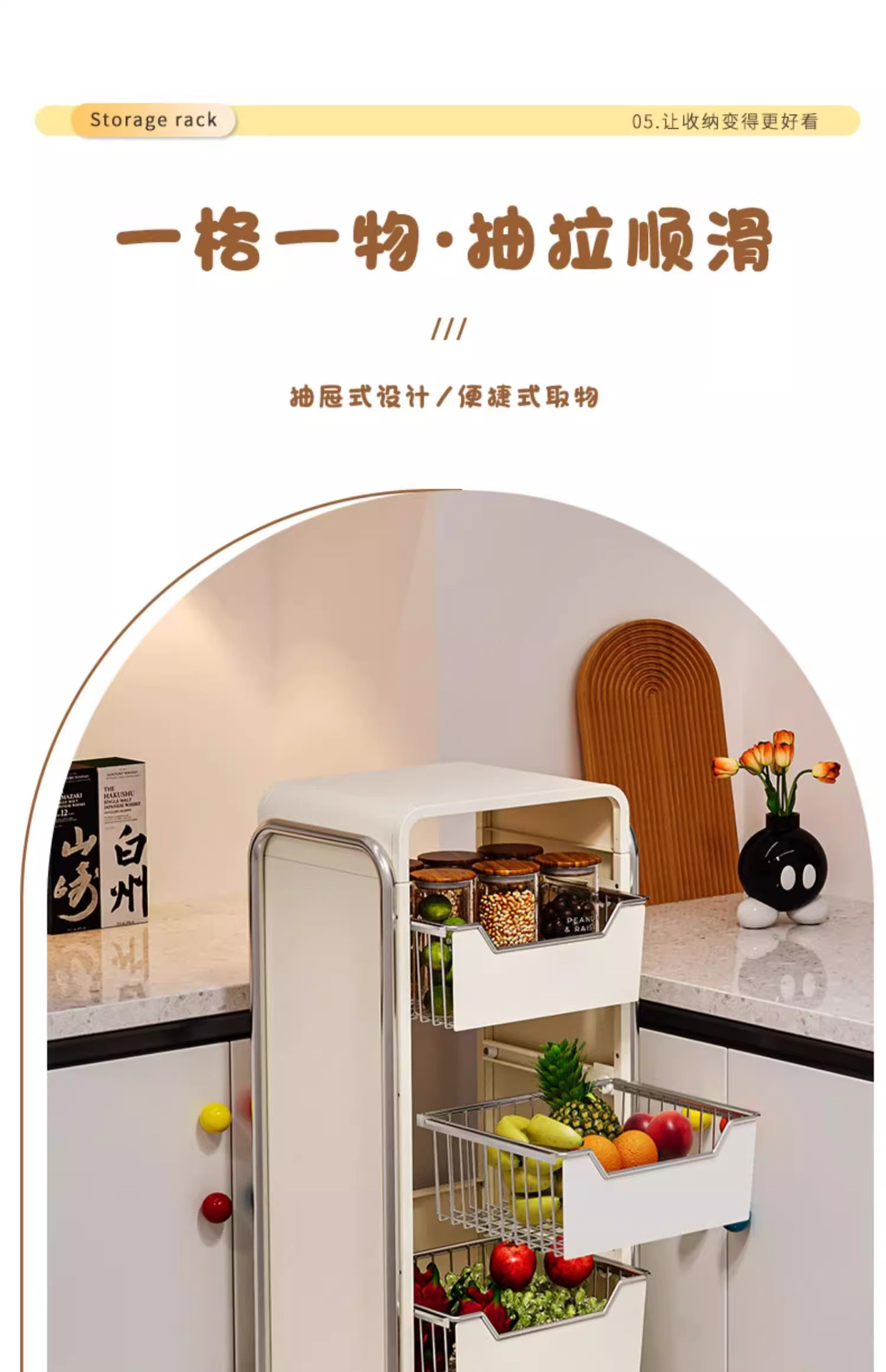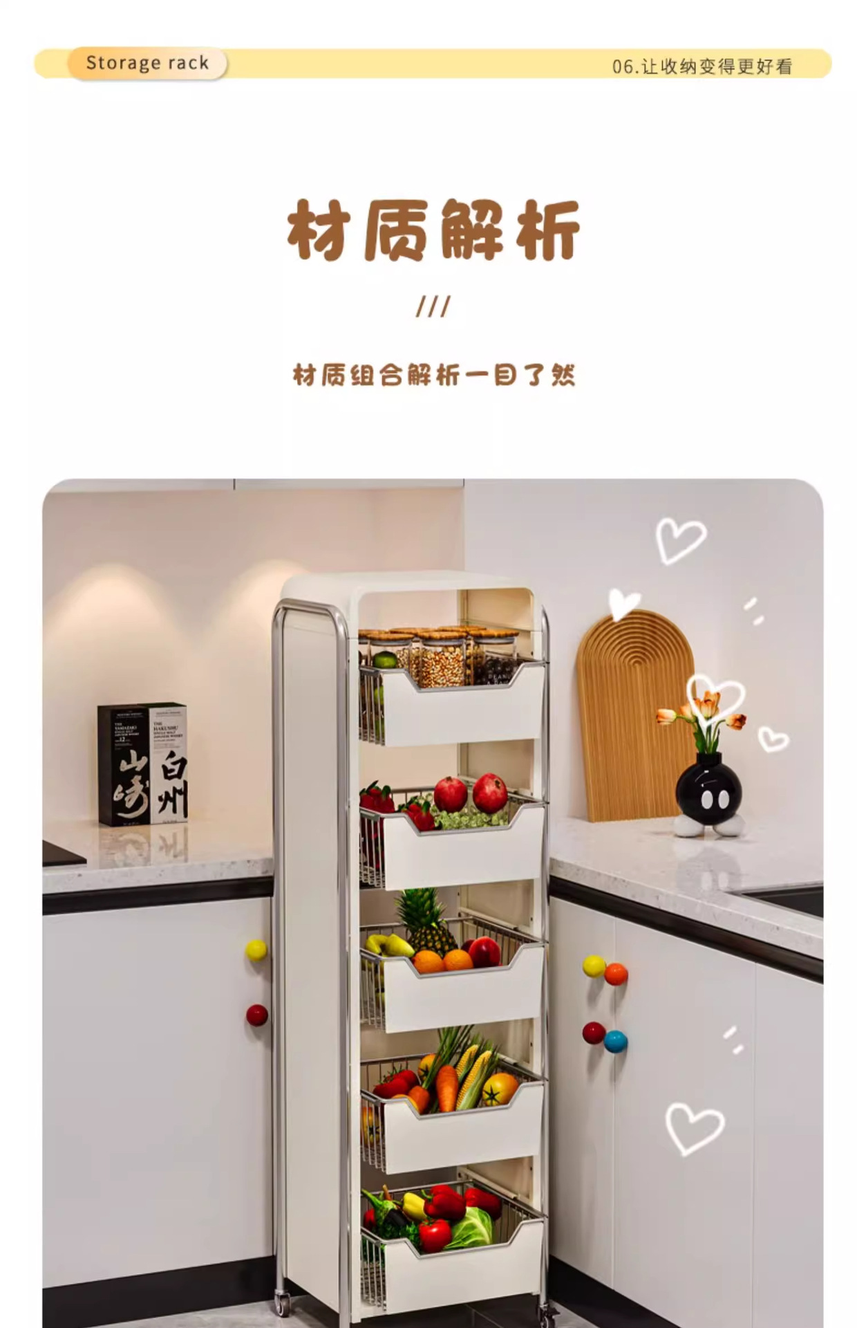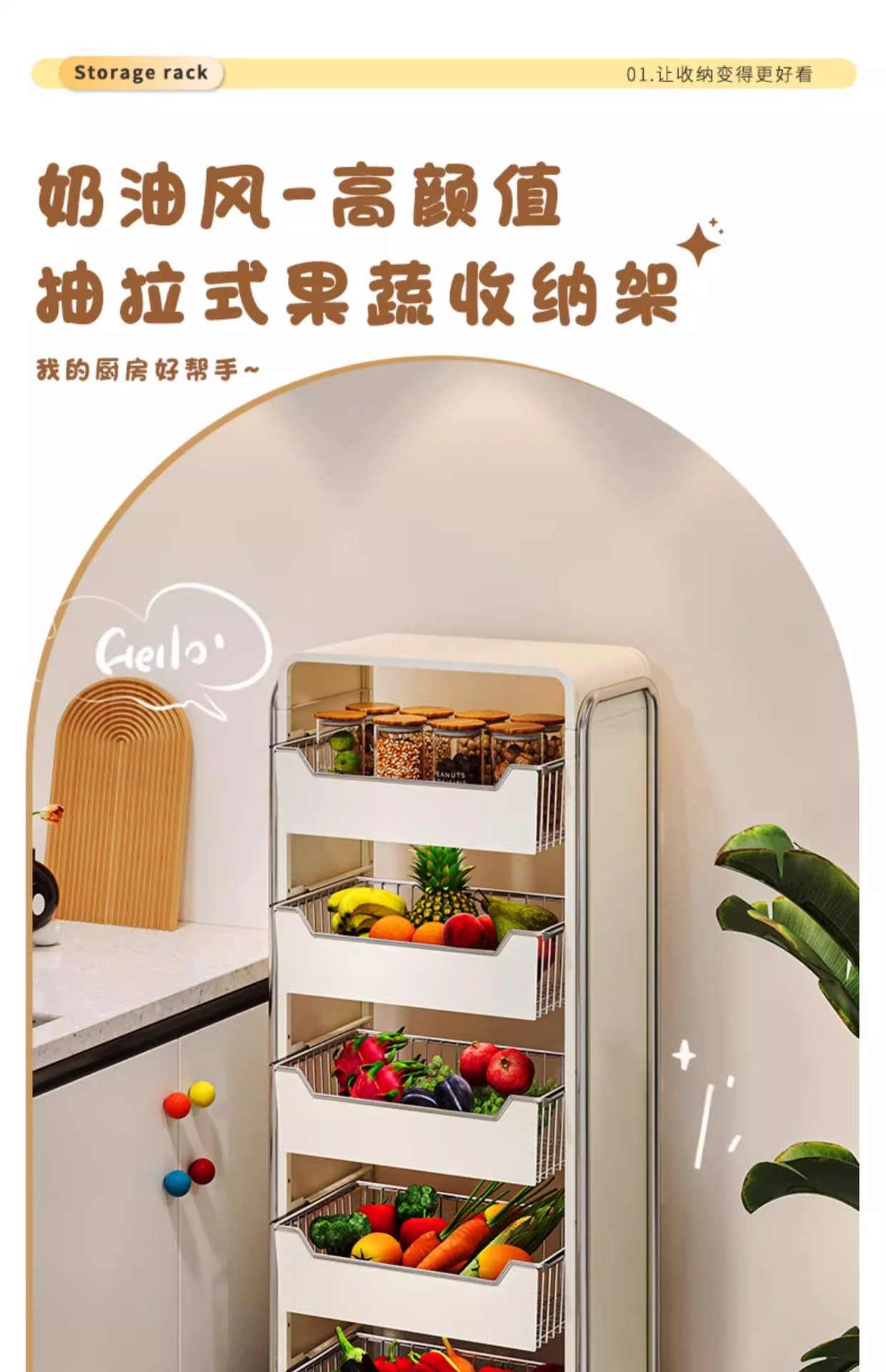 주방 야채 저장 랙 바닥 다층 가정용 과일 저장 바구니 다기능 풀아웃 저장 캐비닛 트롤리