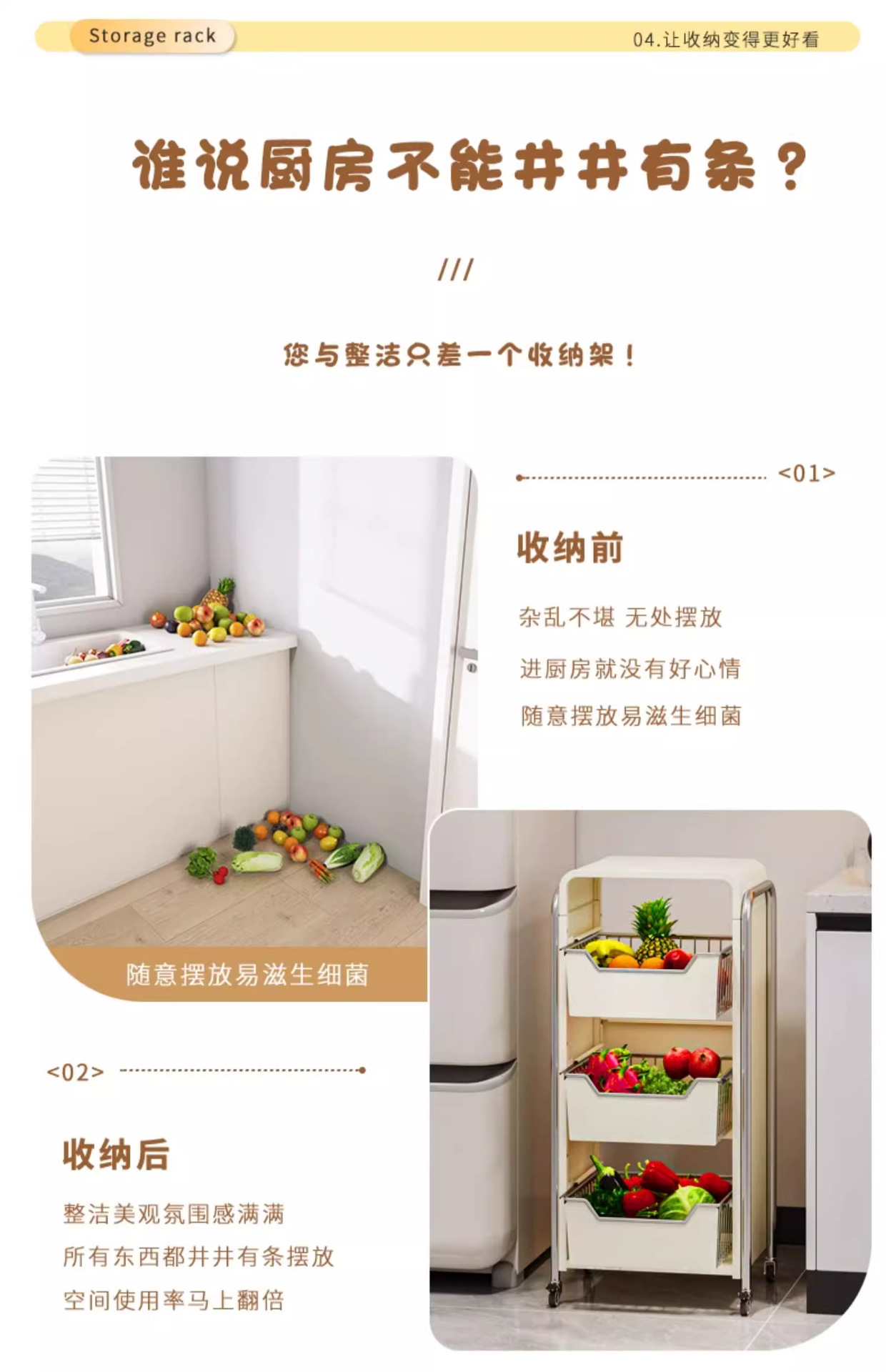 • M523-오프화이트 3단 야채선반 가로 43.2 깊이 30 높이 84cm