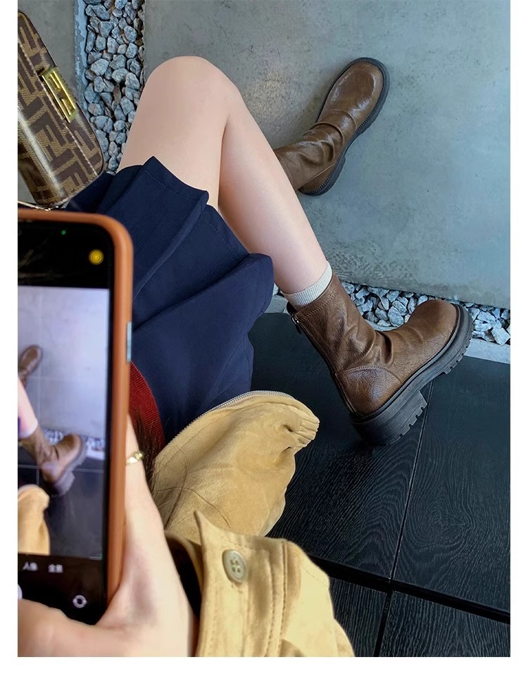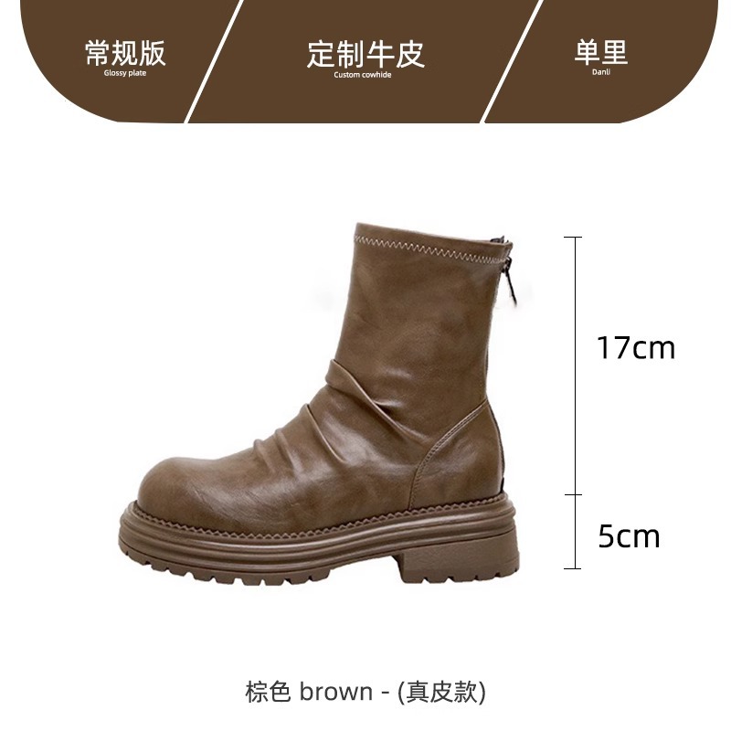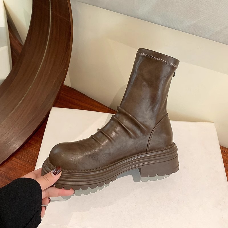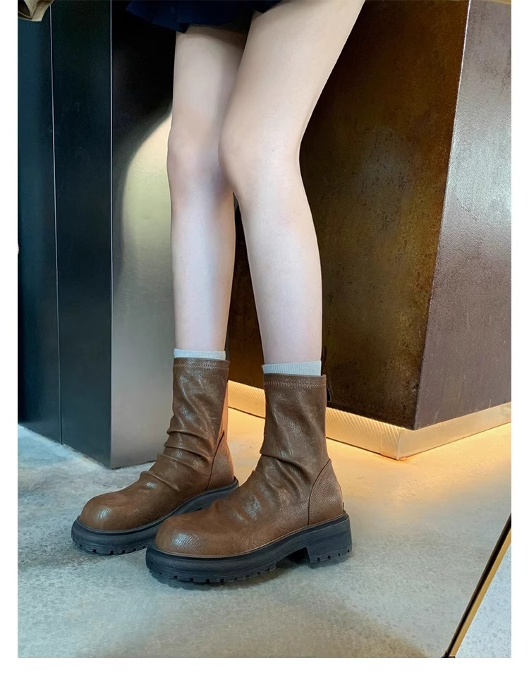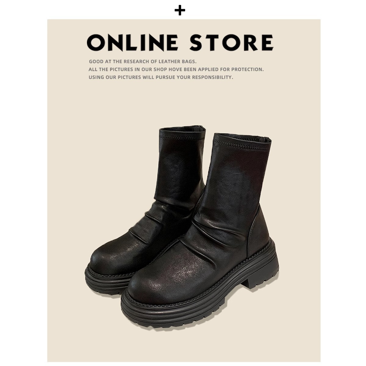 마틴 부츠 여성용 2025 가을 겨울 신상 영국 스타일 두꺼운 굽 신축성 있는 주름 슬림 숏부츠 중간 길이 부츠 플랫스토어 가기