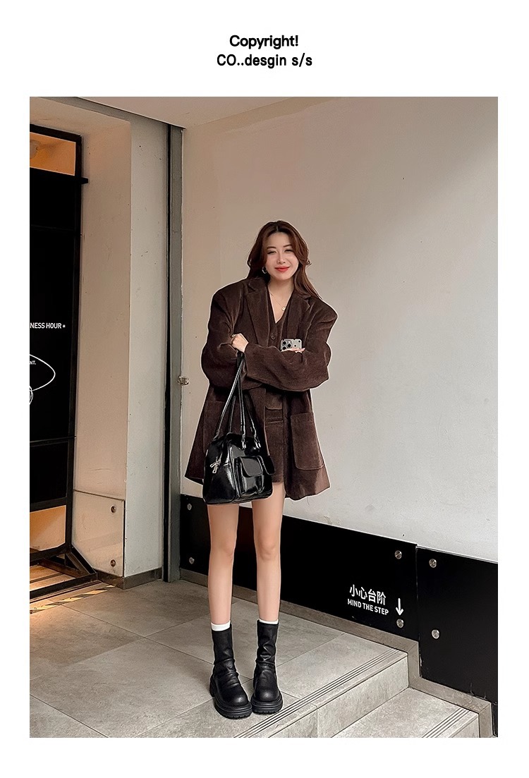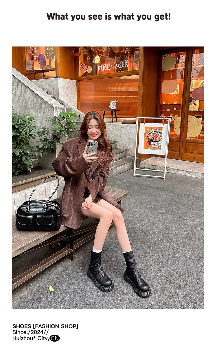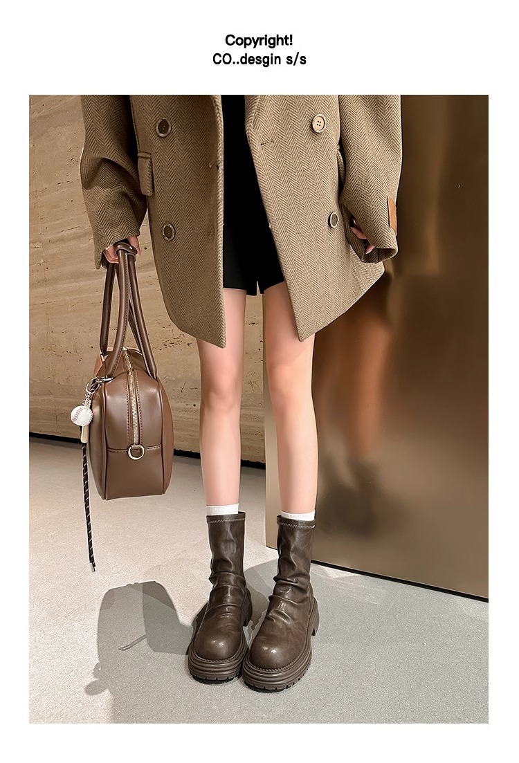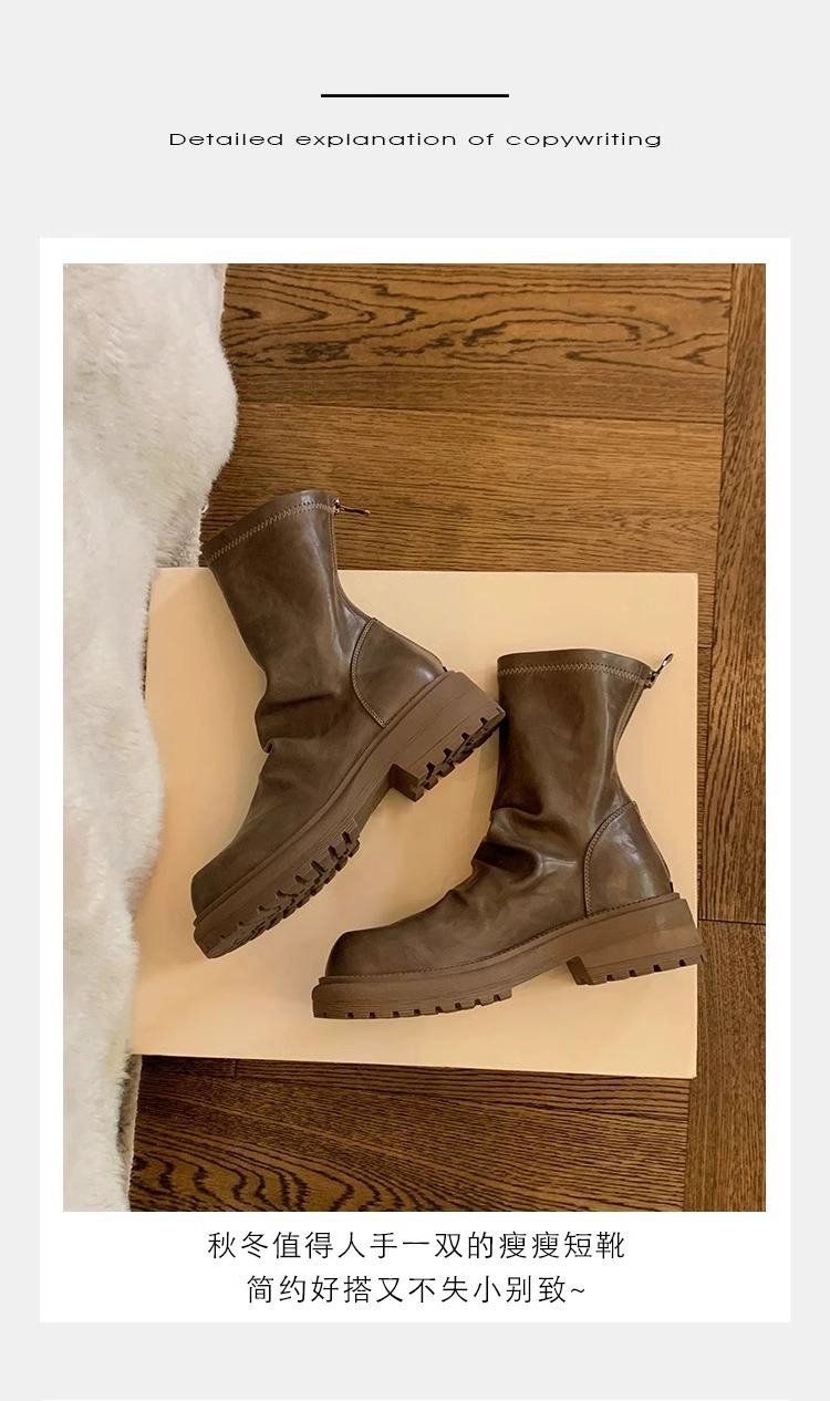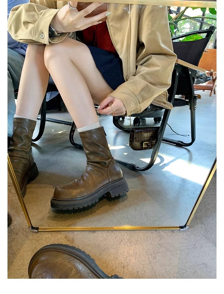 마틴 부츠 여성용 2025 가을 겨울 신상 영국 스타일 두꺼운 굽 신축성 있는 주름 슬림 숏부츠 중간 길이 부츠 플랫스토어 가기