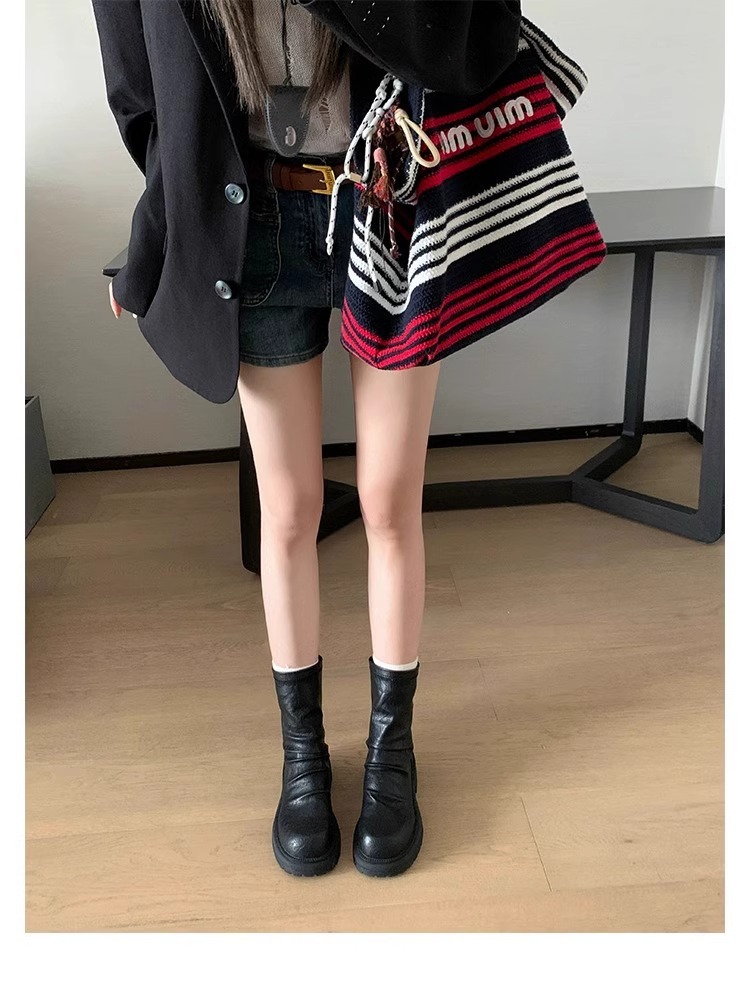 마틴 부츠 여성용 2025 가을 겨울 신상 영국 스타일 두꺼운 굽 신축성 있는 주름 슬림 숏부츠 중간 길이 부츠 플랫