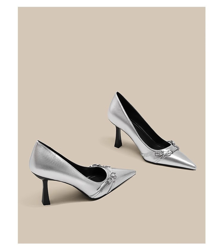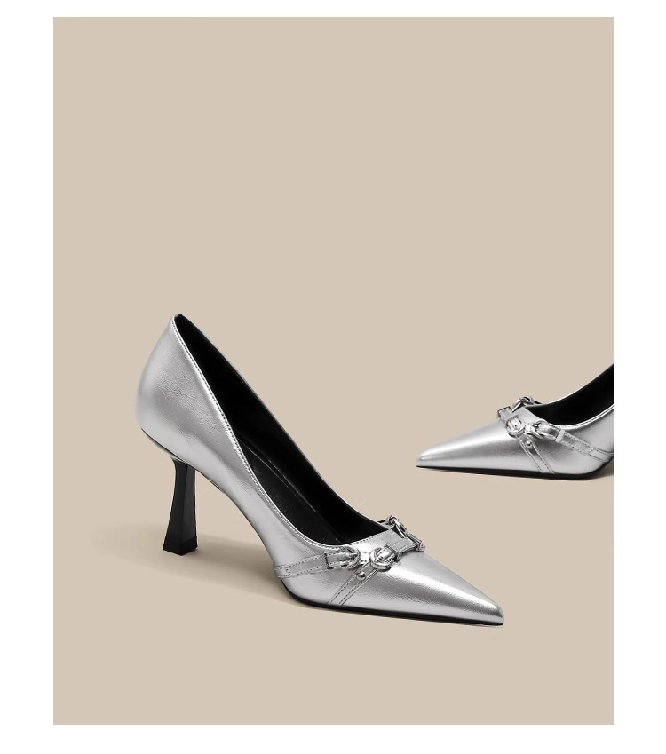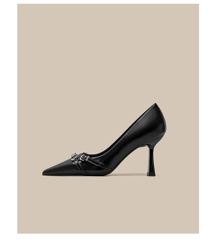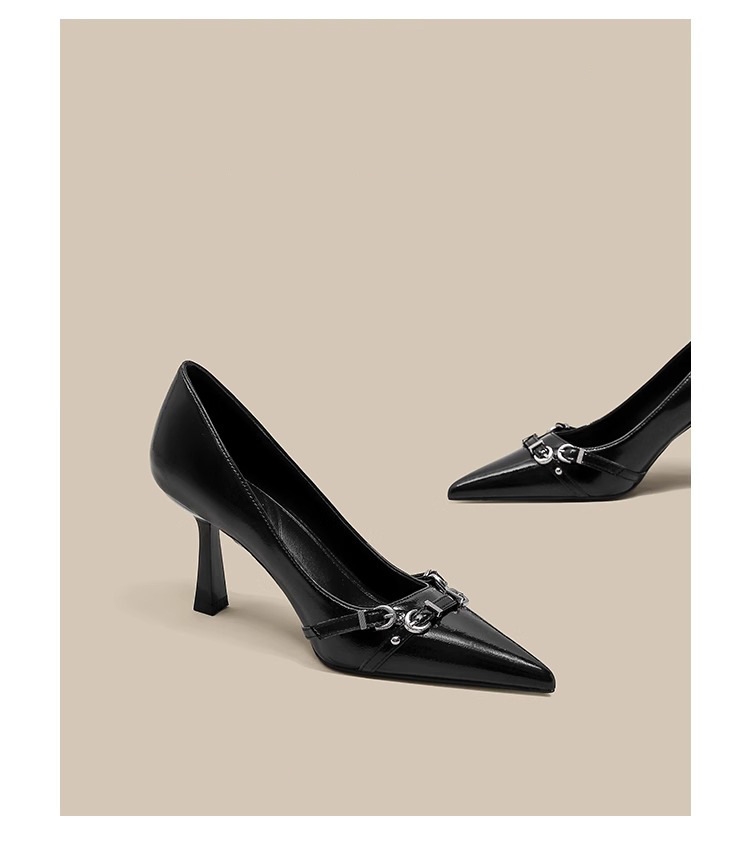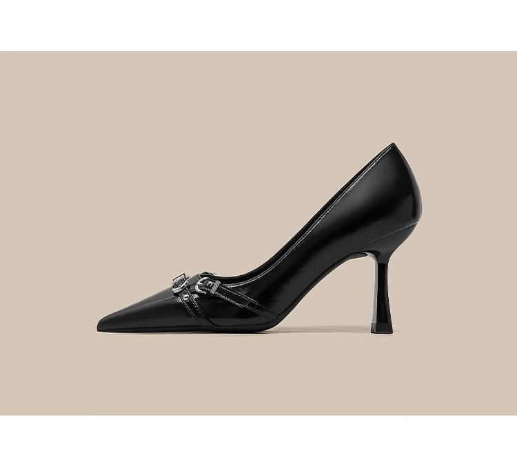 블랙 라이트 성숙한 아름다운 하이힐 여성 2024 새로운 프랑스 스타일 우아한 올 매치 뾰족한 스틸레토 힐 싱글 레이어 신발스토어 가기