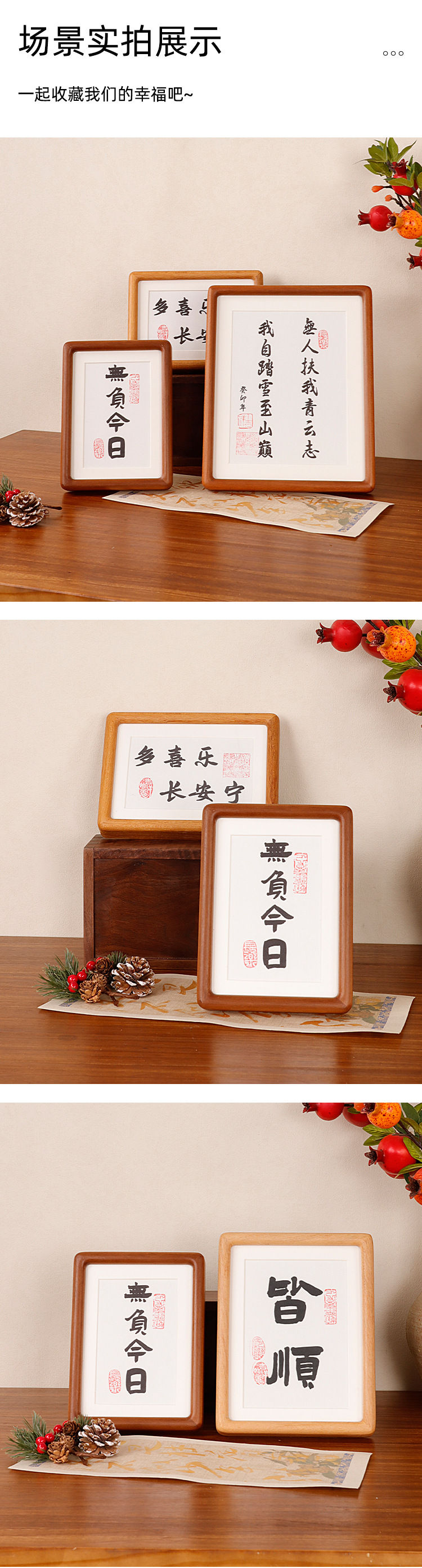 단단한 나무 장붓 및 테논 검은 호두 색상 둥근 모서리 사진 프레임 세트 테이블 6 인치 57 인치 8 인치 10 인치 a4 미니 서예 및 그림 마운트 액자스토어 가기