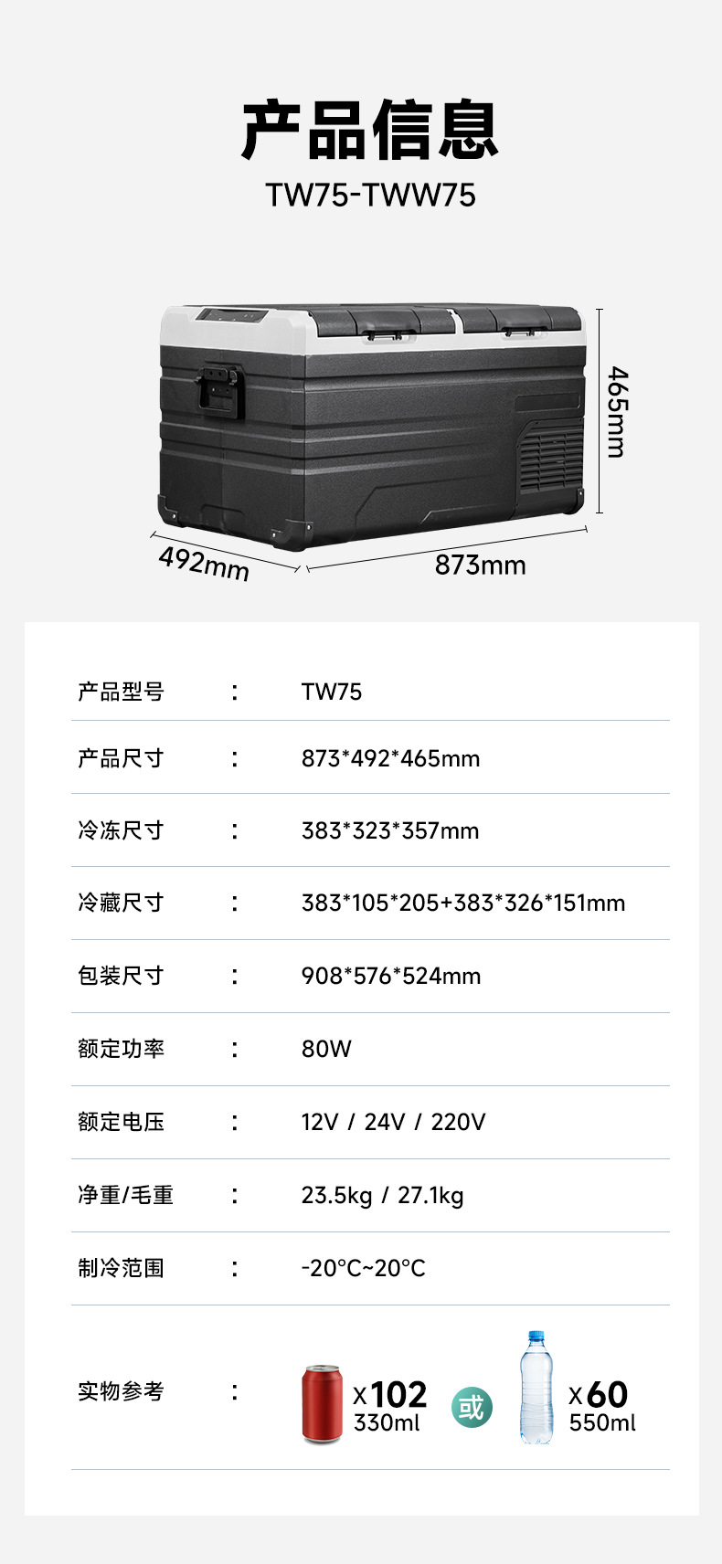 아이스 타이거 압축기 자동차 냉장고 자동차 홈 듀얼 사용 냉동 12v24v 휴대용 TW75 기숙사 미니 냉장고스토어 가기