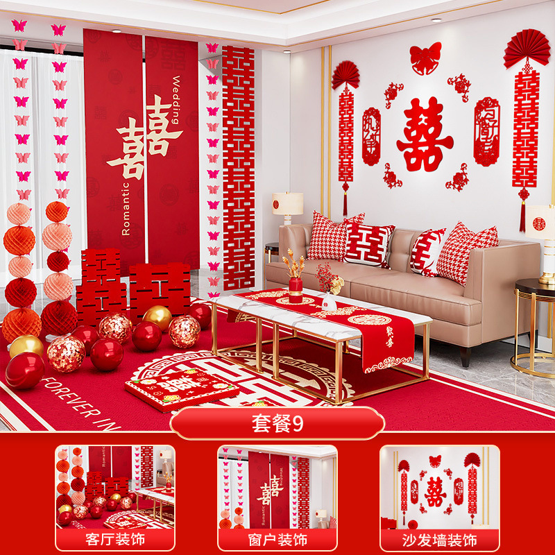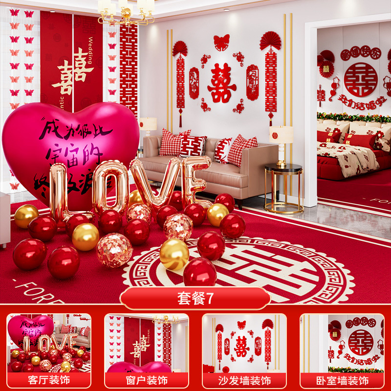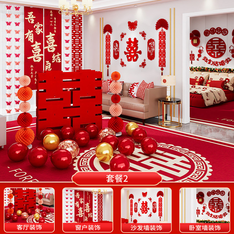 호텔 특별 웨딩 룸 레이아웃 세트 웨딩 장식 결혼식 전체 세트 새 집 거실 웨딩 룸 여자의 침실스토어 가기