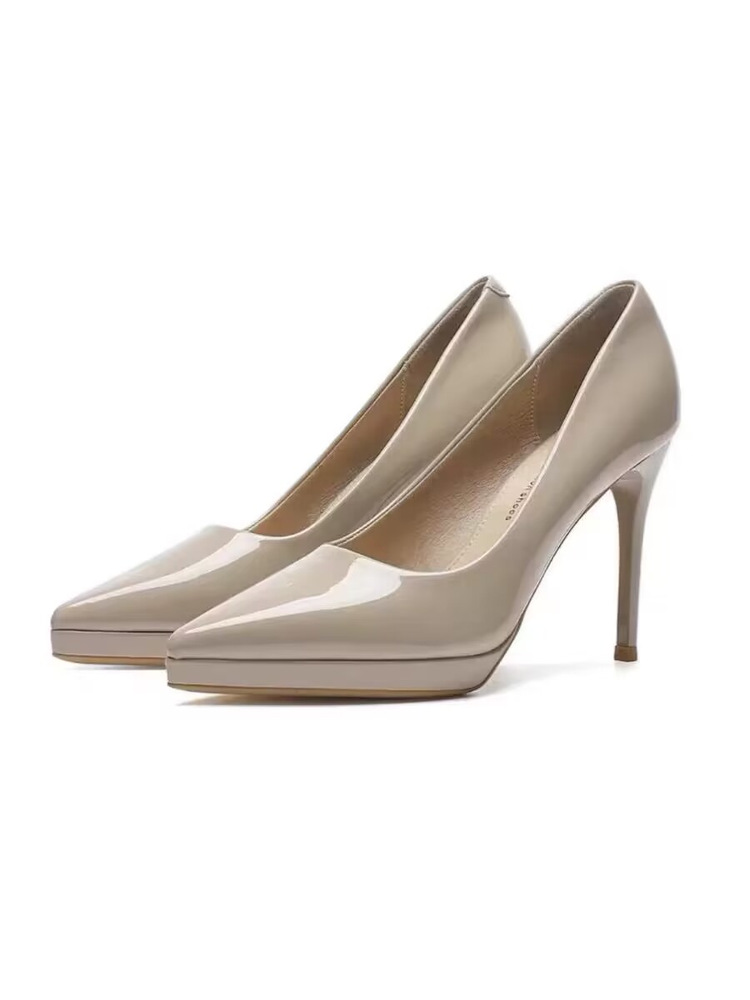 방수 플랫폼 하이힐 여성 2025 년 봄과 여름 새로운 뾰족한 스틸레토 힐 누드 특허 가죽 섹시한 에티켓 패션 신발스토어 가기