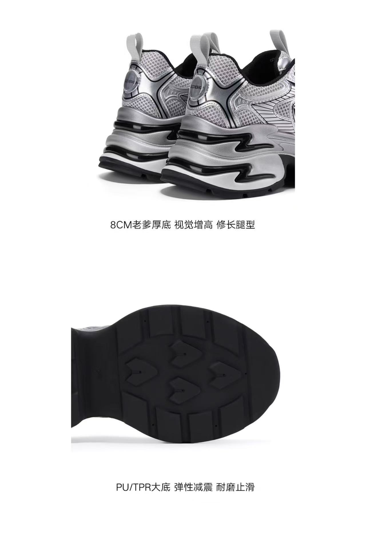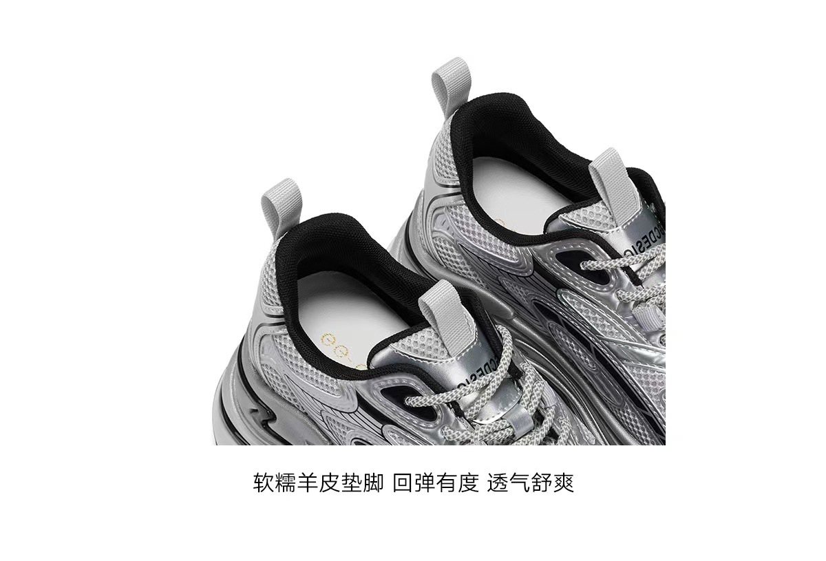 [Zhao Lusi와 같은 스타일] GGCC 2025 패션 두꺼운 밑창 아빠 신발 실버 스포츠 캐주얼 여성 신발
