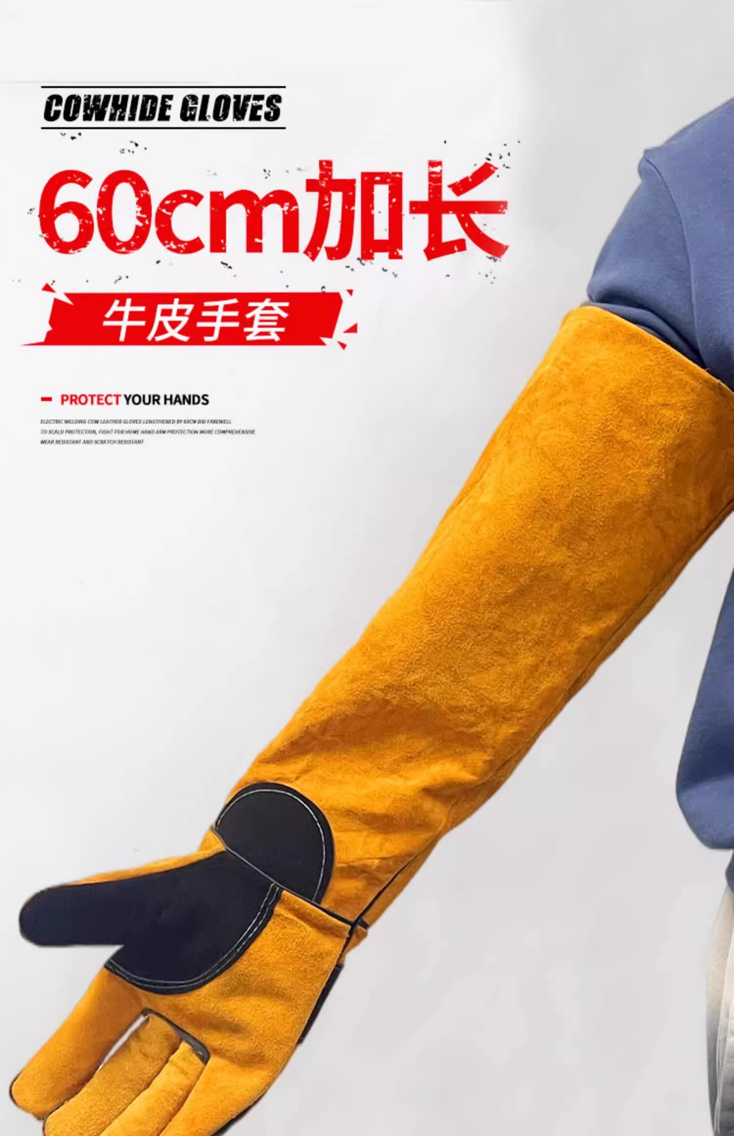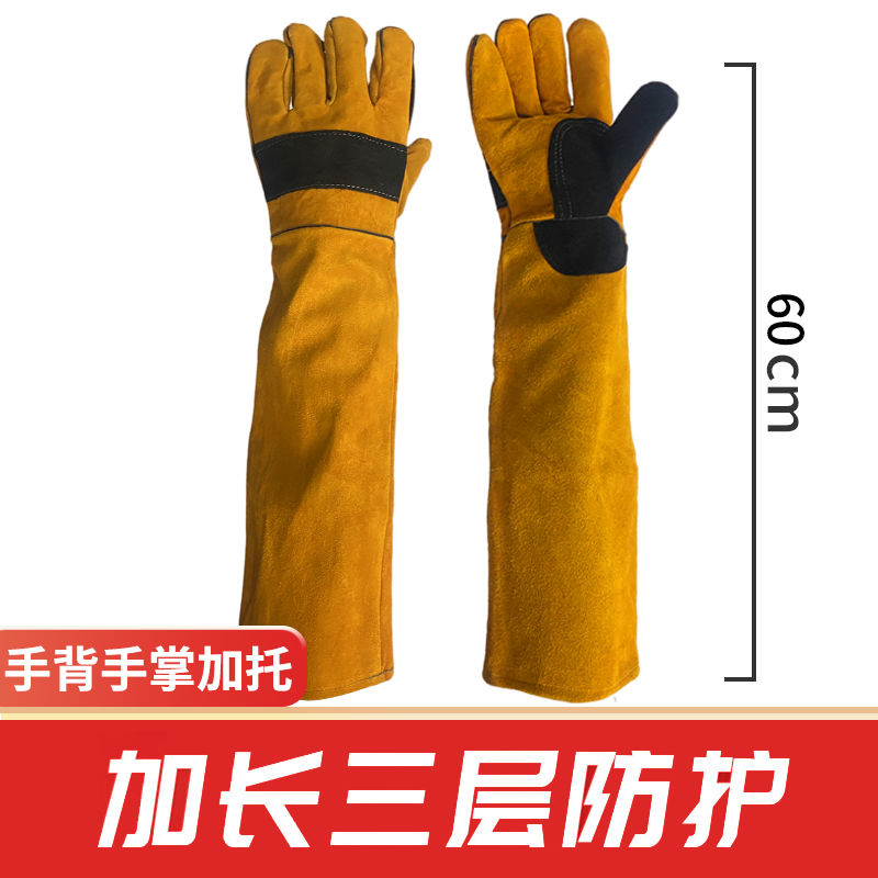 안티-바이트 장갑 안티-고양이 스크래치 안티-개 물린 Cowhide 두꺼운 긴 훈련 개 교정 식품 보호 내마모성 눈물 강한 보호