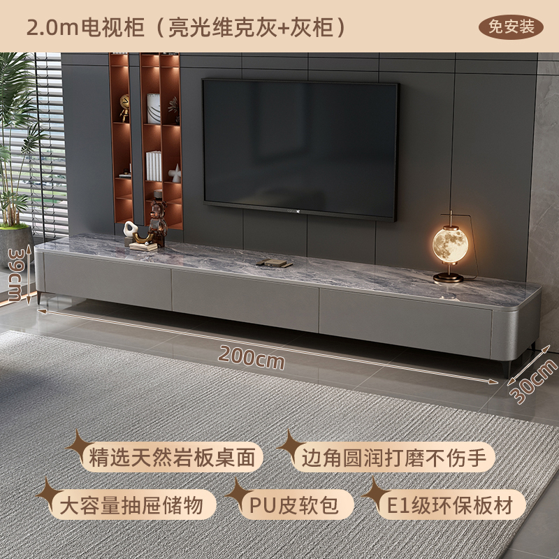 • [설치 불필요] 2.0m 3단 TV 캐비닛 (광택 빅 그레이 + 그레이 캐비닛 소프트백)