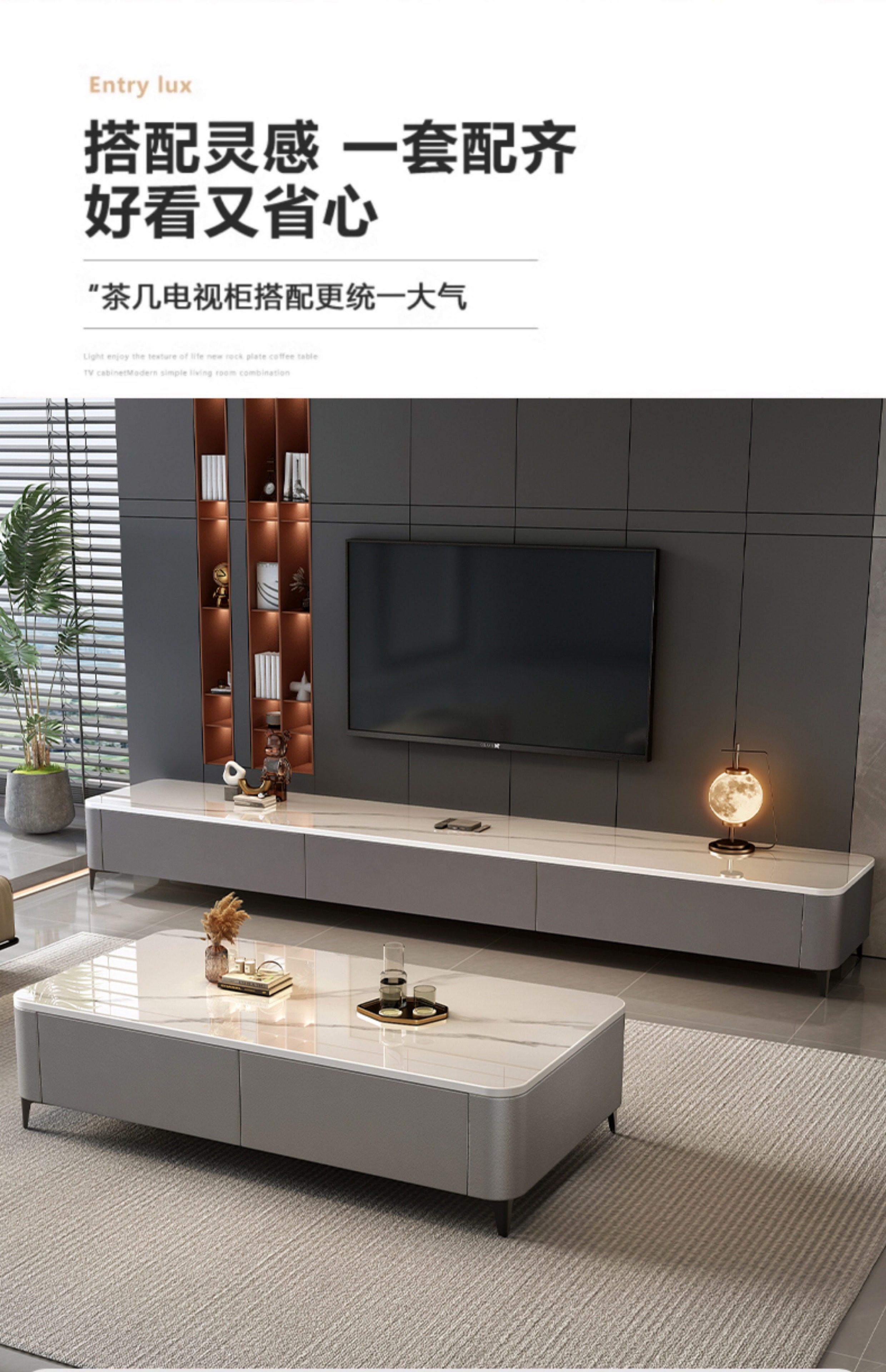 암석판 티테이블 거실용 소형 가정용 2025년 신형 티테이블 인기 모던 심플 티테이블 TV 캐비닛 세트