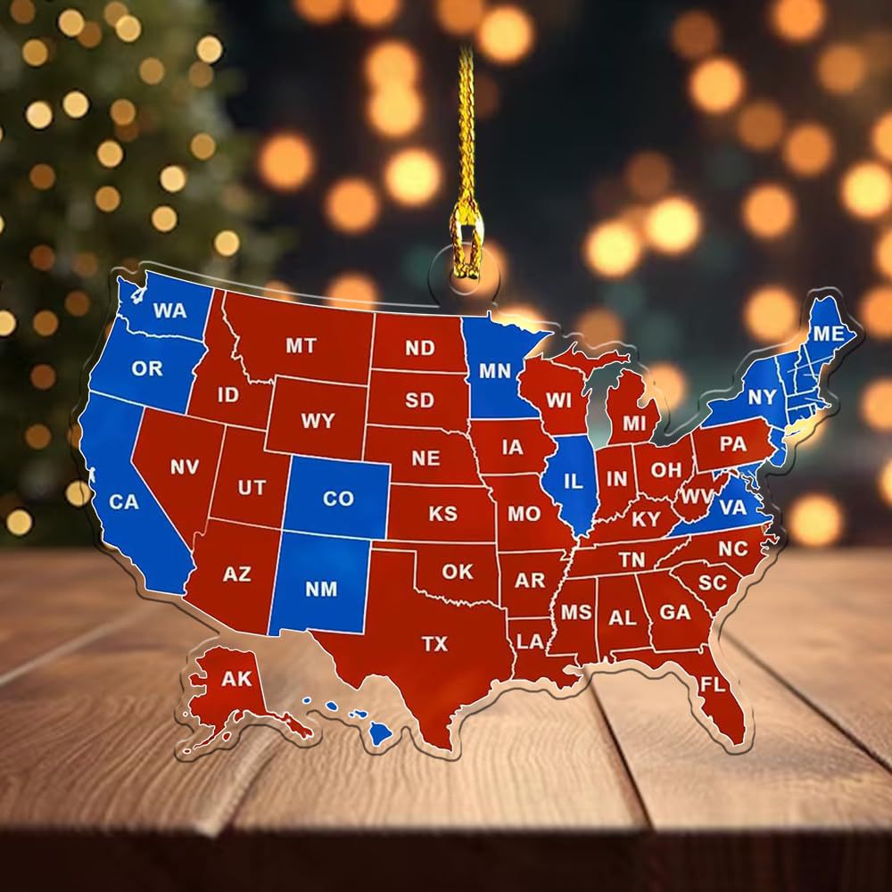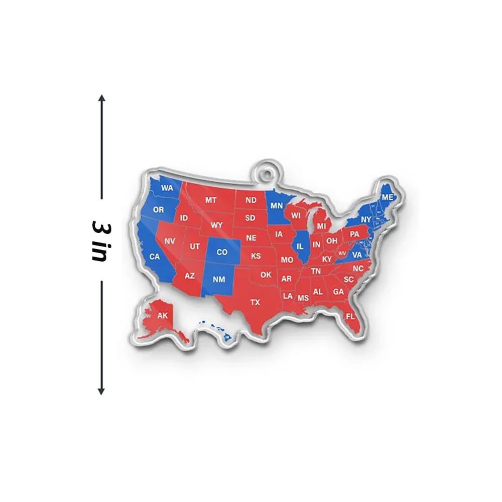 • Design: Depicts the United States electoral map, with states color-coded to represent voting outcomes (red for Republican-leaning states, blue for Democratic-leaning states).