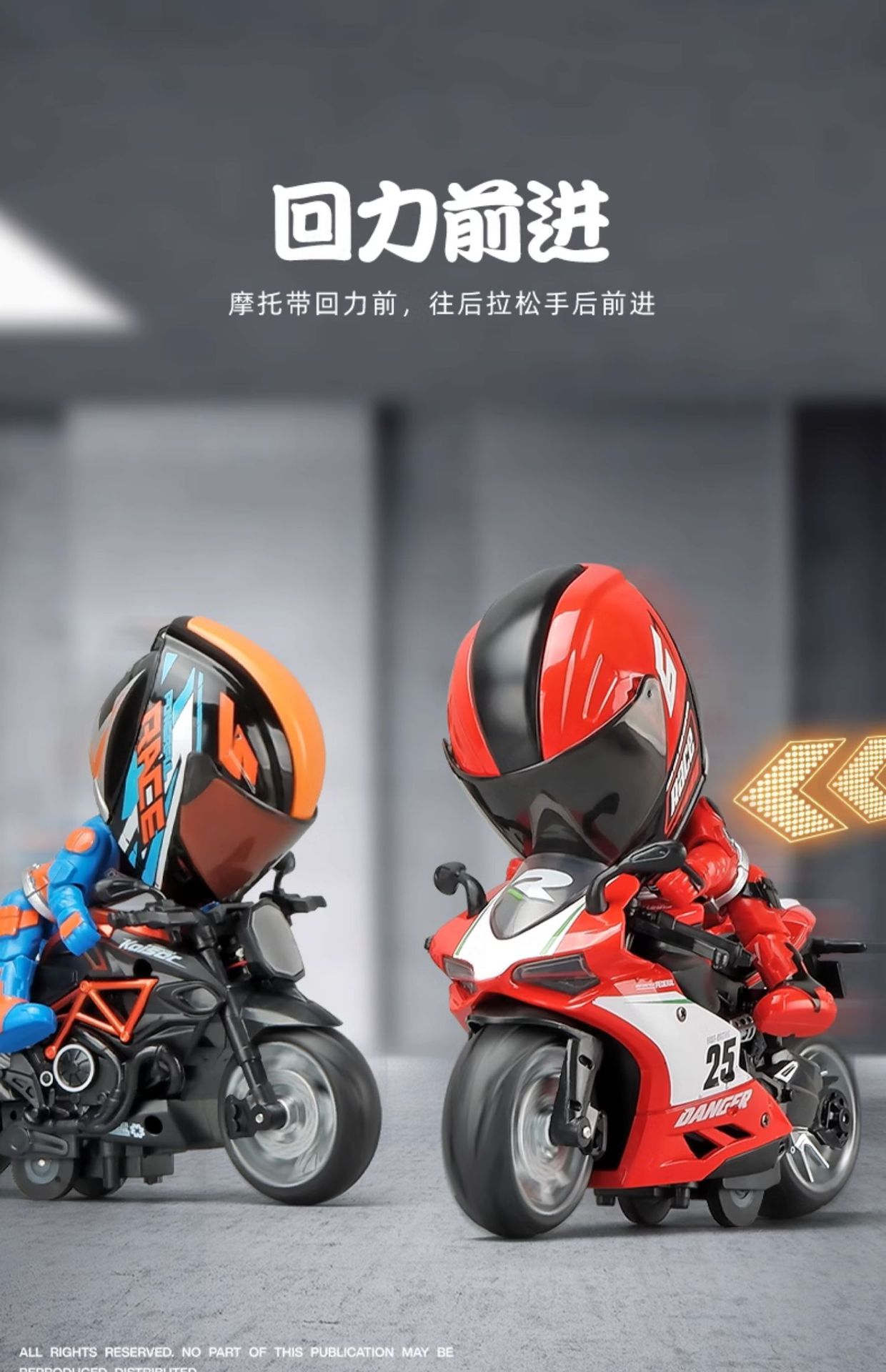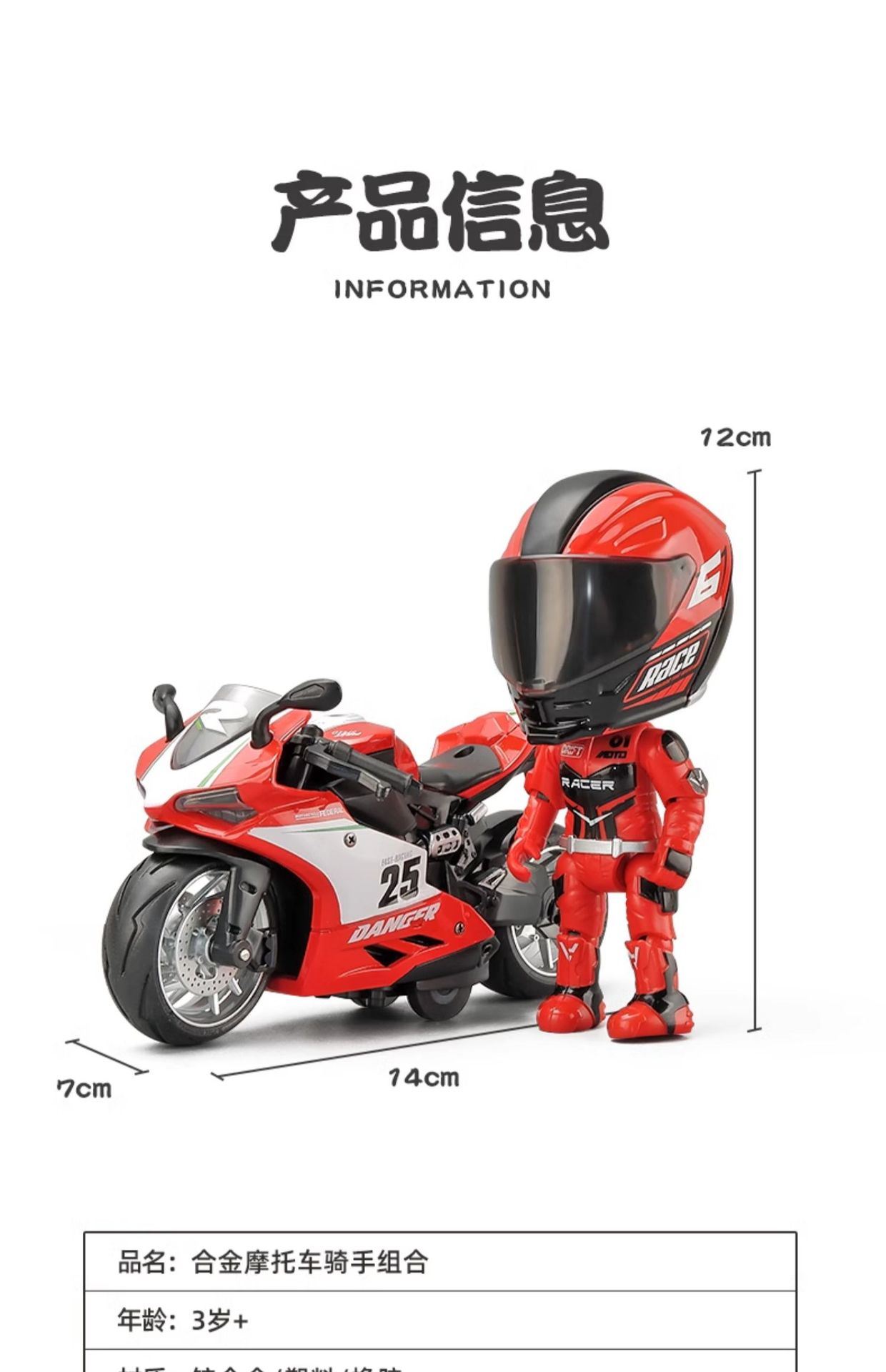 【商品名称】铭源仿真摩托车骑手合金变形人偶头盔公仔