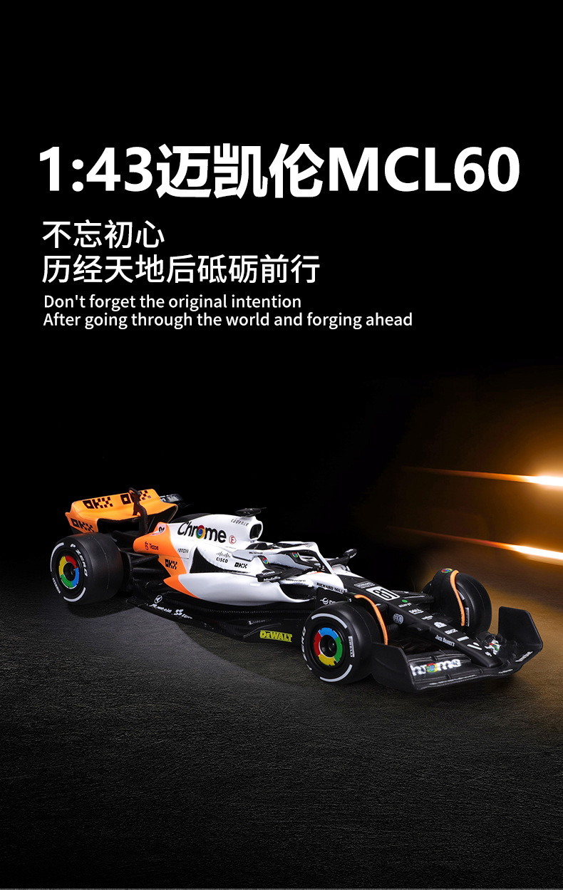 2024 Bimei 고 1:43 McLaren F1 자동차 모델 MCL60 금속 레이싱 장난감 시뮬레이션 합금 모델 자동차 모델