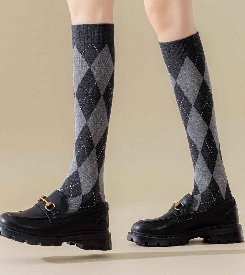 회색 송아지 양말 여성 가을과 겨울 JK 한국 스타일 스타킹 하프 컷 스키니 다리 빈티지 아카데미 스타일 중간 배럴 봄과 가을 스타킹스토어 가기