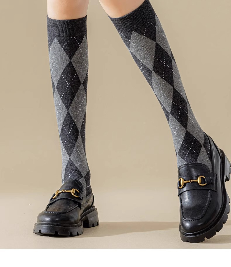 회색 송아지 양말 여성 가을과 겨울 JK 한국 스타일 스타킹 하프 컷 스키니 다리 빈티지 아카데미 스타일 중간 배럴 봄과 가을 스타킹