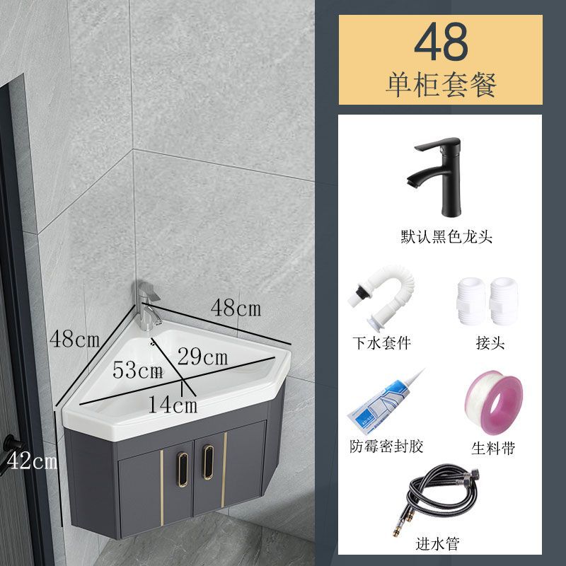 • 그레이-4848 세면대 캐비닛 + 배수구 + 수도꼭지 + 삼각형 거울 캐비닛